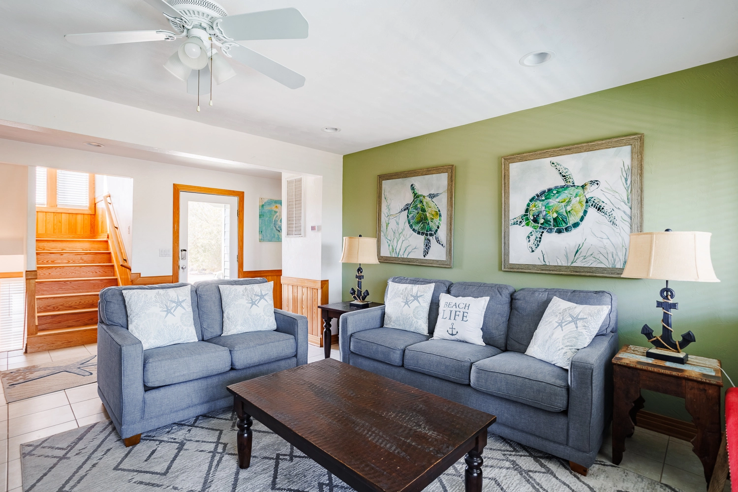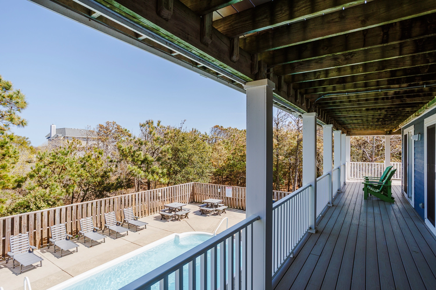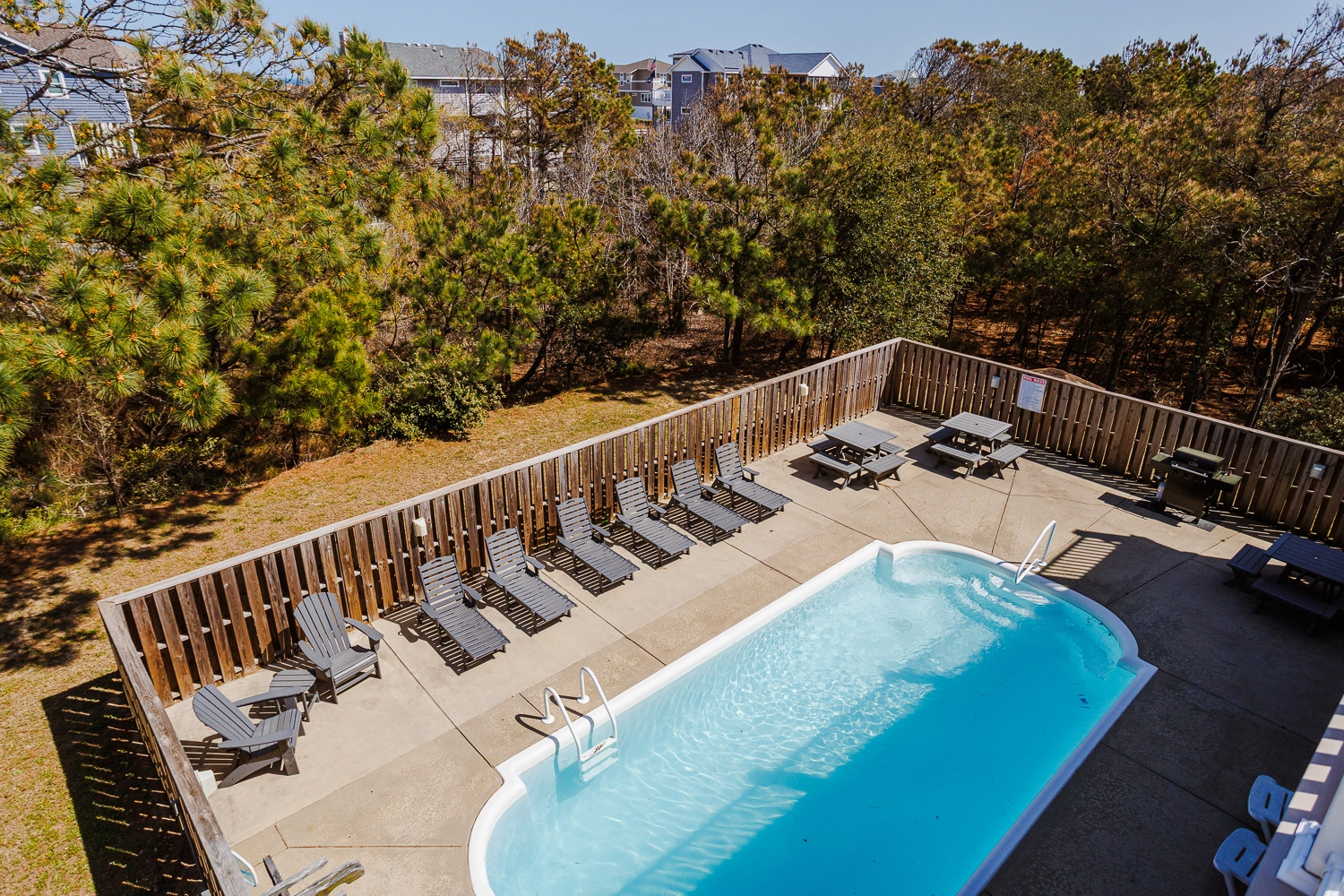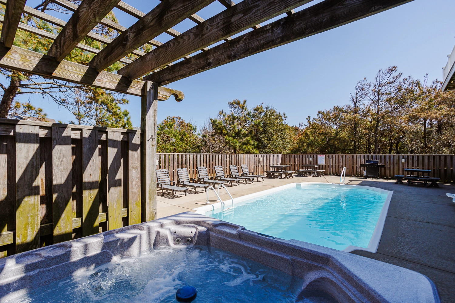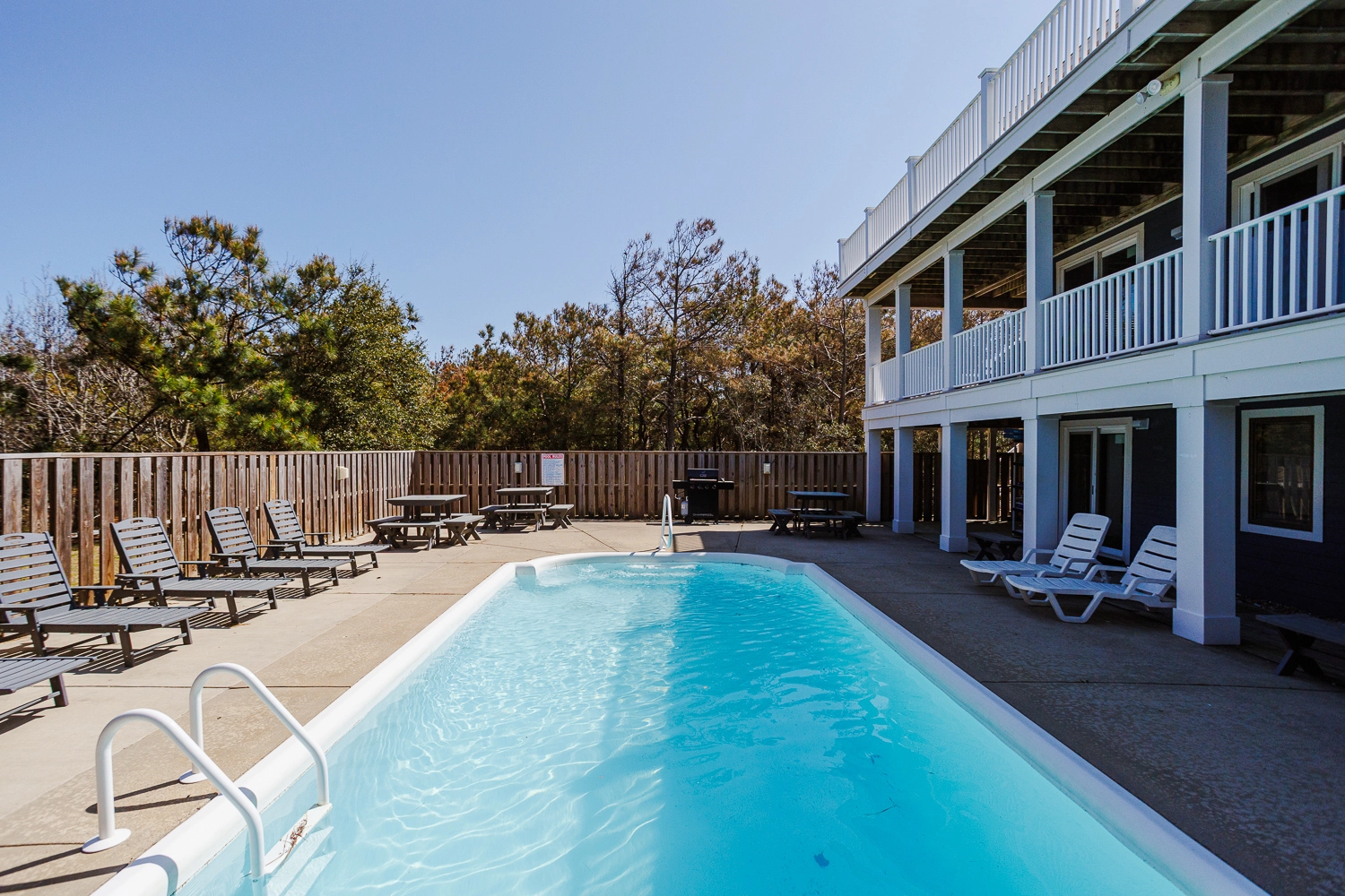 "The close proximity and easy walk to the beach access, as well as being a somewhat casual but nicely appointed home with plenty of beds/bathrooms for a large gathering of people make Family Tides a desirable oceanside choice in Corolla. The pool, hot tub, and volleyball court add to the outdoor fun options."
