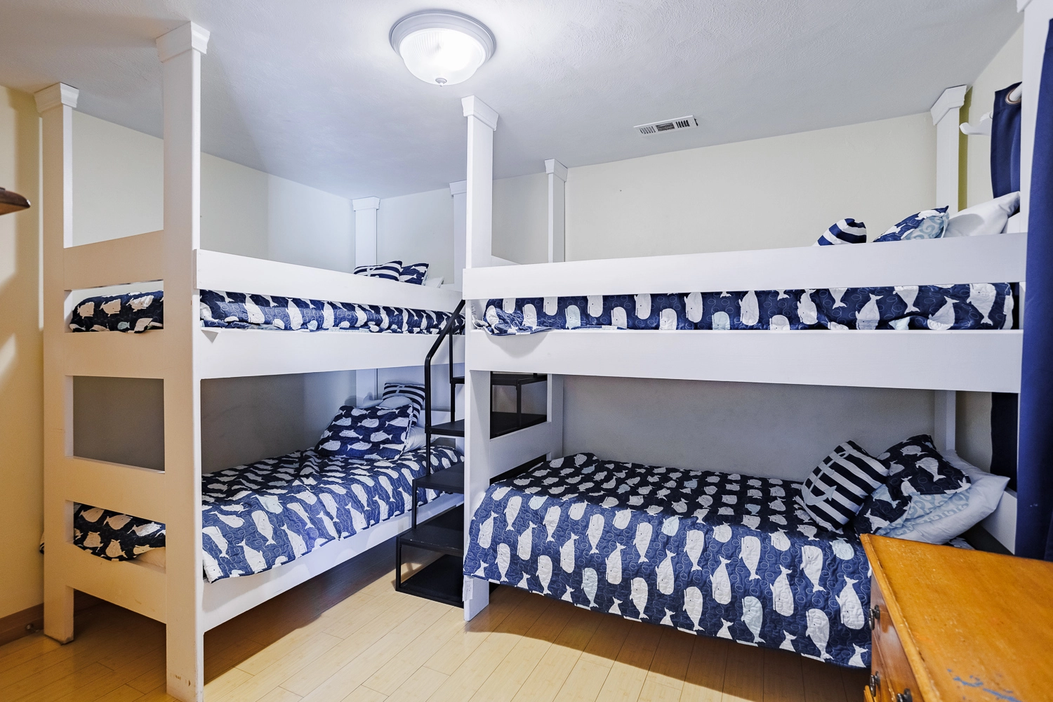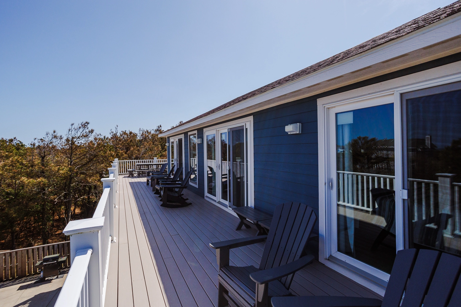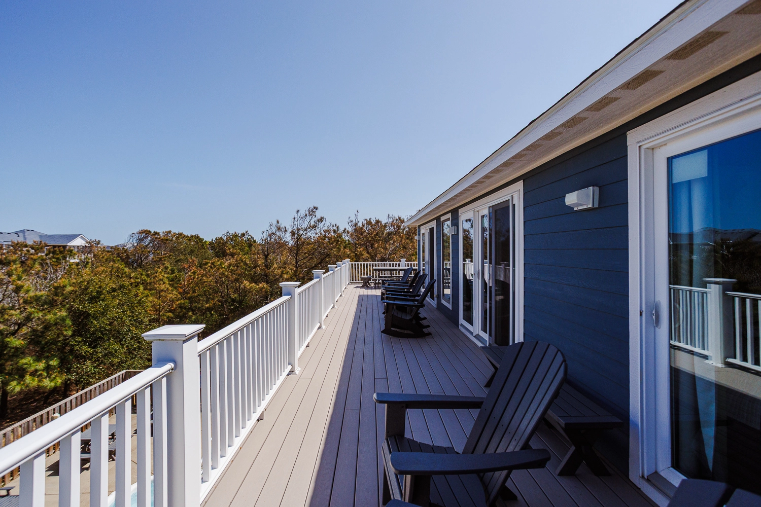 "The home was beautiful. The bedrooms were set up perfect for families. All adults had master bedrooms and the bunk rooms and double room were perfect for the kids. Quick and convenient bike ride or walk to the beach. Ocean views from the top deck. Plenty of eating space with a large table inside and several picnic tables on the deck and pool area . Safety features on doors in the basement. Two sets of washer and dryer and two dishwashers."
