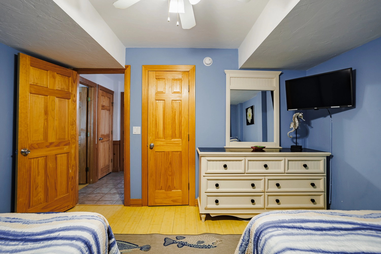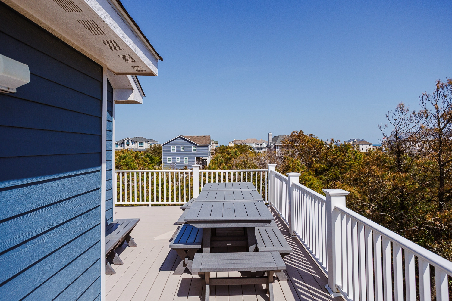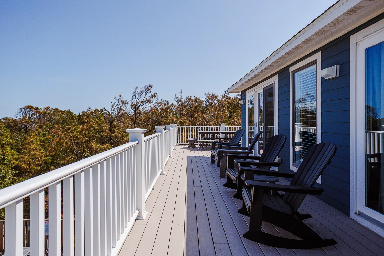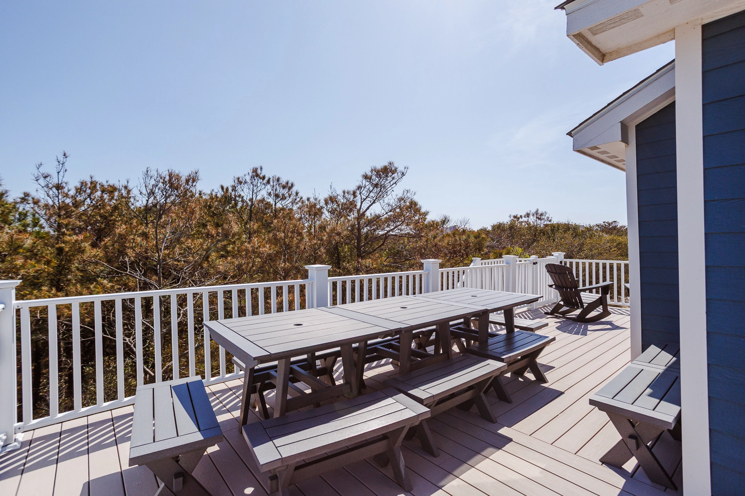 "The home was beautiful. The bedrooms were set up perfect for families. All adults had master bedrooms and the bunk rooms and double room were perfect for the kids. Quick and convenient bike ride or walk to the beach. Ocean views from the top deck. Plenty of eating space with a large table inside and several picnic tables on the deck and pool area . Safety features on doors in the basement. Two sets of washer and dryer and two dishwashers."