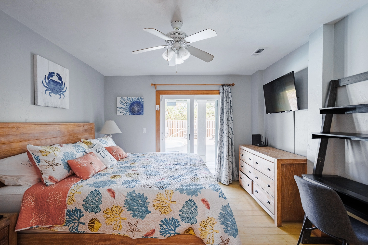 Private pool with the option to heat, hot tub, volleyball court, basketball goal, outdoor ping pong, outdoor shower and multiple Smart TVs.