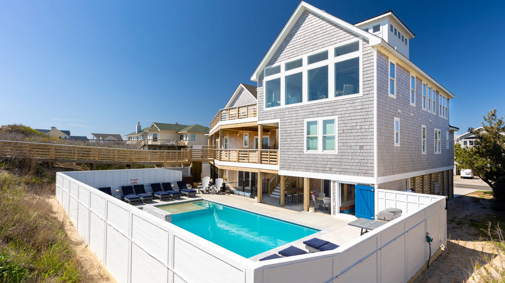 "It is a Amazing, Beautiful Home close to the Beach with awesome easy access. Except for the Sand on the bottom steps at the time we were there 5-22 to 5-29. We were told by Twiddy that they were not permitted not to remove without a permit, but we were able to squeeze through."