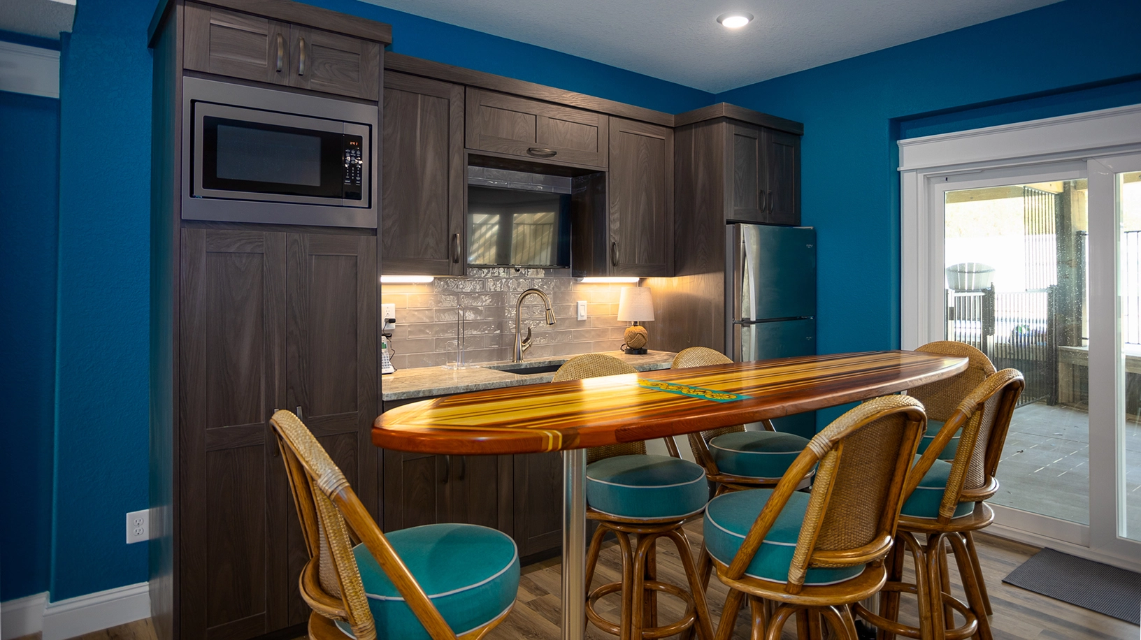 "Five Suns has high end appliances and is the best equipped kitchen of the rentals we’ve stayed in. We loved the butlers pantry area and all the available kitchen seating."