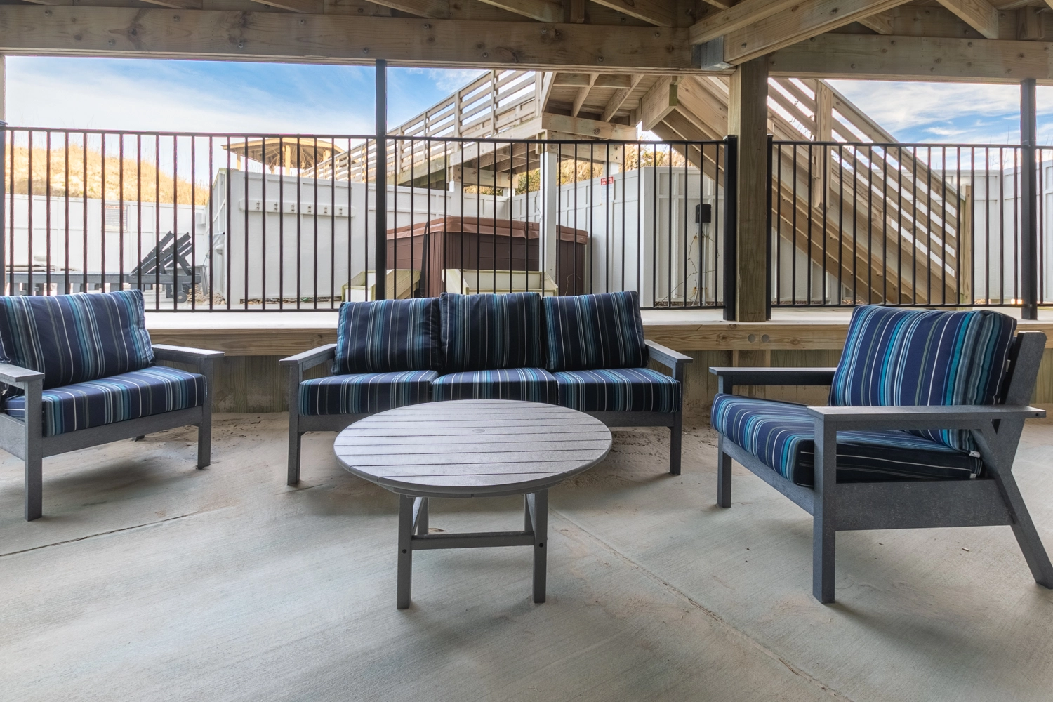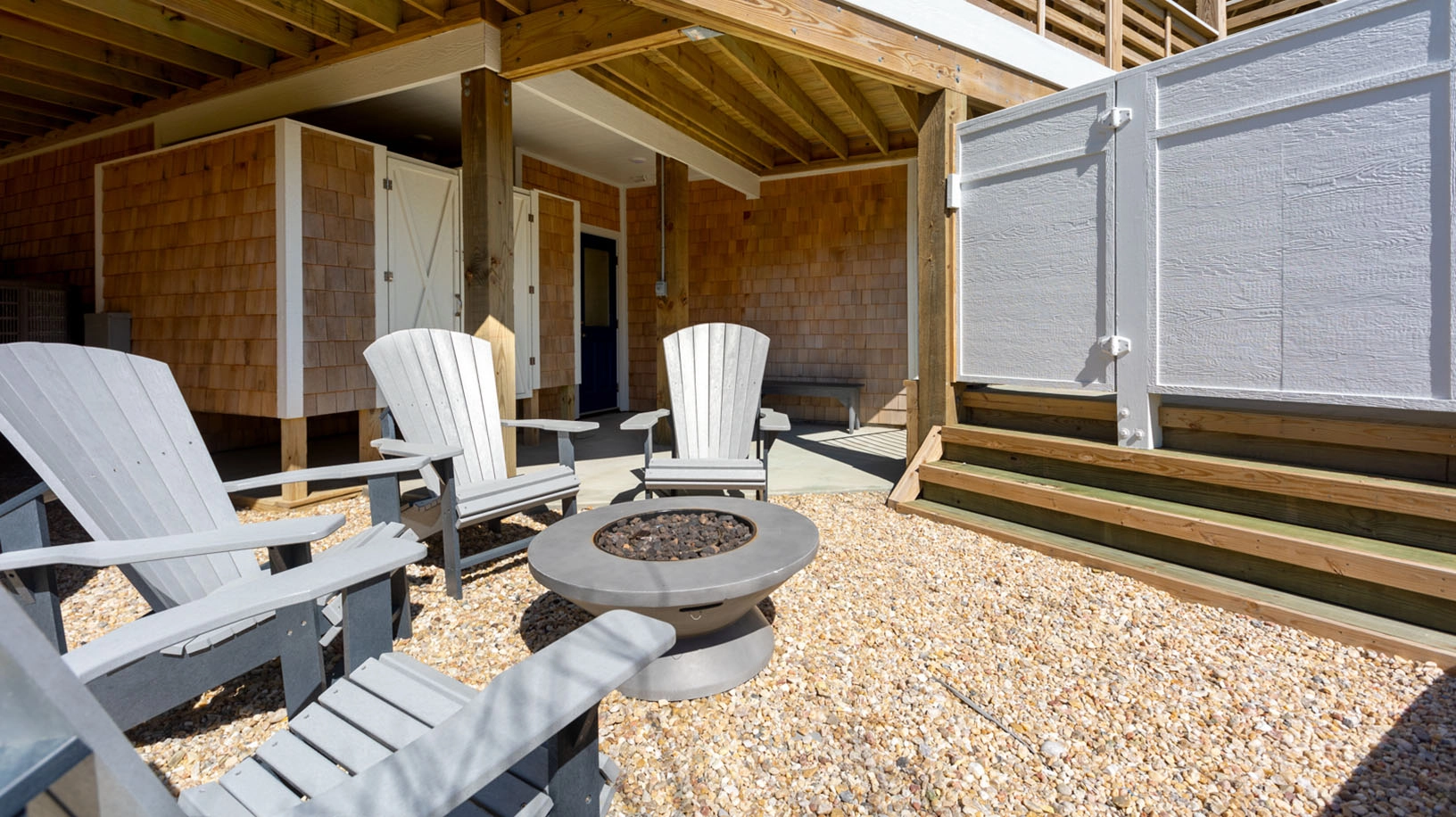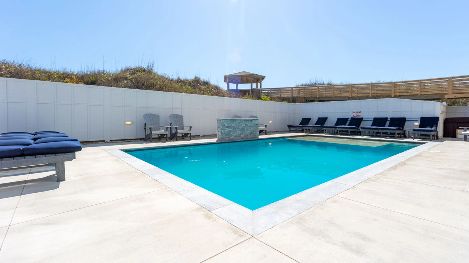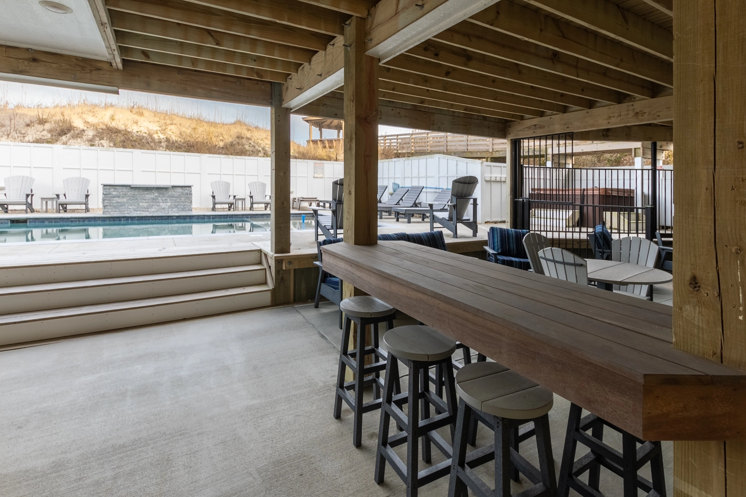 Sooo glad you had a nice time and that you enjoyed the bar and the outside chairs/couches! We do as well when we are there! Yes, we have the same experience with the dunes and the steps and are going to try and get a permit to realign the beach staircase this fall! However, we know that more dunes is a good thing when we are oceanfront! Thanks and we hope you come again!