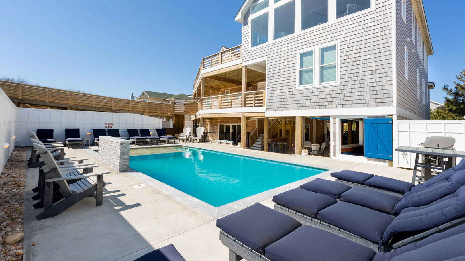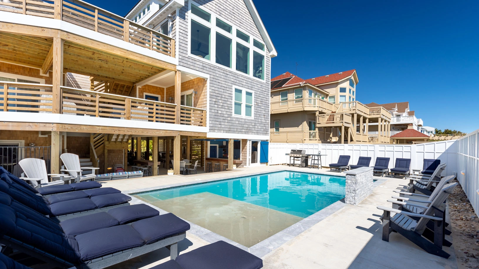 "The house was fantastic! The layout was great for multiple families with all of the bedrooms having their own bathroom and great room groupings so families could be near each other. The indoor living area was spacious and there were multiple outdoor areas to relax on all levels. The walk to the beach was very short from the private walkway which allowed families with smaller children to easily go between the house, pool and beach."