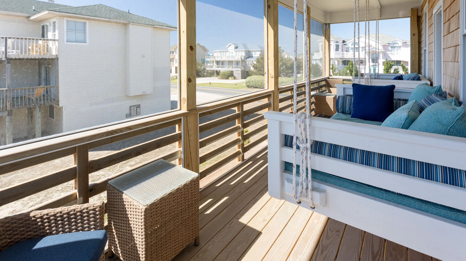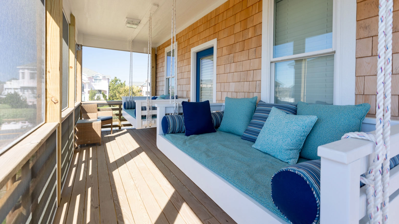 Two sleeping porches with hanging beds.