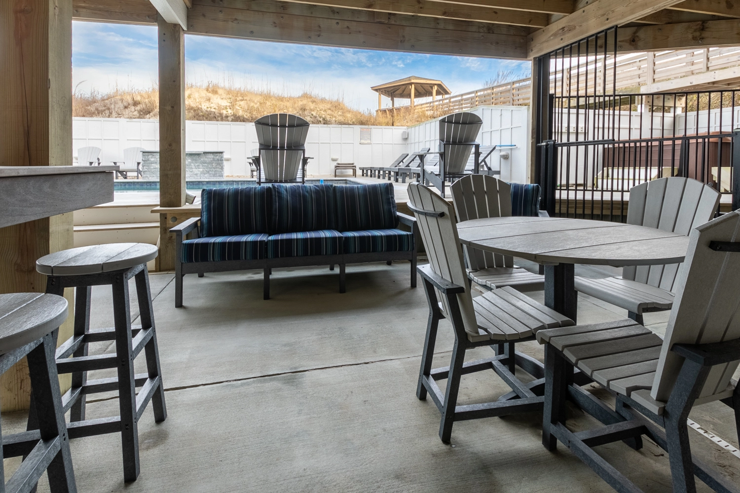 "We loved the gazebo and all of the seating on the decks. The entertainment spaces were well laid out (spaces for groups and cozy spaces for one or two to get away from the crowd.) The kitchen was well appointed."