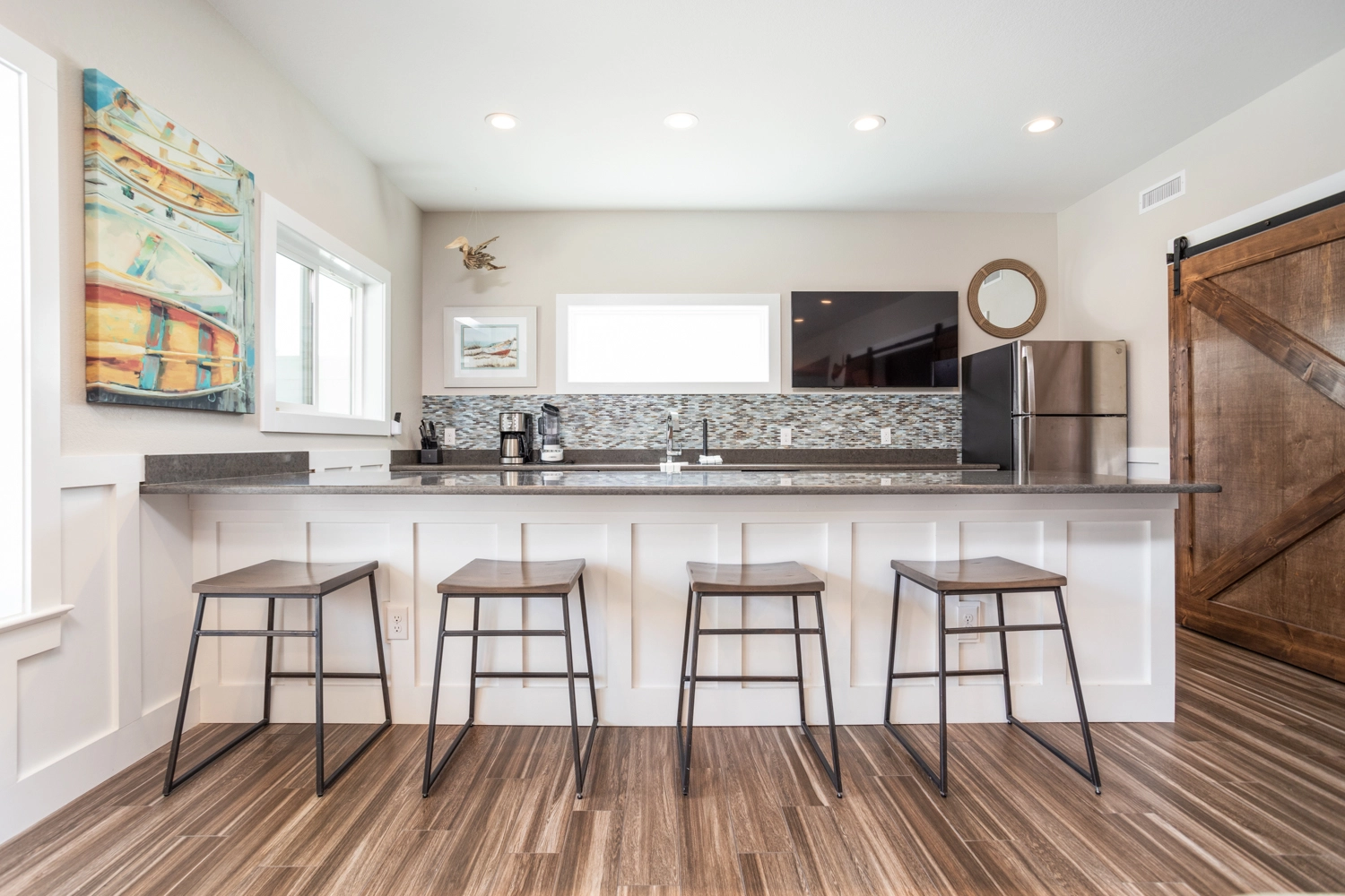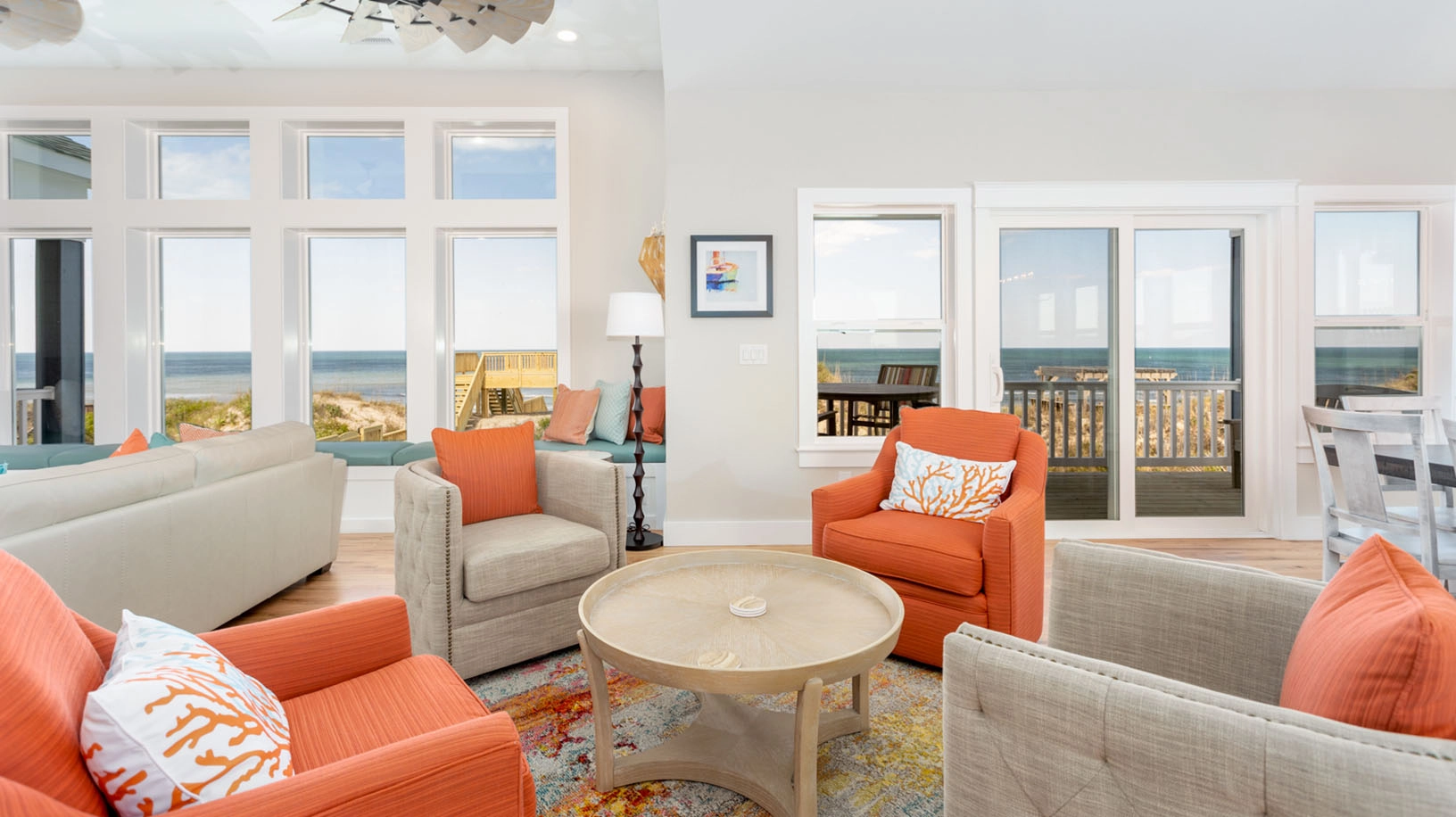 "The number of spacious private bedrooms and bathrooms; large windows that looked out over the ocean; a well-equipped kitchen; the amount of refrigerators and microwave’s throughout the house; and first floor gaming amenities."