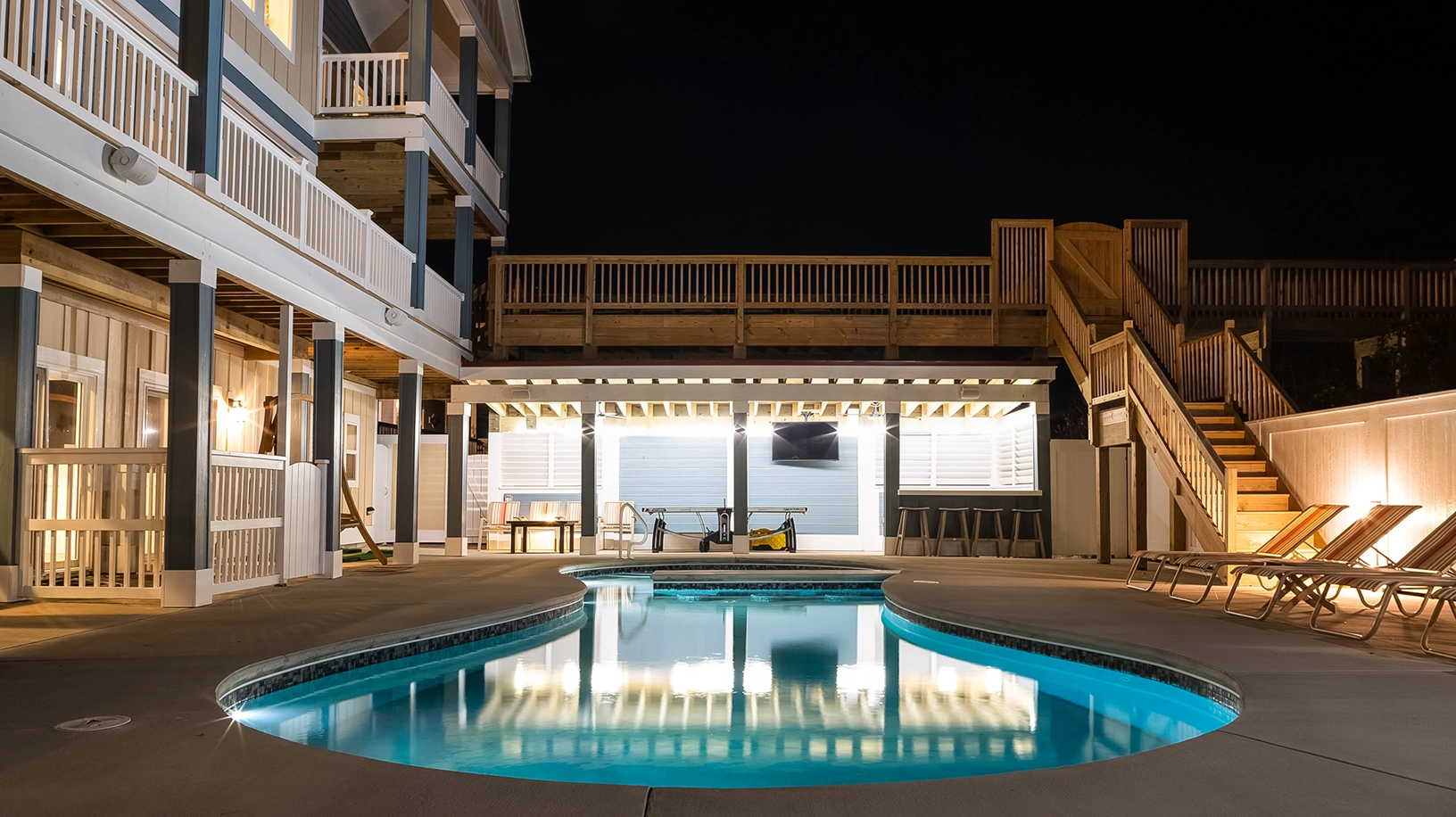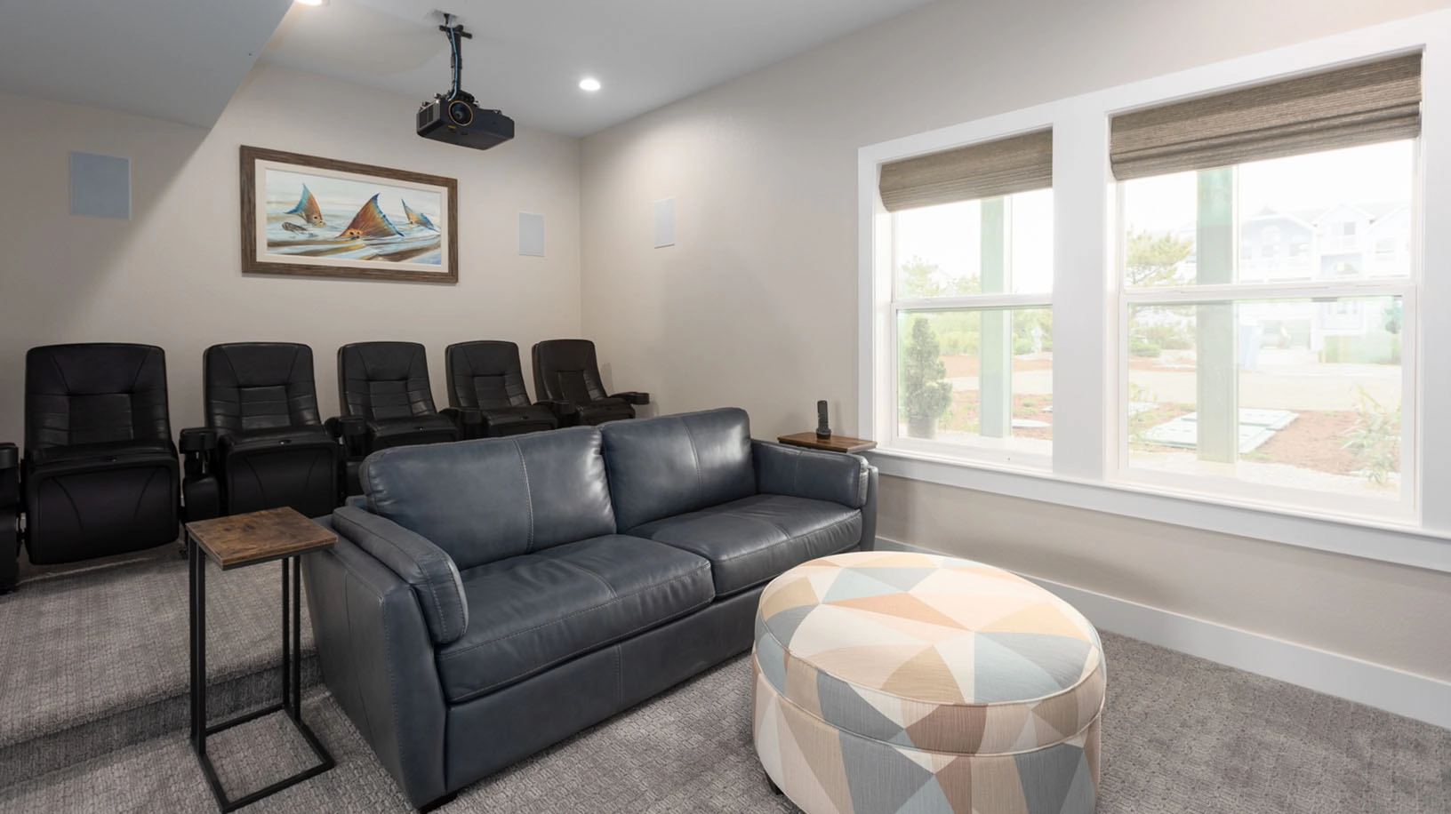 "The speaker system throughout the house made the whole experience. Unsure if the home was equipped with speakers before heading to OBX, and having the surprise was amazing The guest house was a perfect layout as well, my guests that stayed in there and even people just walking through to check it out loved how it was set up and how disconnected it was from the main home. Lastly, the set up for the theatre room was SO comfy and we spent a good chunk of time in and around there"