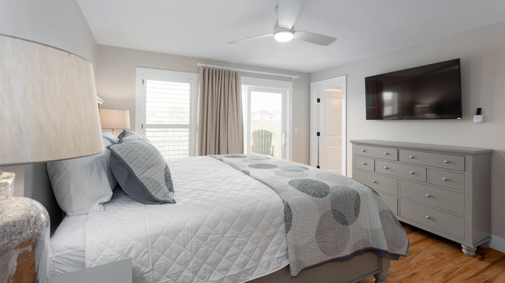 "Loved the deck on top of the dunes. Great view of the beach from there. Back yard was very nice. Interior was clean and kept up. Very nice kitchen and bathrooms."