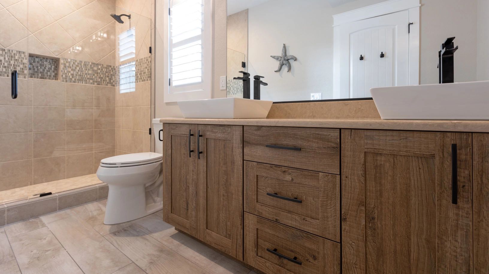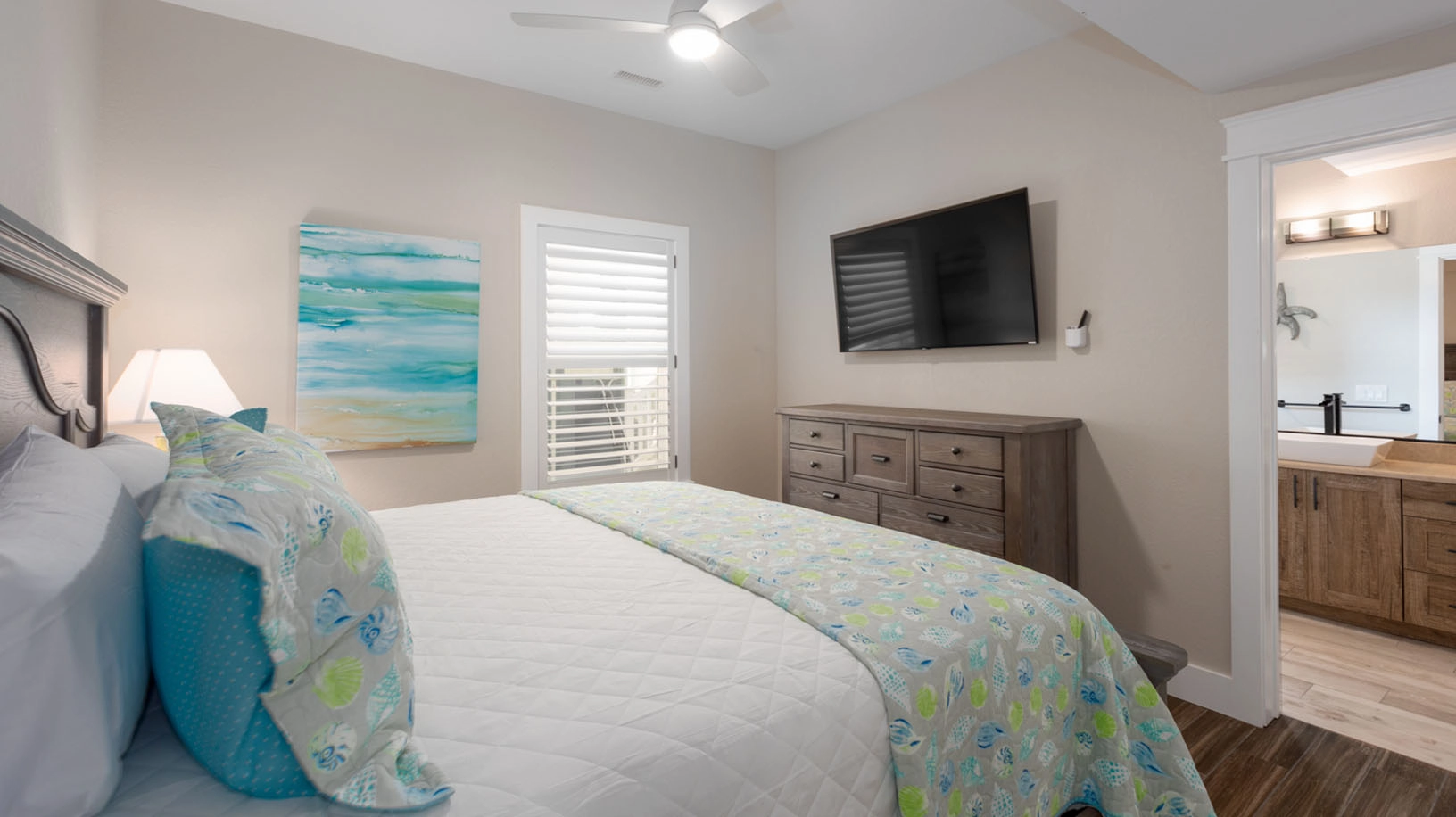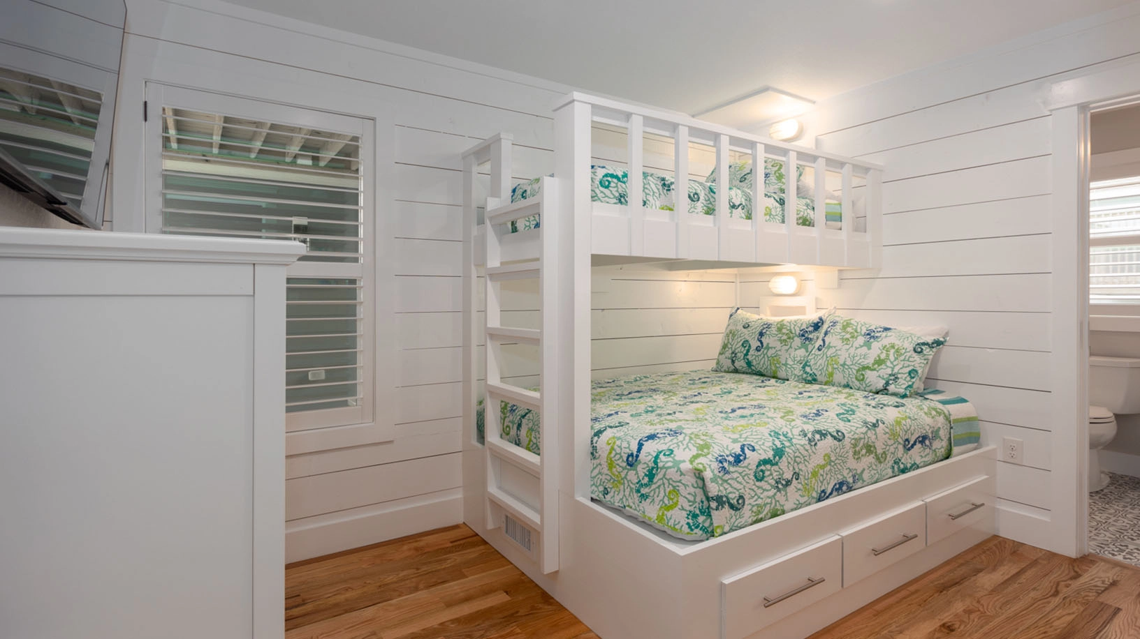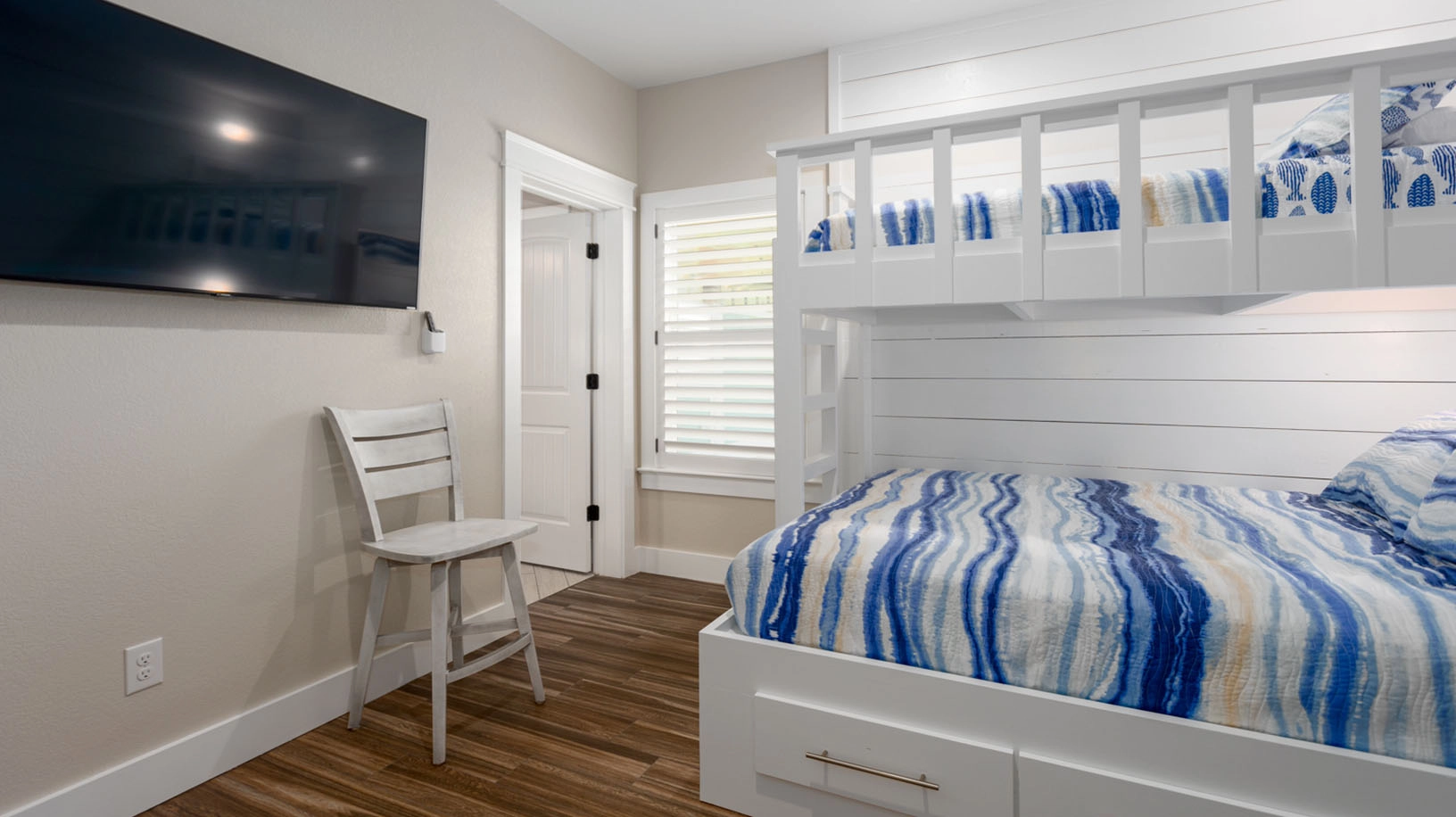 Queen with overhead Twin, Bunk Set, Shower/tub combo
