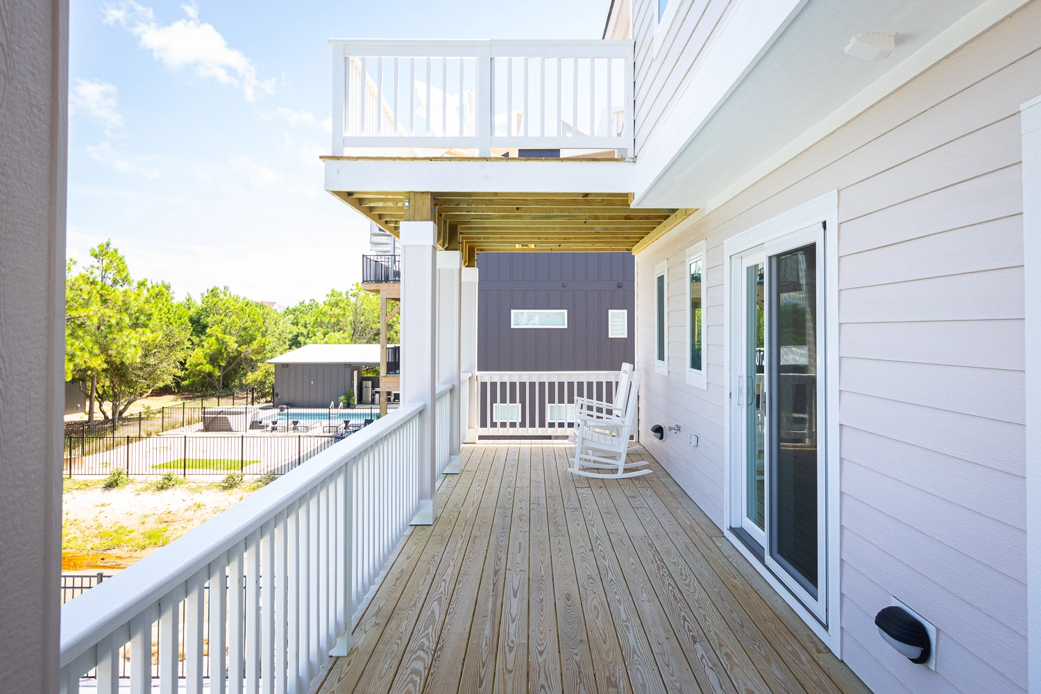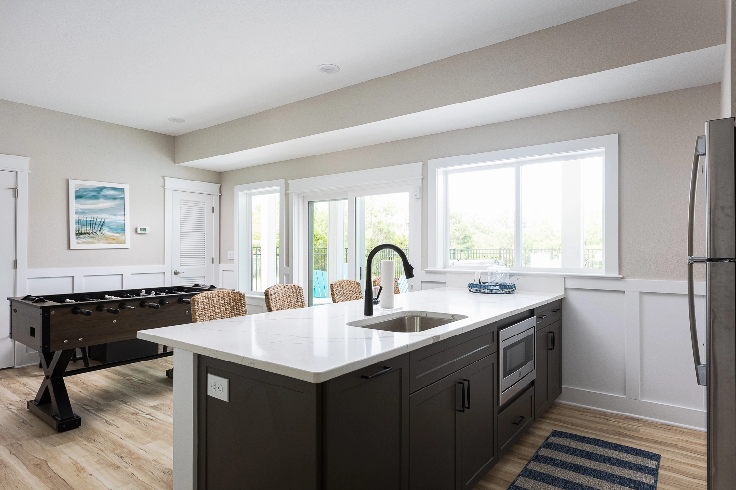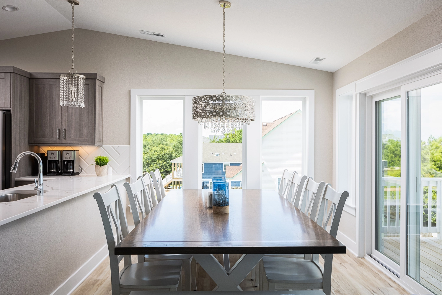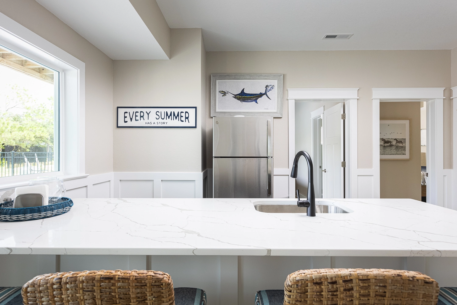 "We had a great stay at Ginny's Tonic! The home is beautiful and comfortable, with all the amenities to make you feel like you're getting away with all the comforts of home. We loved the decks and that you can see a sliver of the ocean from the top floor windows -- what a treat! The elevator was a game changer for us, the house was clean, Twiddy quickly responded to and addressed any issues that arose (our stove was out of gas and they had it refilled within 3 hours), and the kitchen with two sinks was fantastic. Only thing that could have made our stay better was if we could have used the pool heater -- I'd definitely vote for adding that as an amenity for the future. Thanks for a great stay, Twiddy!"