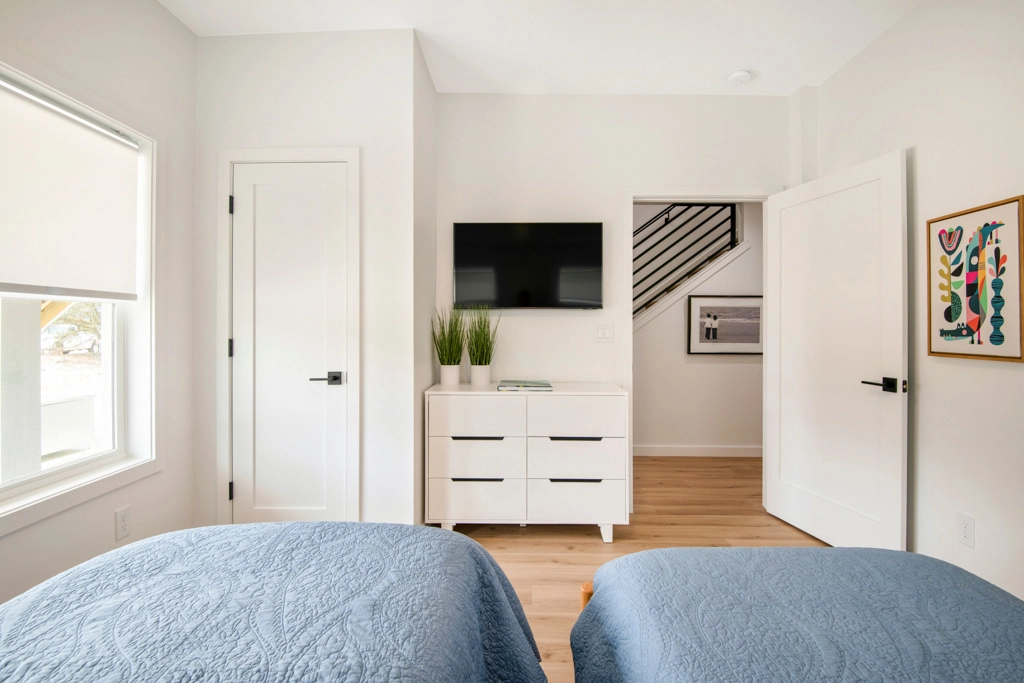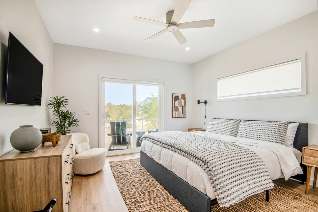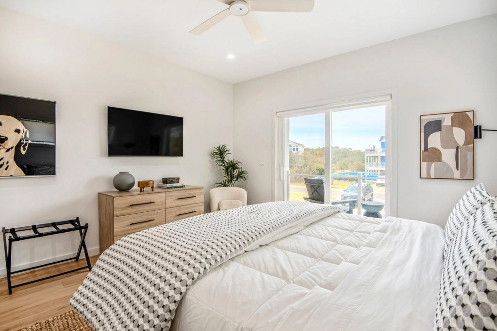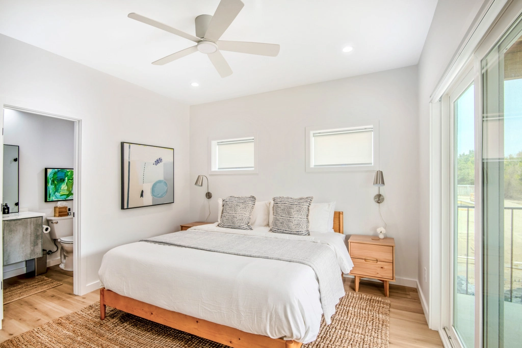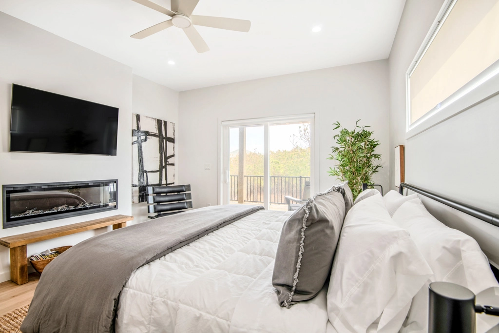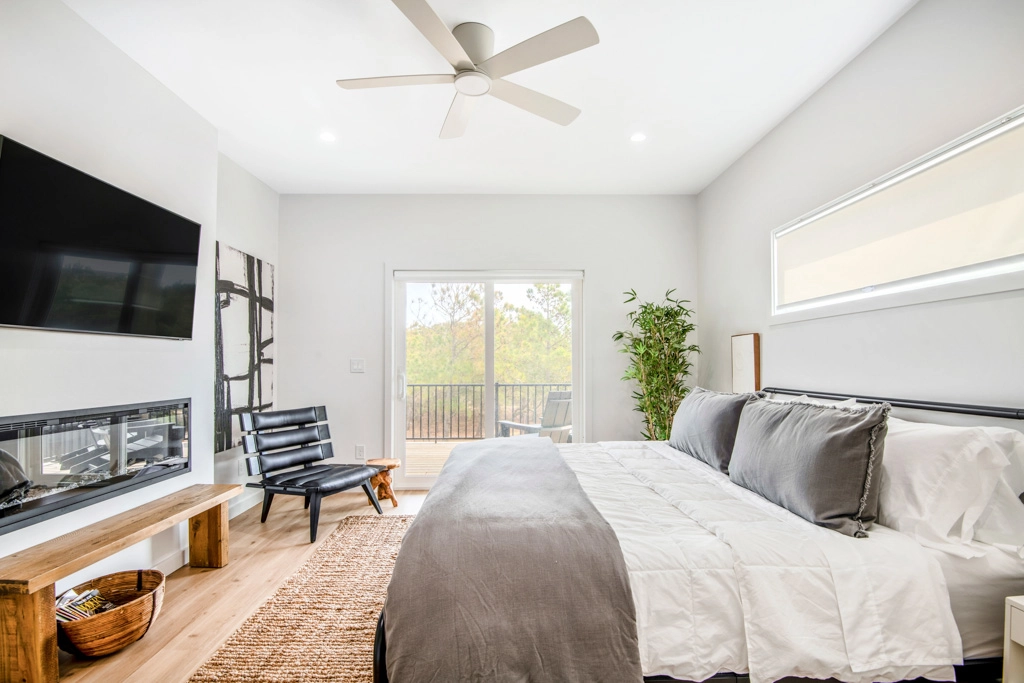 King, Standing shower, Soaking tub, Electric fireplace, Deck access