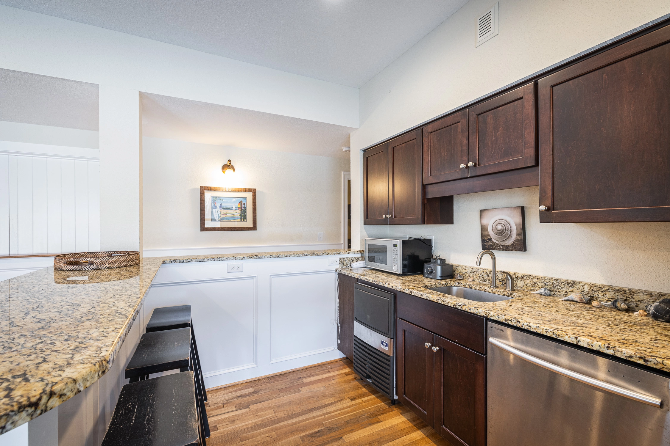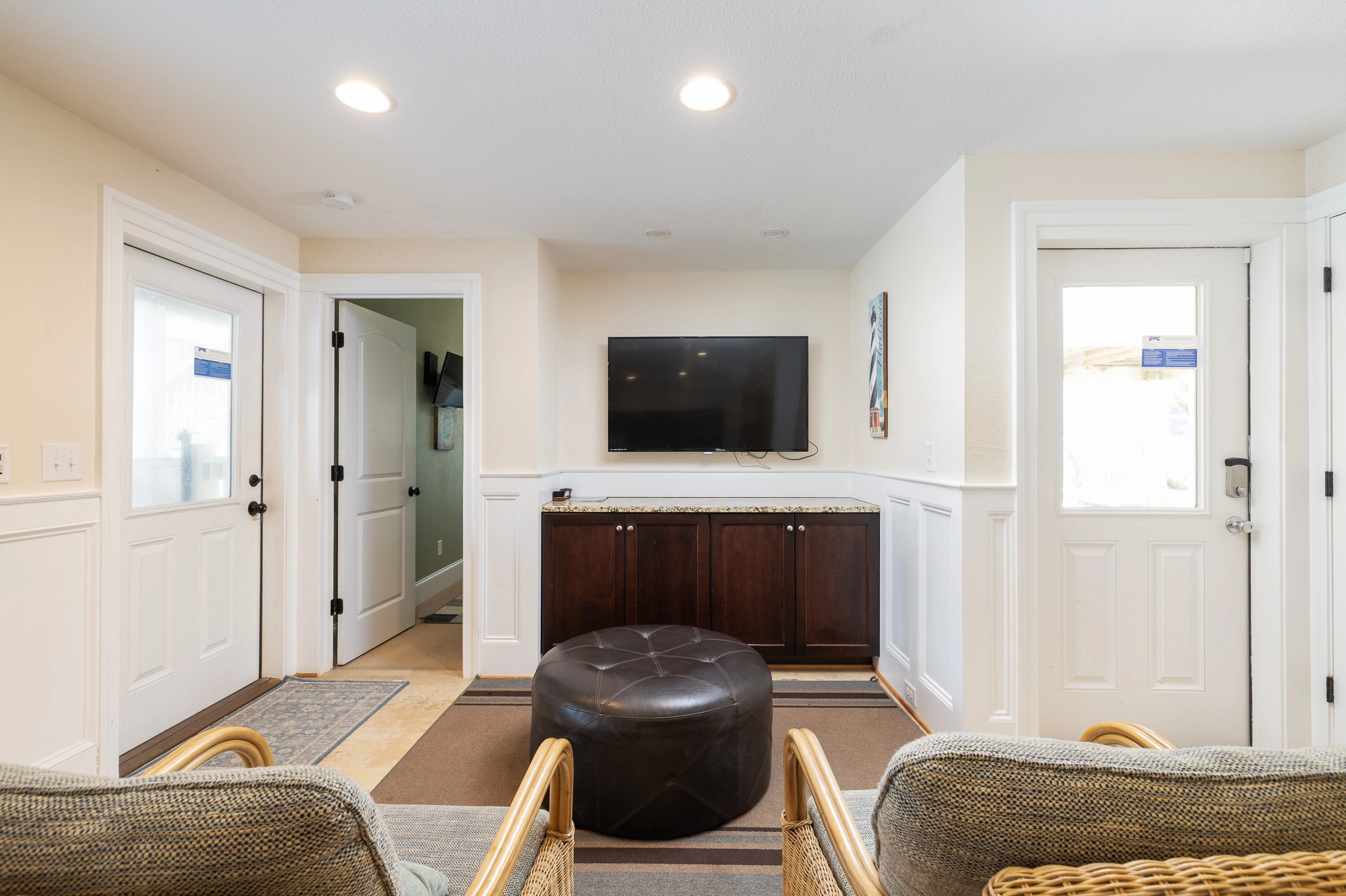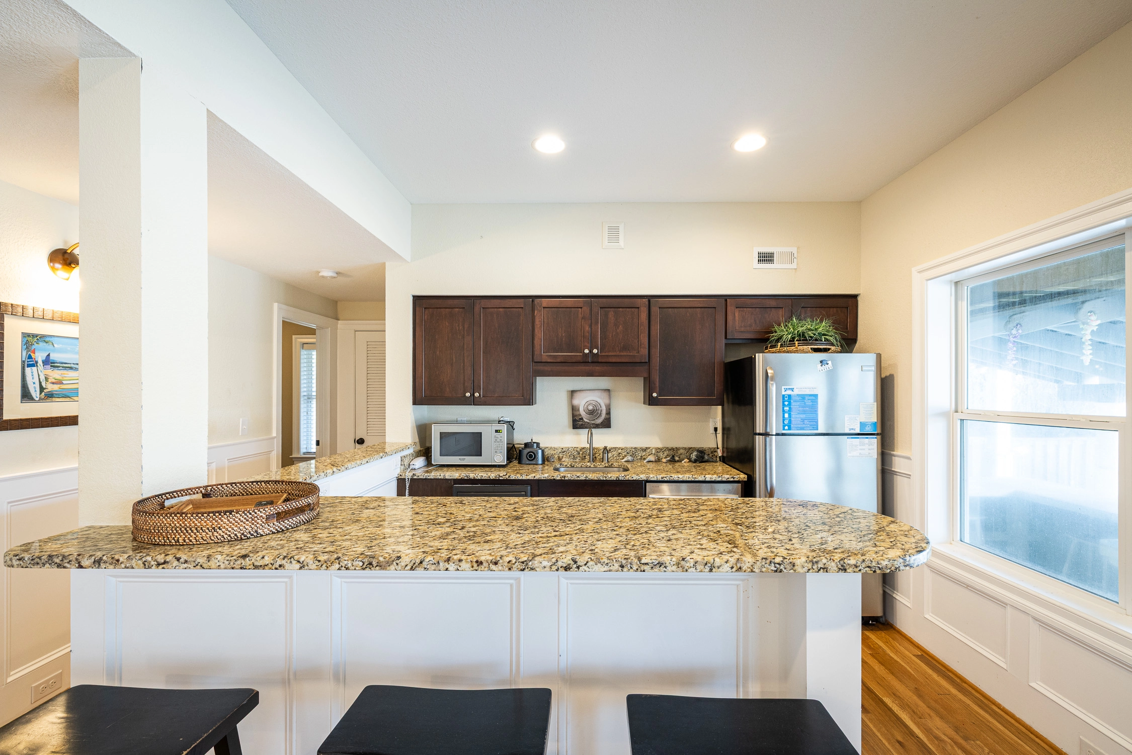 "Theater, proximity to beach, 1st floor kitchenette, hot tub, upstairs kitchen well equipped, elevator helpful for loading and unloading"