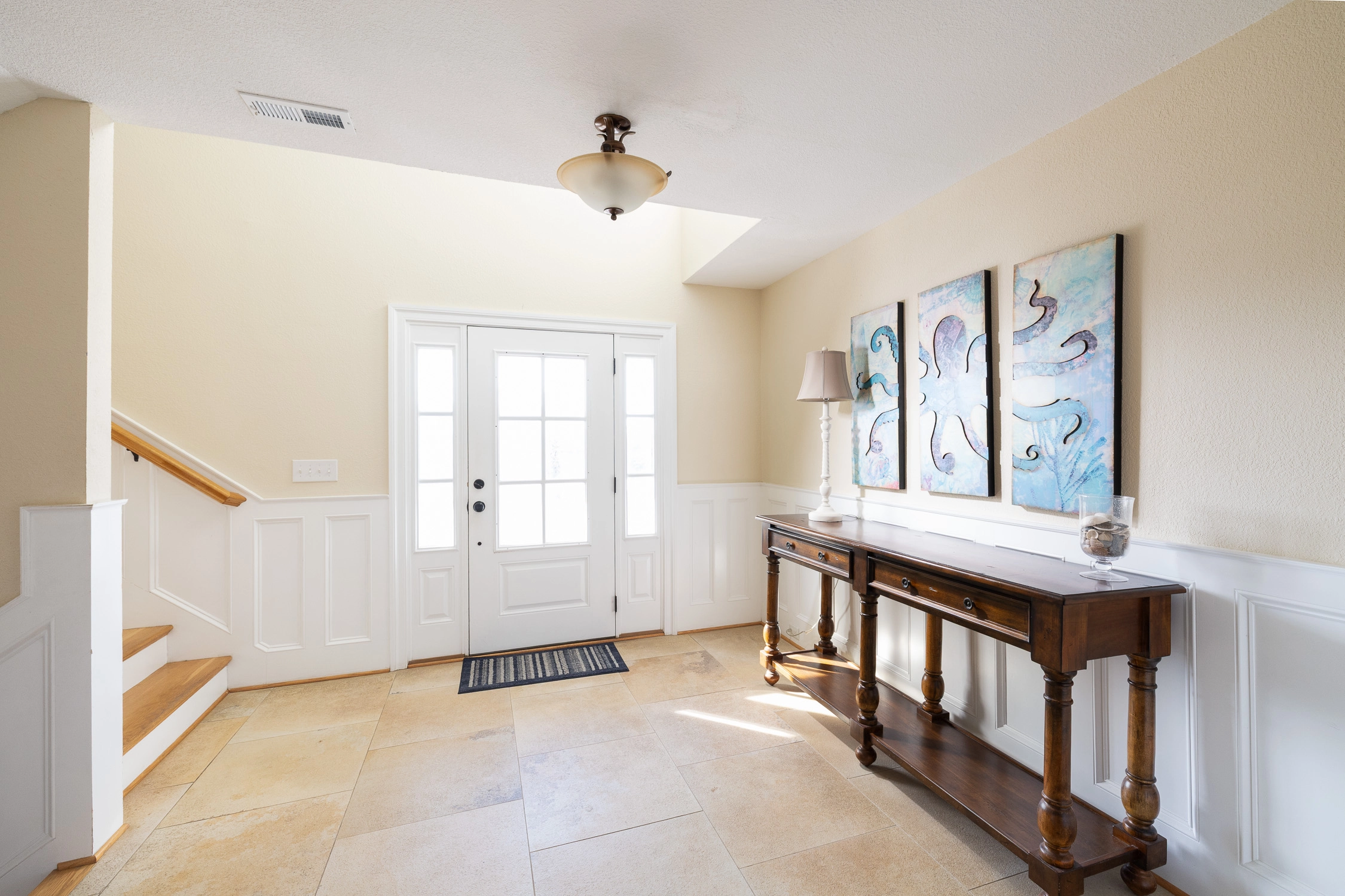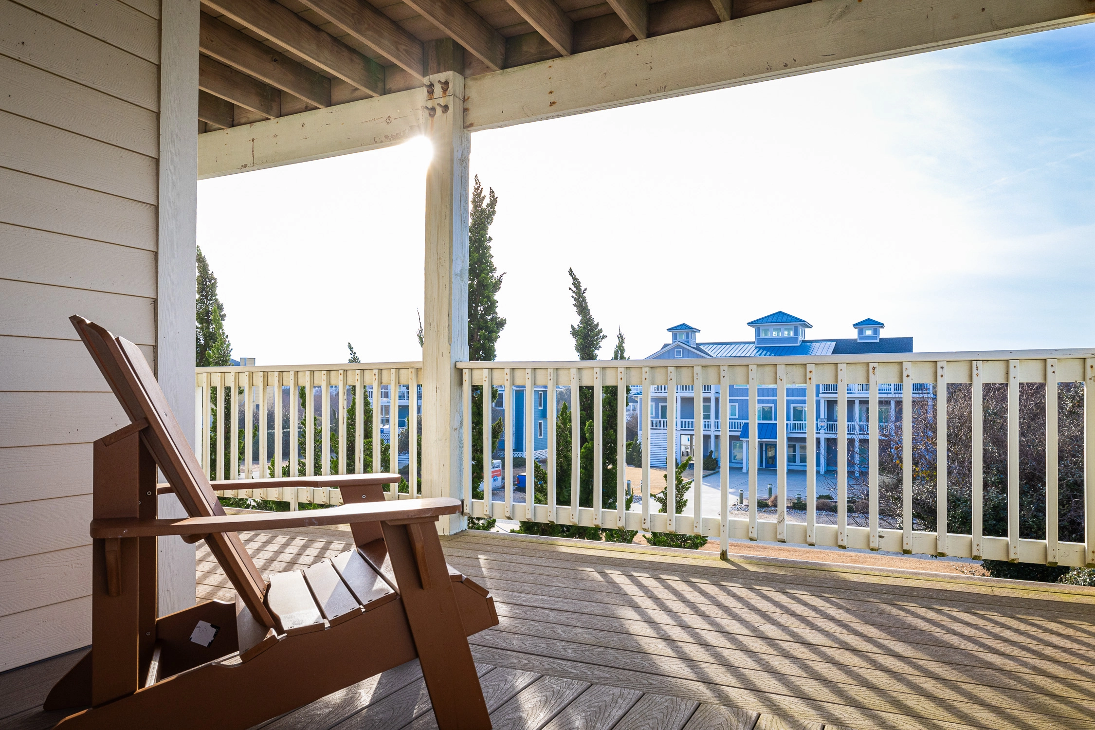 "Spacious, not over-decorated (what was done was tasteful and appropriate to the area), grassy areas where kids could play yard games, overhang on top deck so you could sit out there during the day with some shade, high chairs on the upper deck that didn't let the deck railing block the view."
