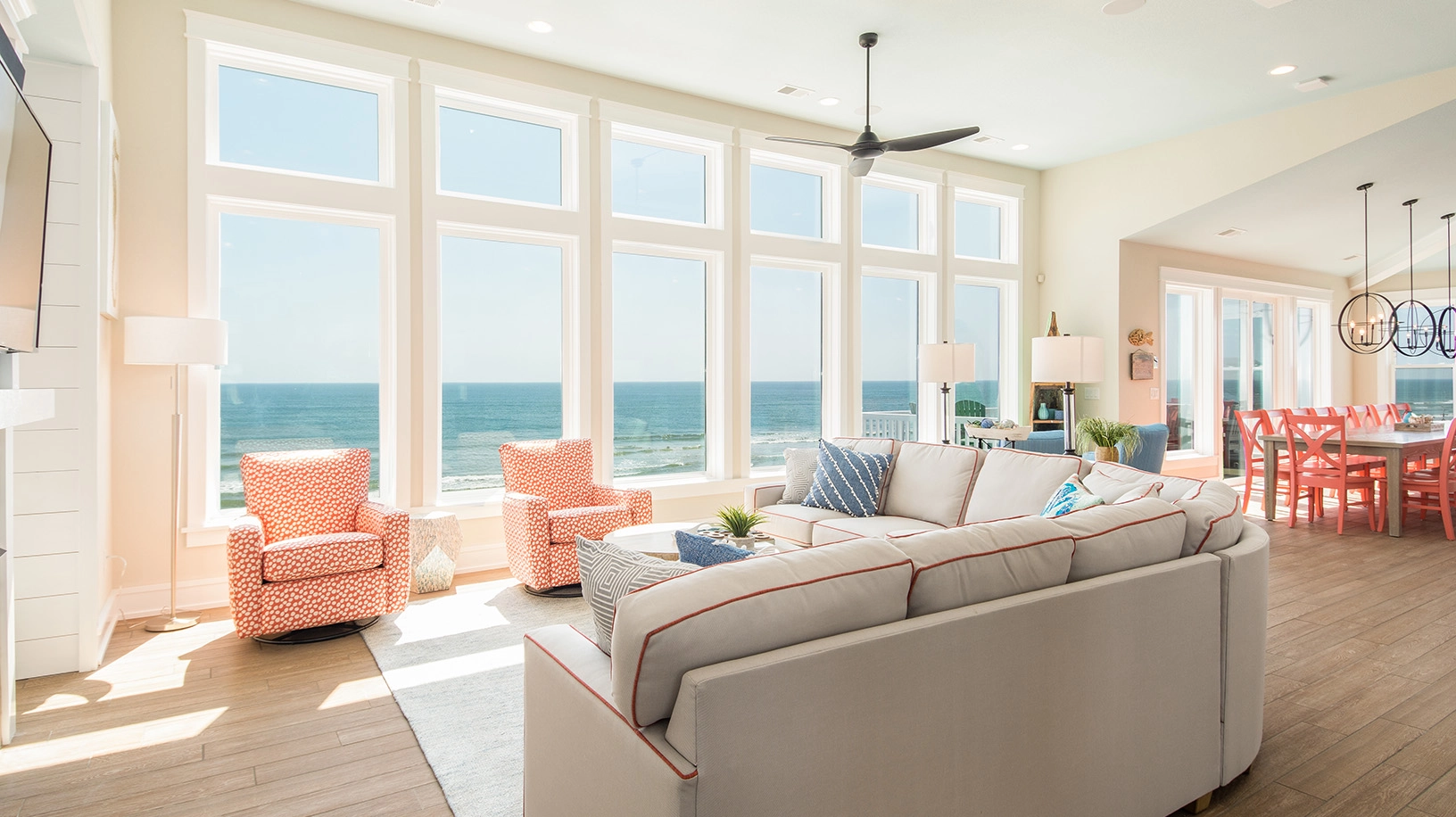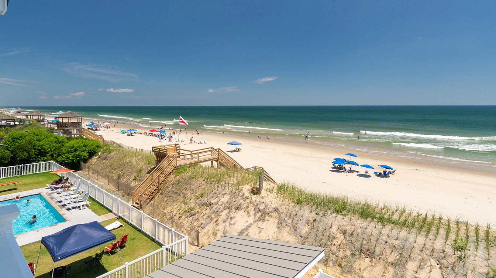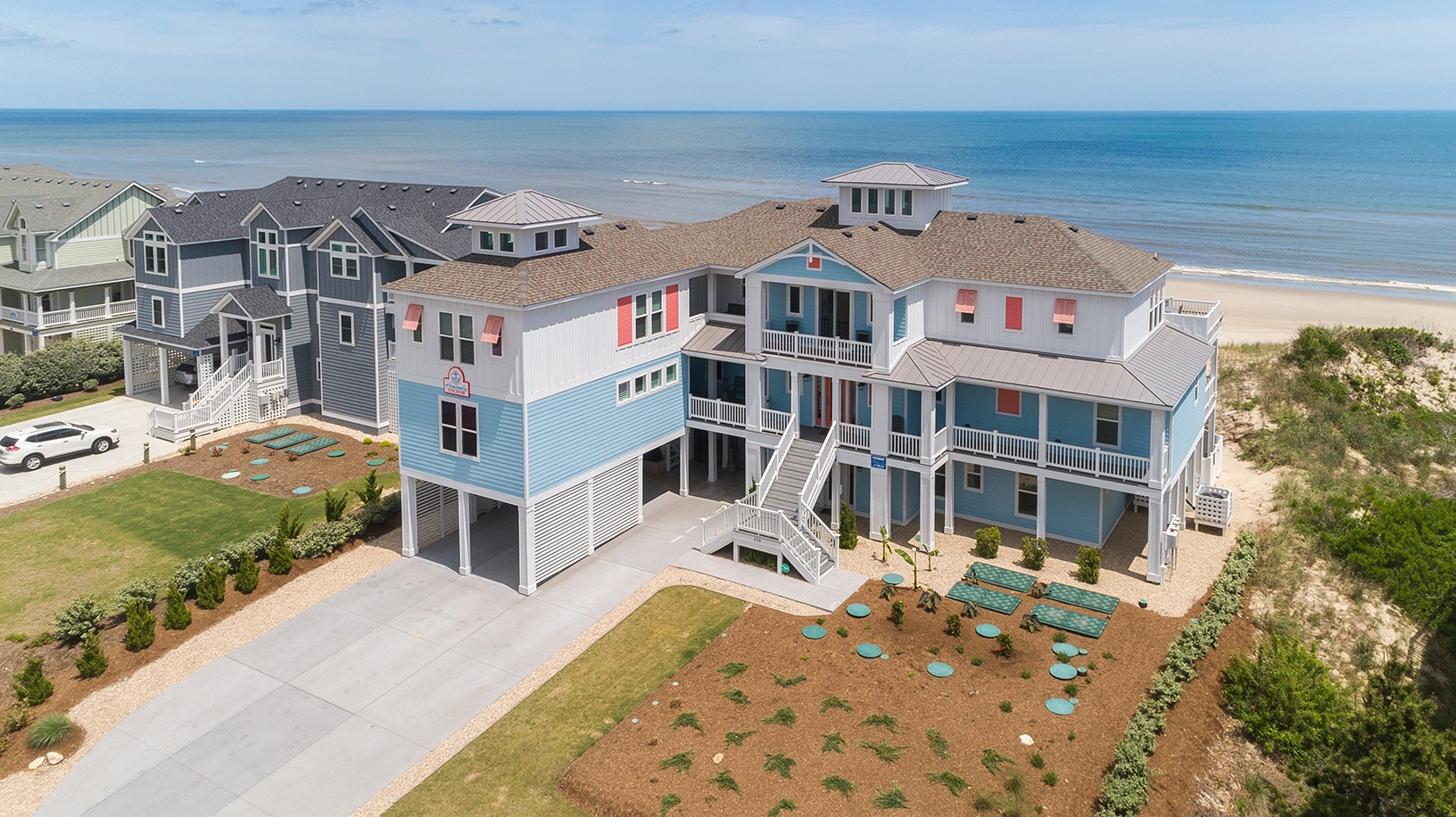 "Location is perfect! Huge space for gathering and fabulous beach access. The view is simply wonderful and one of the things we'll miss most. Lots of entertainment options both indoors and out. And surprisingly quiet - close your bedroom door and any noise practically vanishes. The separate "guest house" is a lovely option to have. It's "heavenly" indeed."