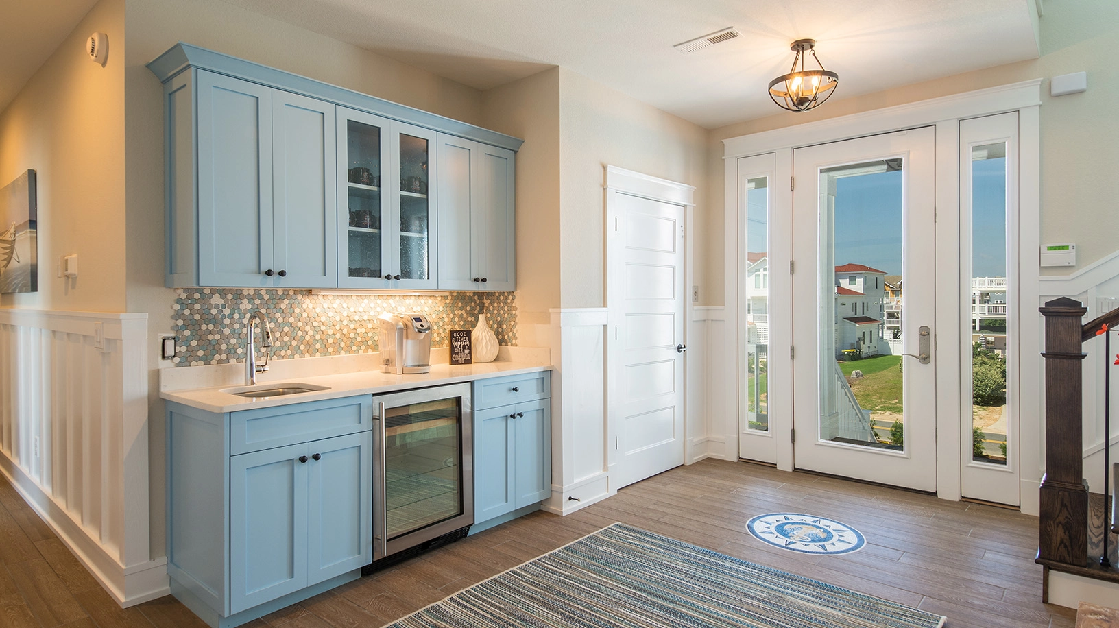 Laundry; foyer/den with wet bar.
