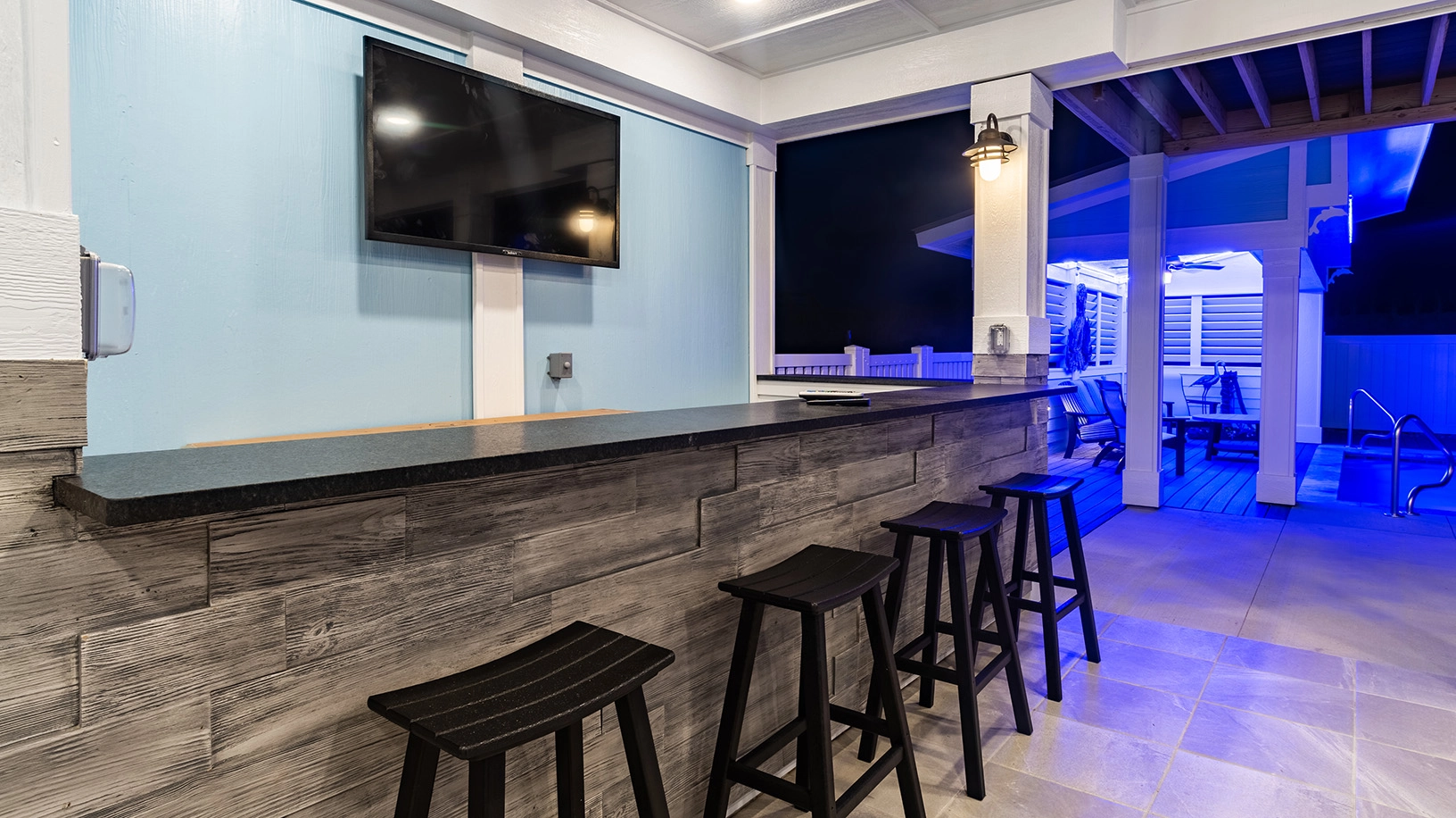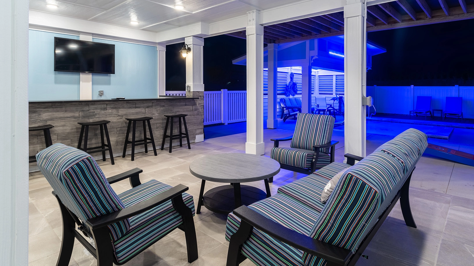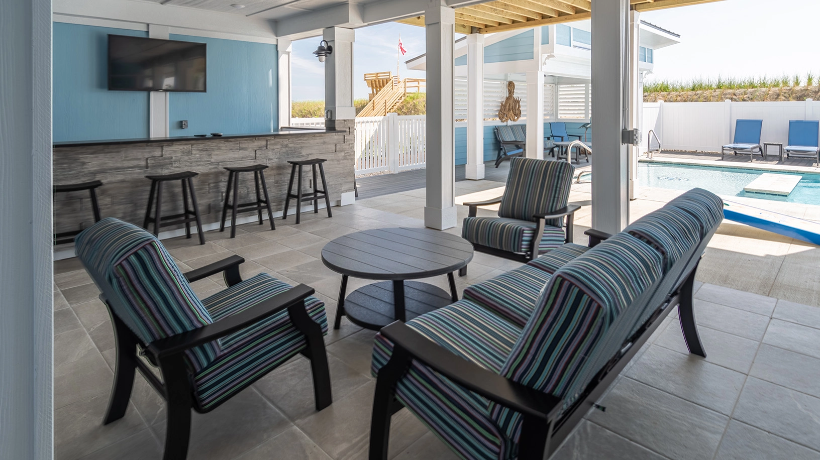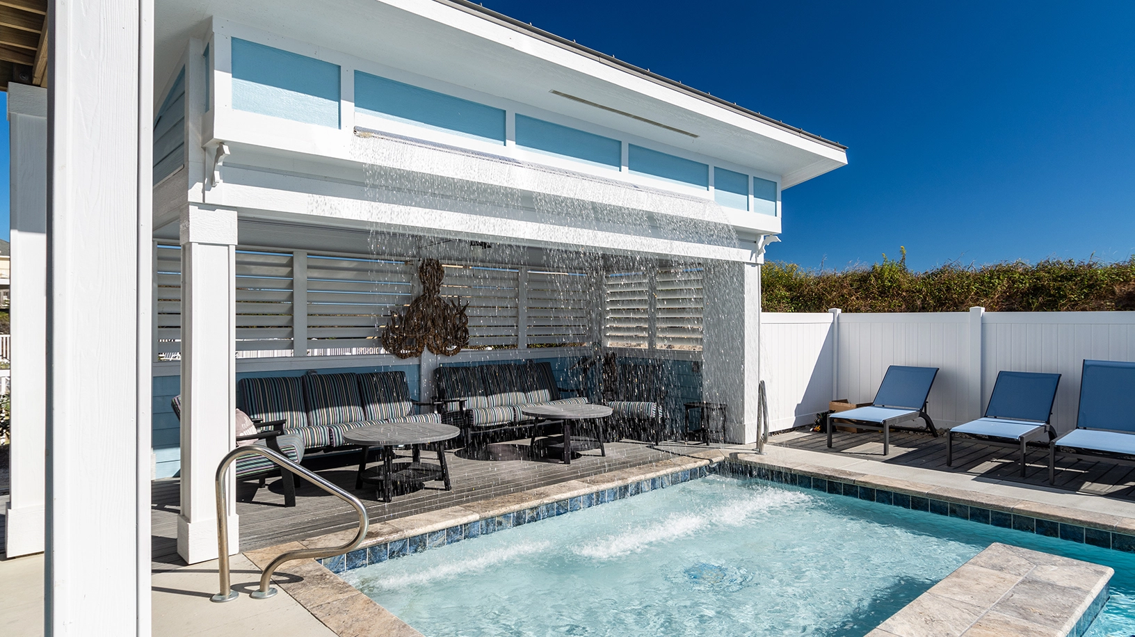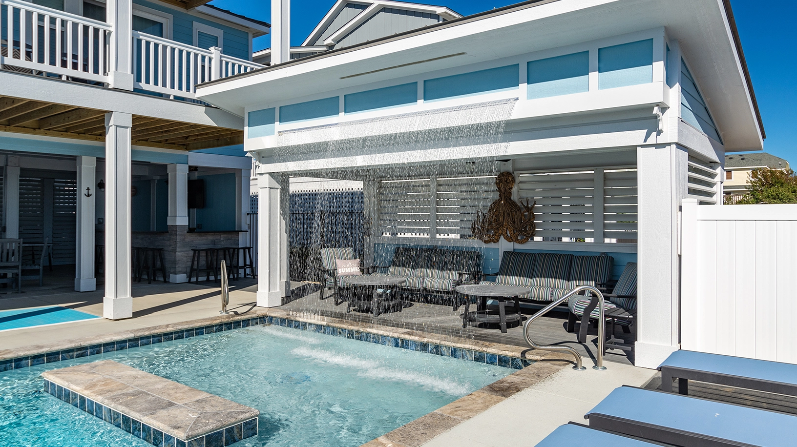 "The pool area was a huge win!! Love the seating areas and the TV in this space. Bedrooms/bathrooms were all great. Loved the Media room."