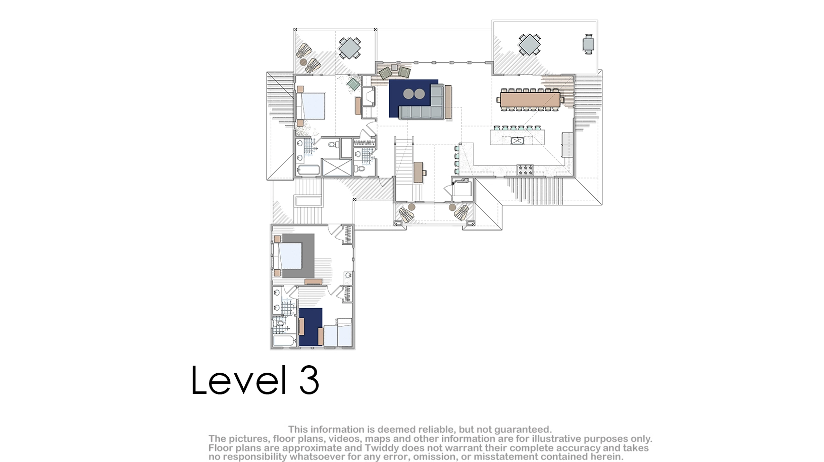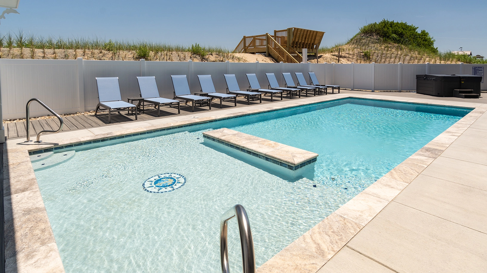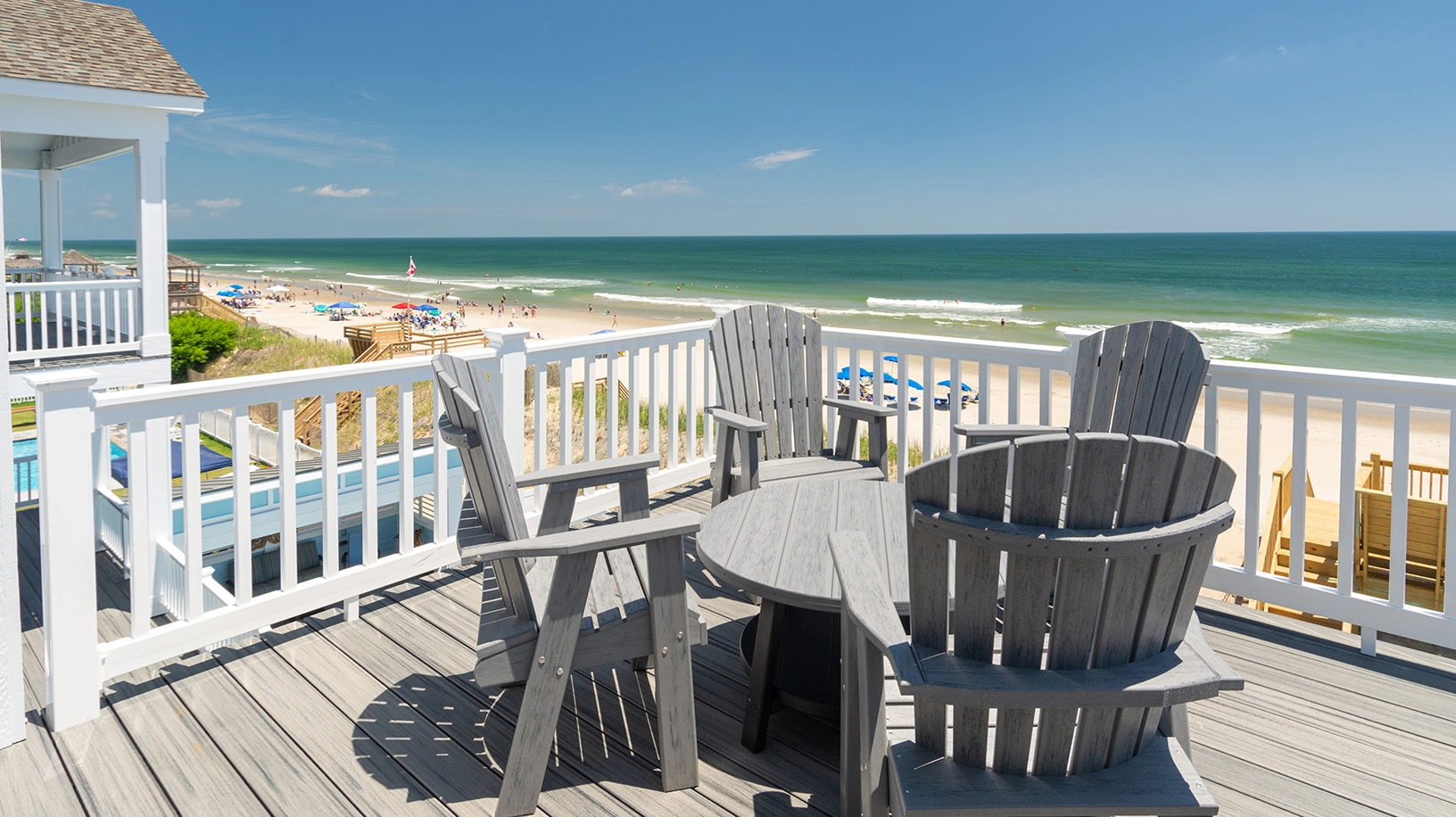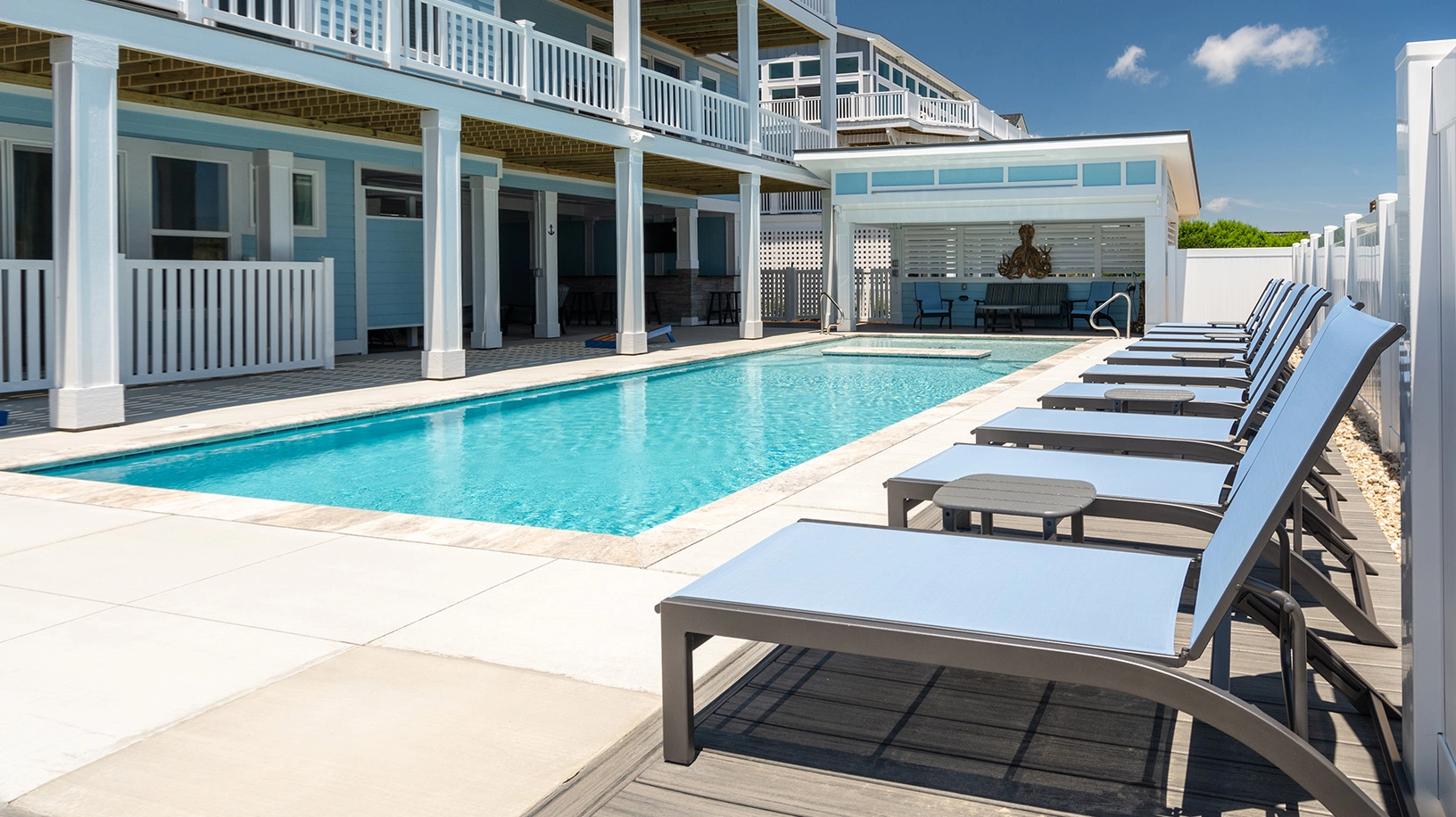 "Lots of rooms en suite. Deck and pool and beach access. Nice media room."