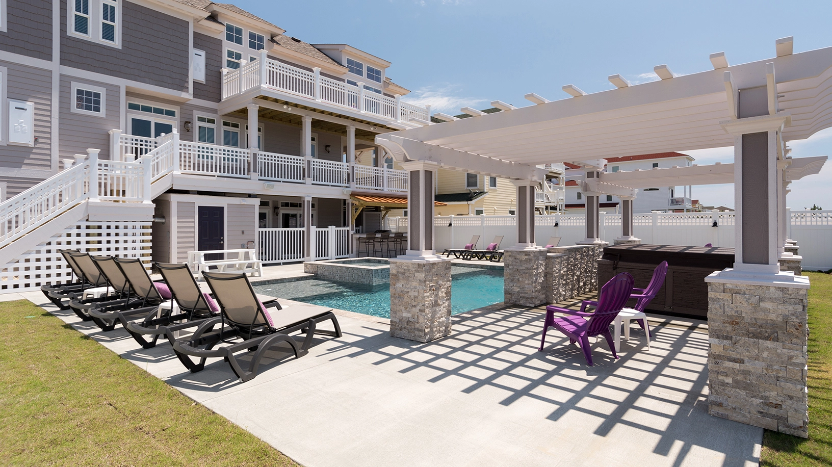 "We loved our stay at High Sea-ciety and immediately booked again for next year! The house was a perfect layout for our big group. The pool and outdoor grill area was the biggest highlight for us with the kiddie pool, tanning ledges, pergola, bar area with outdoor sink, and bathroom. Just a short walk to the beach. Having 2 outdoor showers at the house was helpful! Gorgeous views from the multi-level decks. The house is beautifully styled with chunky furniture and lovely tile. Easy drive or bike ride to grocery store and historic Corolla. If you are there in August, also check out the Brindley Beach 5k on Wednesdays - walk up registration! We are looking forward to returning!"