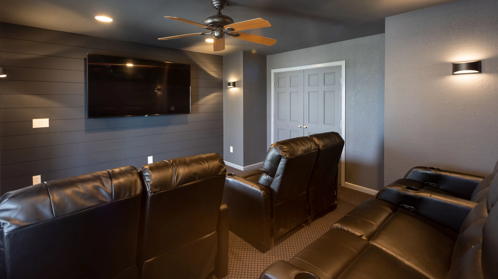 "The movie theater and pool table were a big hit for everyone. We liked the large kitchen and even had a cook-off with three cooks . Plenty of room . The oven /stove could be updated as well as some of the pans we had to work with ."