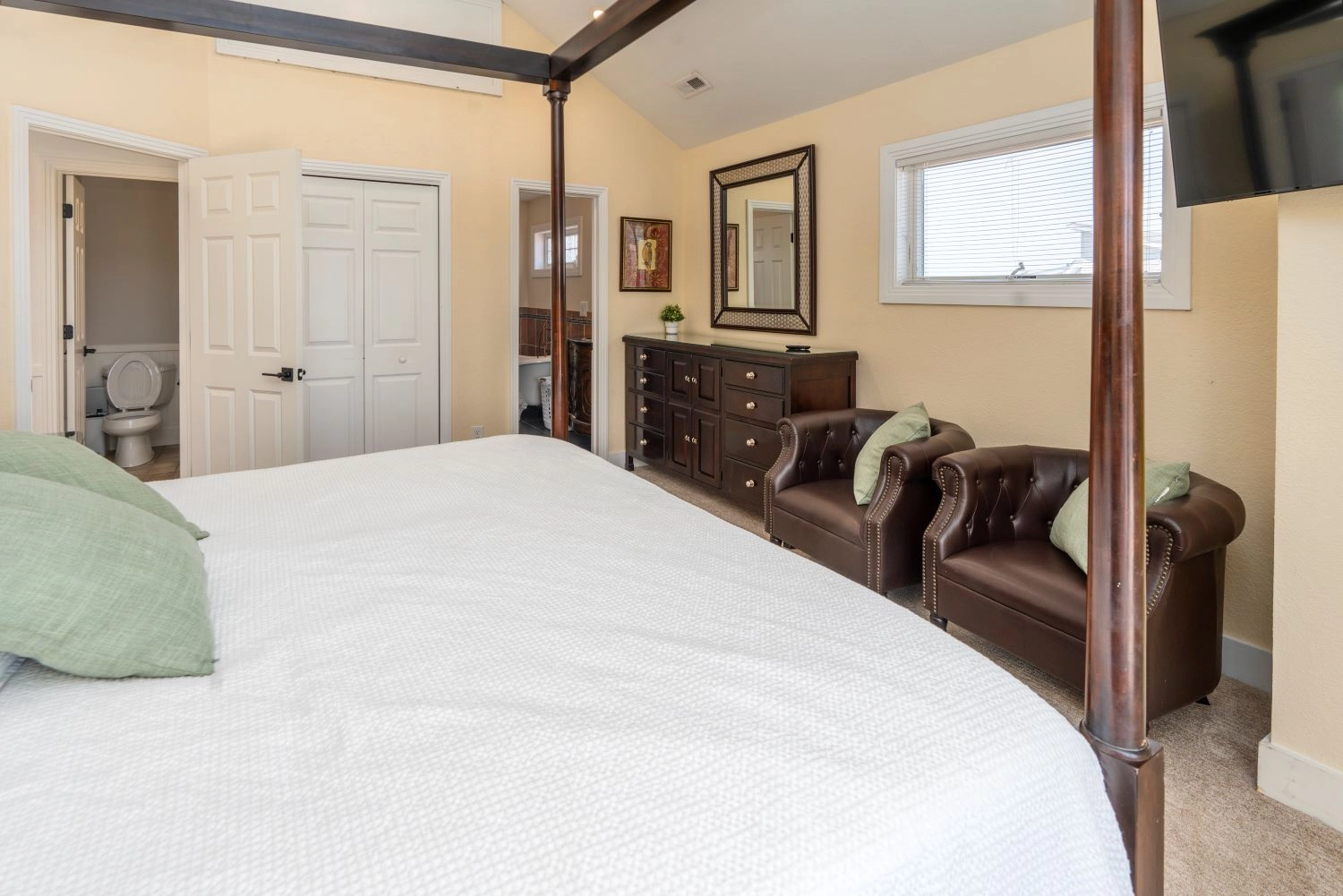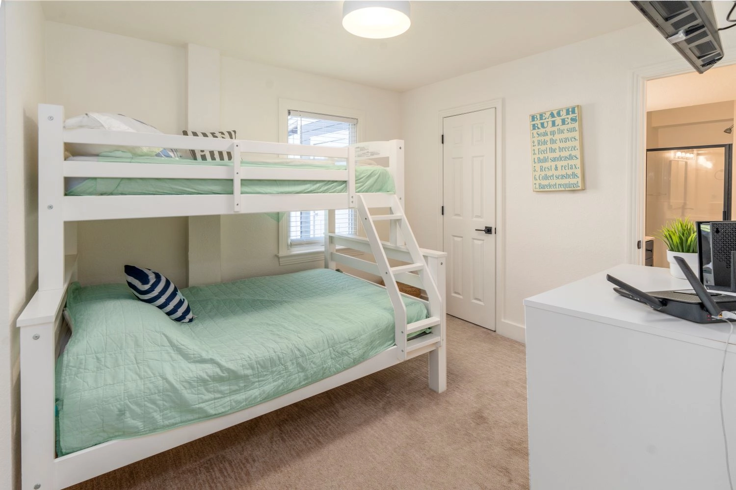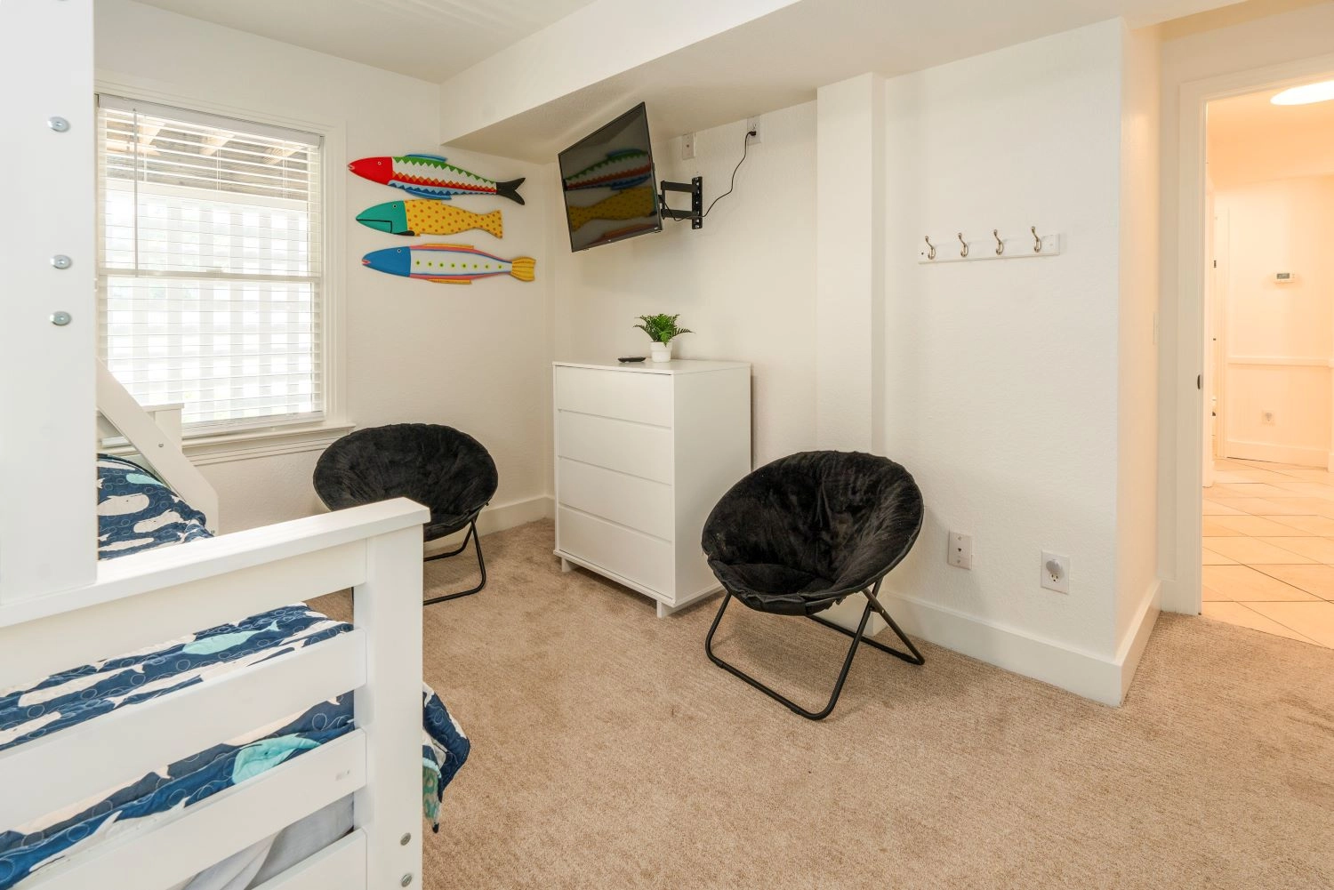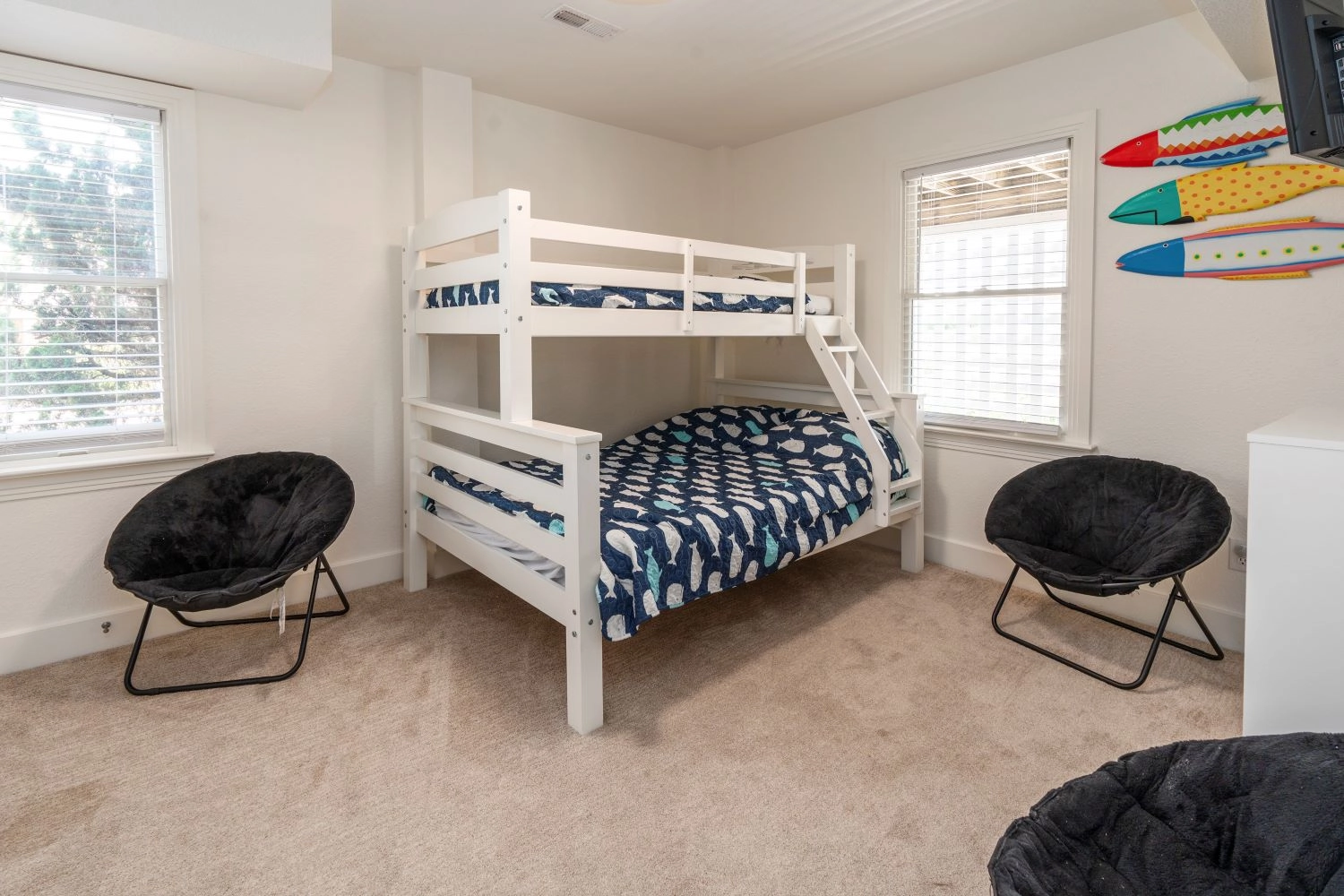 "Lots of living spaces. The great room on the top level has plenty of space for everyone to hang out. Great kitchen if you’re cooking meals. Pool is perfect. Lots of bedrooms/bathrooms. Perfect for large extended families. Short walk to the beach."
