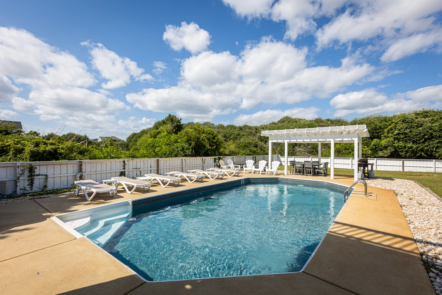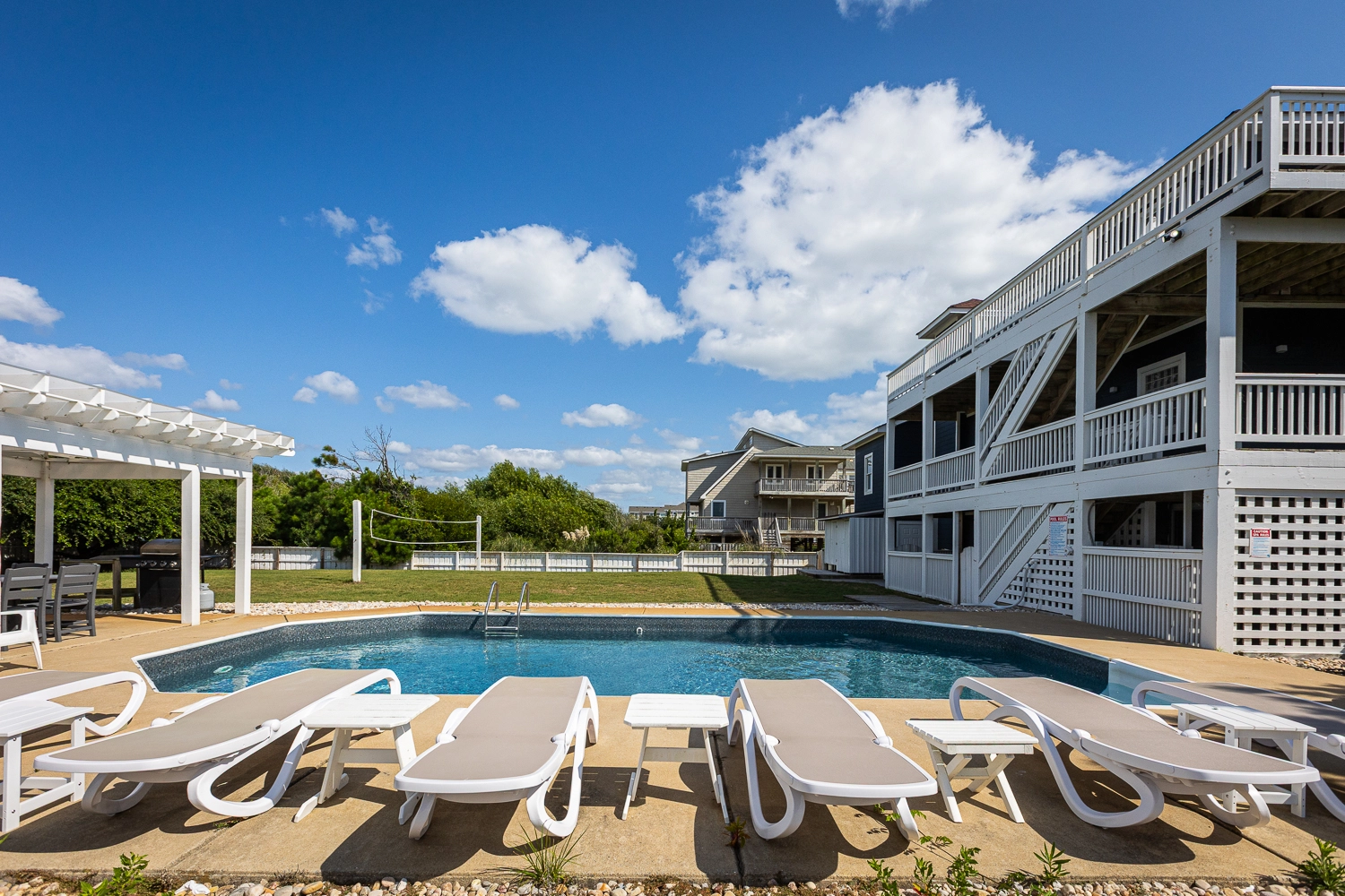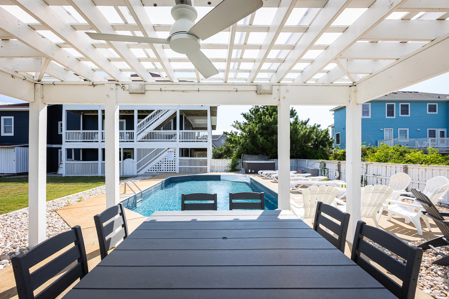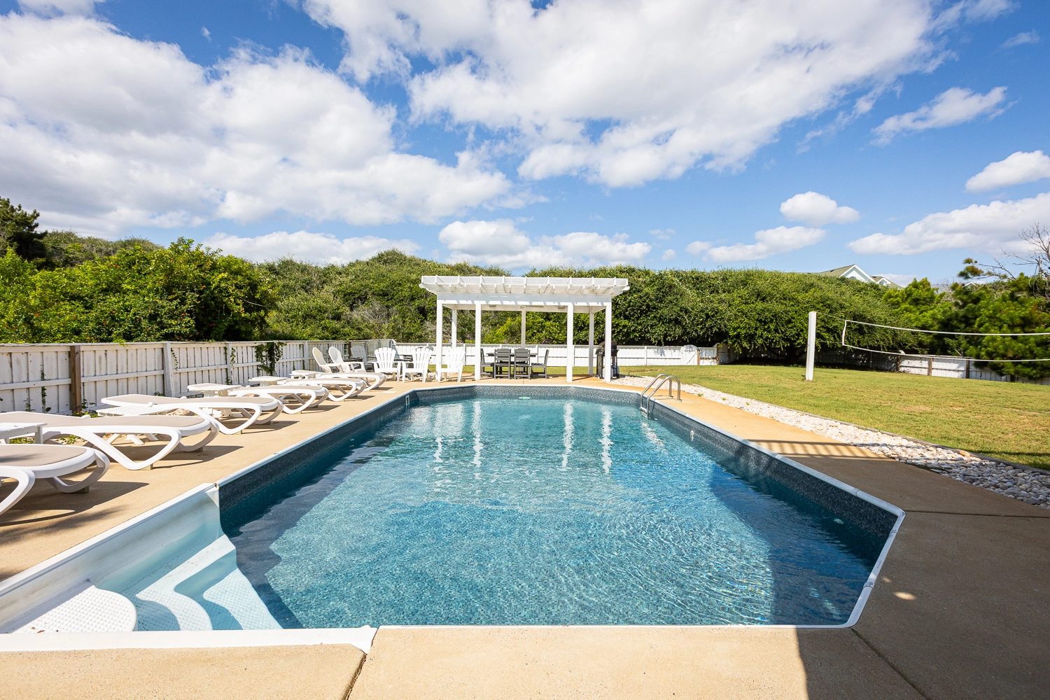 "Great home that is in close proximity to beach access with lovely views of the ocean! We enjoyed the updated kitchen with generous seating capacity as well as the yard which was great for little kids to run around. Beautiful pool that included a nice area to sit and entertain. Nice place for a family vacation in OBX!"