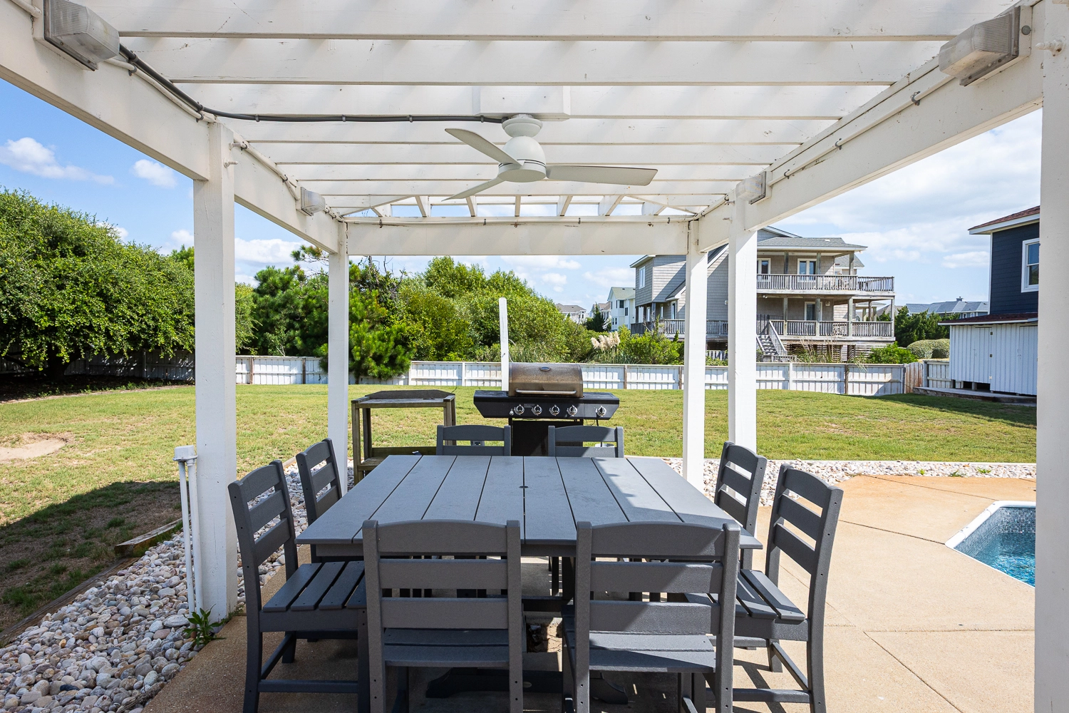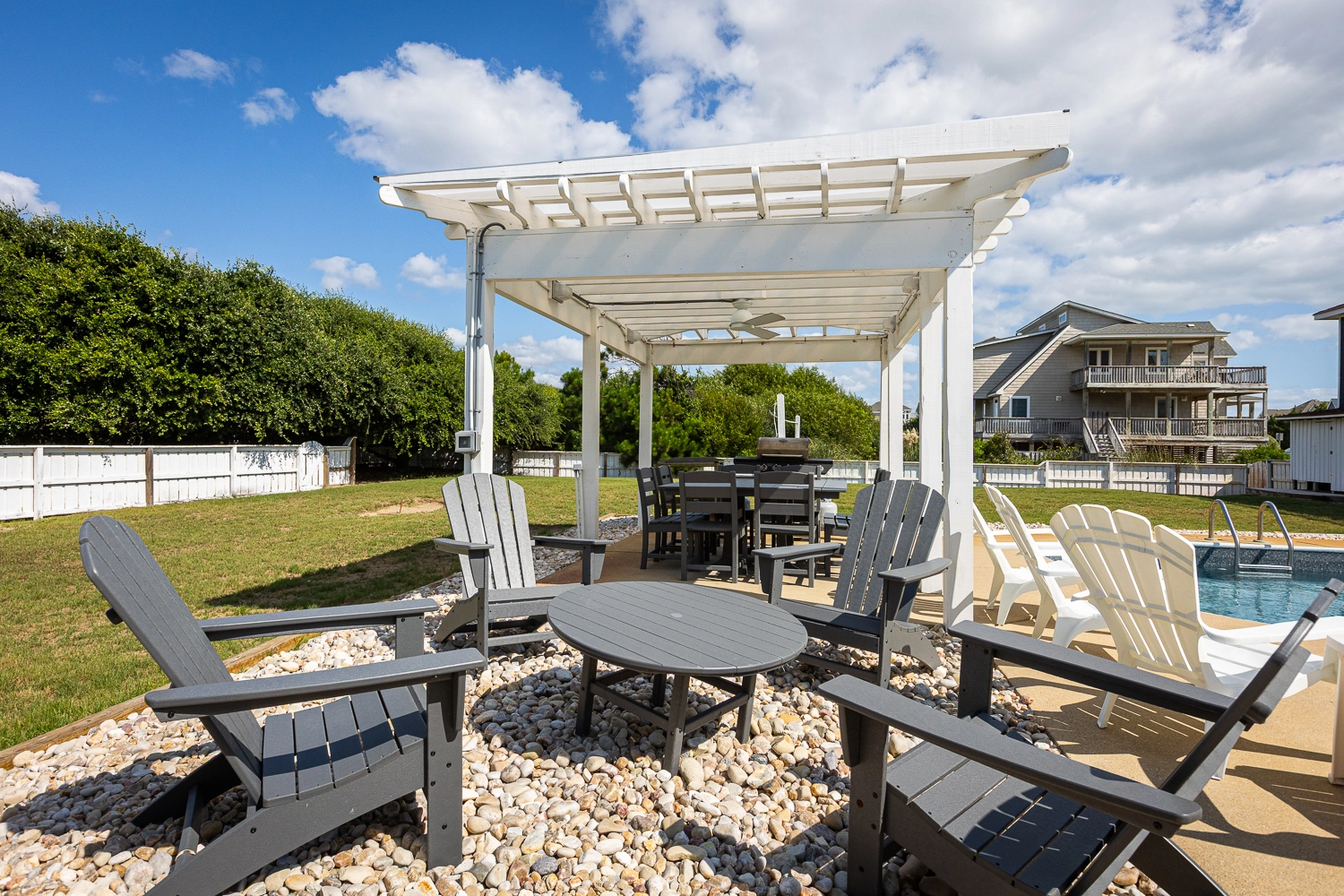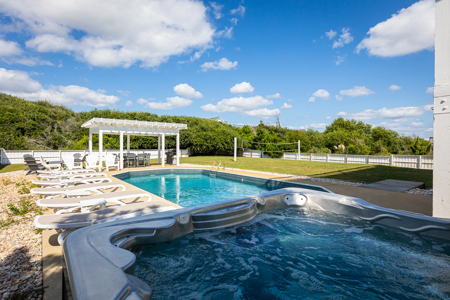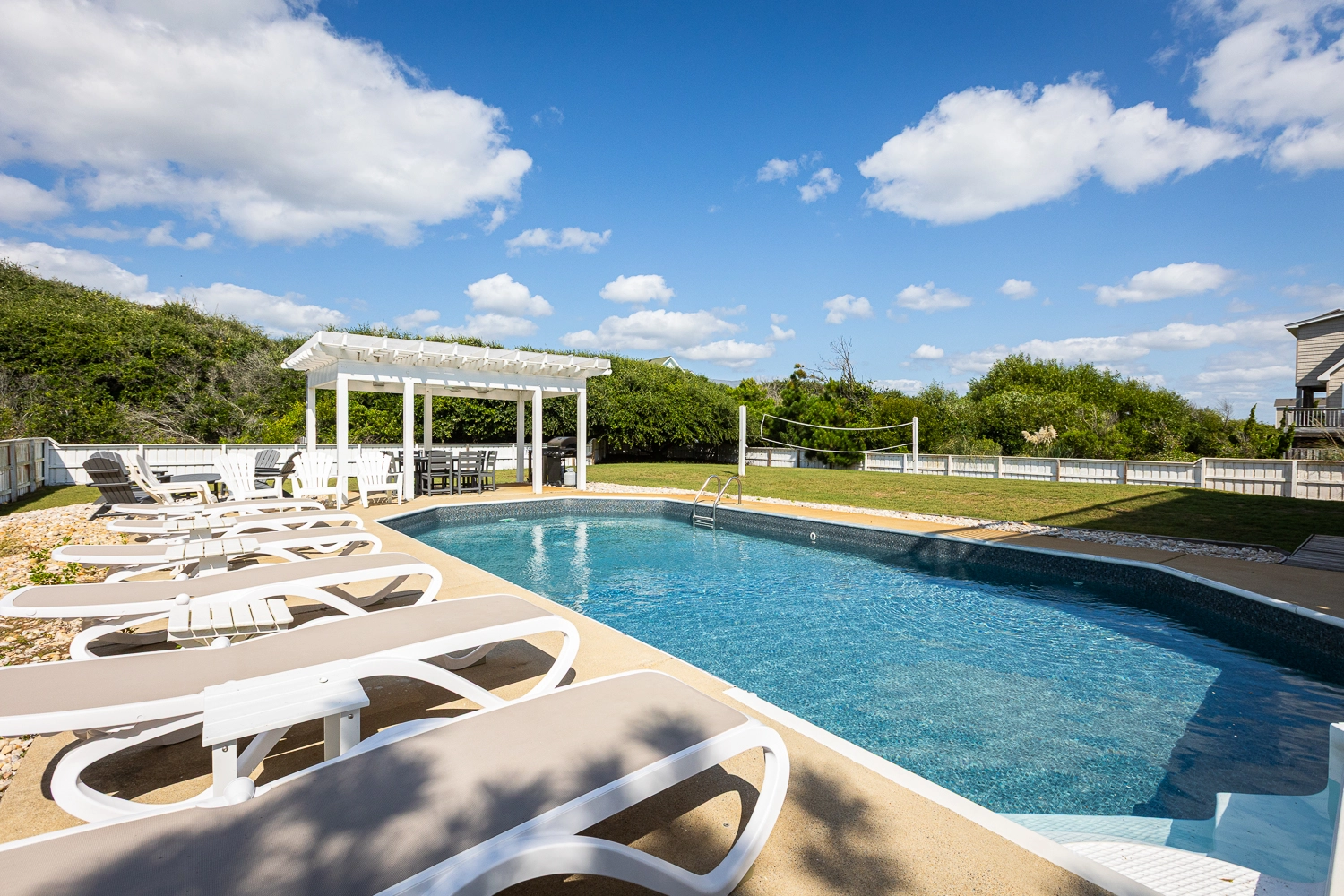 "Great home that is in close proximity to beach access with lovely views of the ocean! We enjoyed the updated kitchen with generous seating capacity as well as the yard which was great for little kids to run around. Beautiful pool that included a nice area to sit and entertain. Nice place for a family vacation in OBX!"
