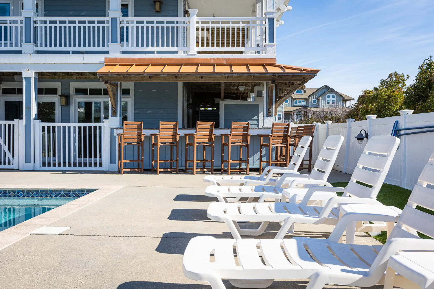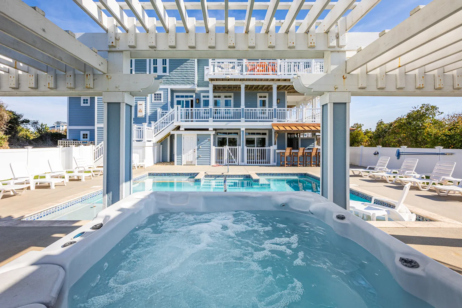 "The house was clean and ready for us early which was great. Everyone loved having their own bathroom and plenty of room to visit in the multiple family rooms. We enjoyed the theatre as the weather was not great. Also had fun in the pool and relaxing in the hot tub. Twiddy addressed all the minor things we called in about in a timely fashion. Thanks for a great week. Now who can we talk to about the weather. LOL"