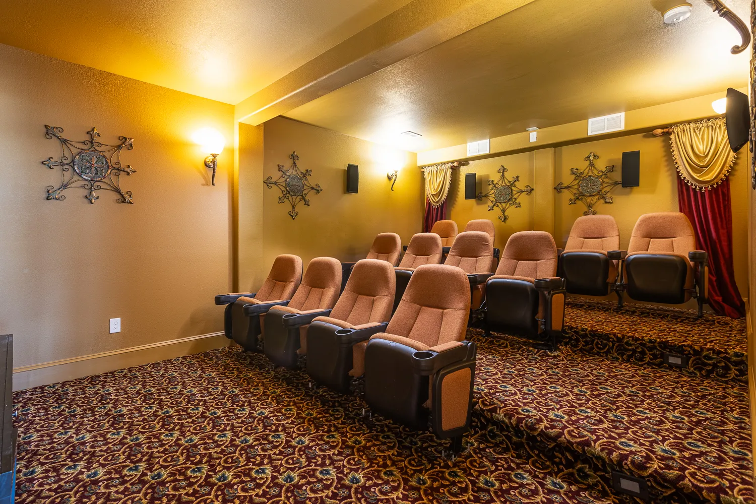 Theater room; rec room with pool table, shuffleboard, and kitchenette with refrigerator, and dishwasher.