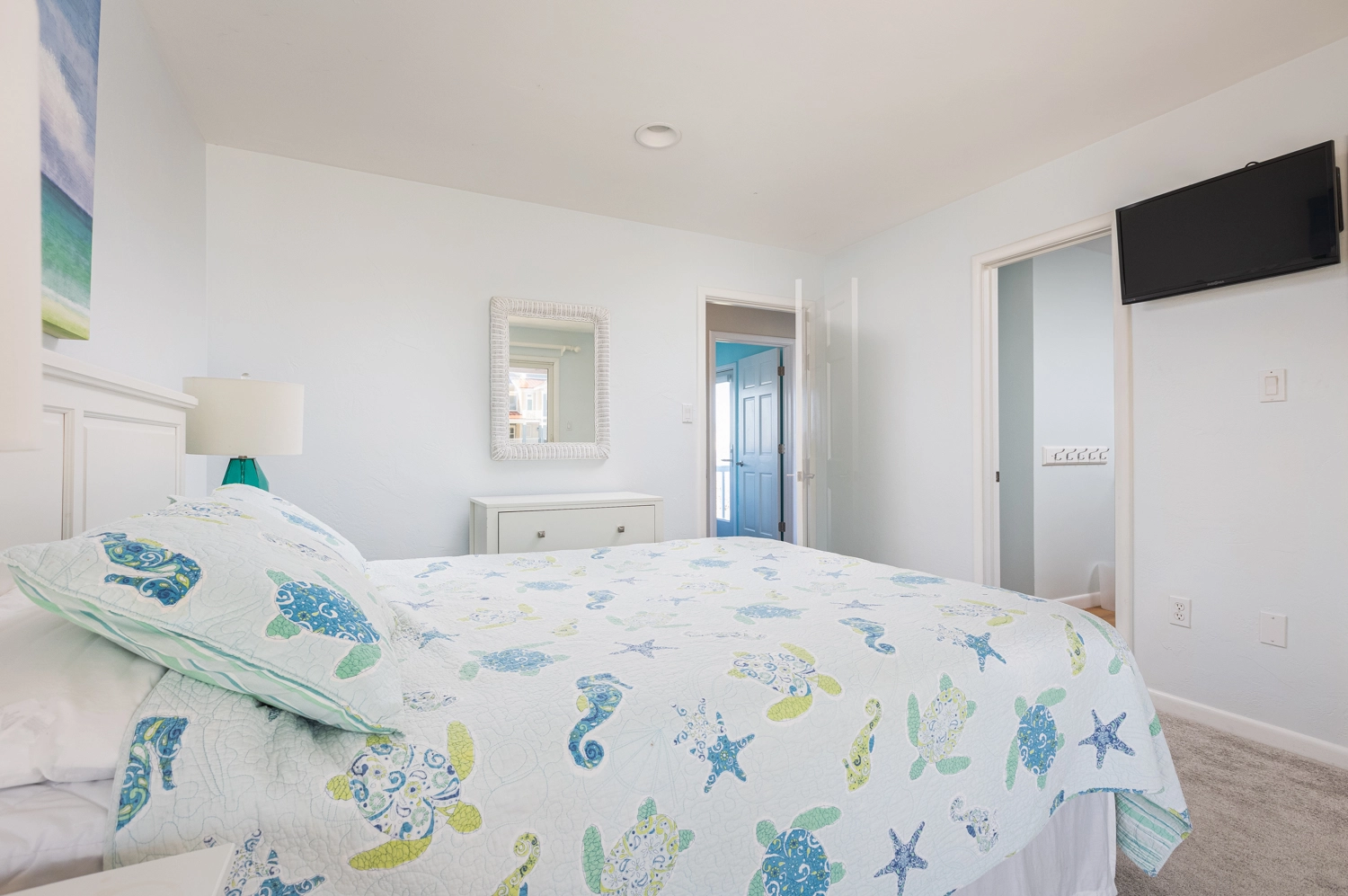Queen with semi-private bath, and deck access