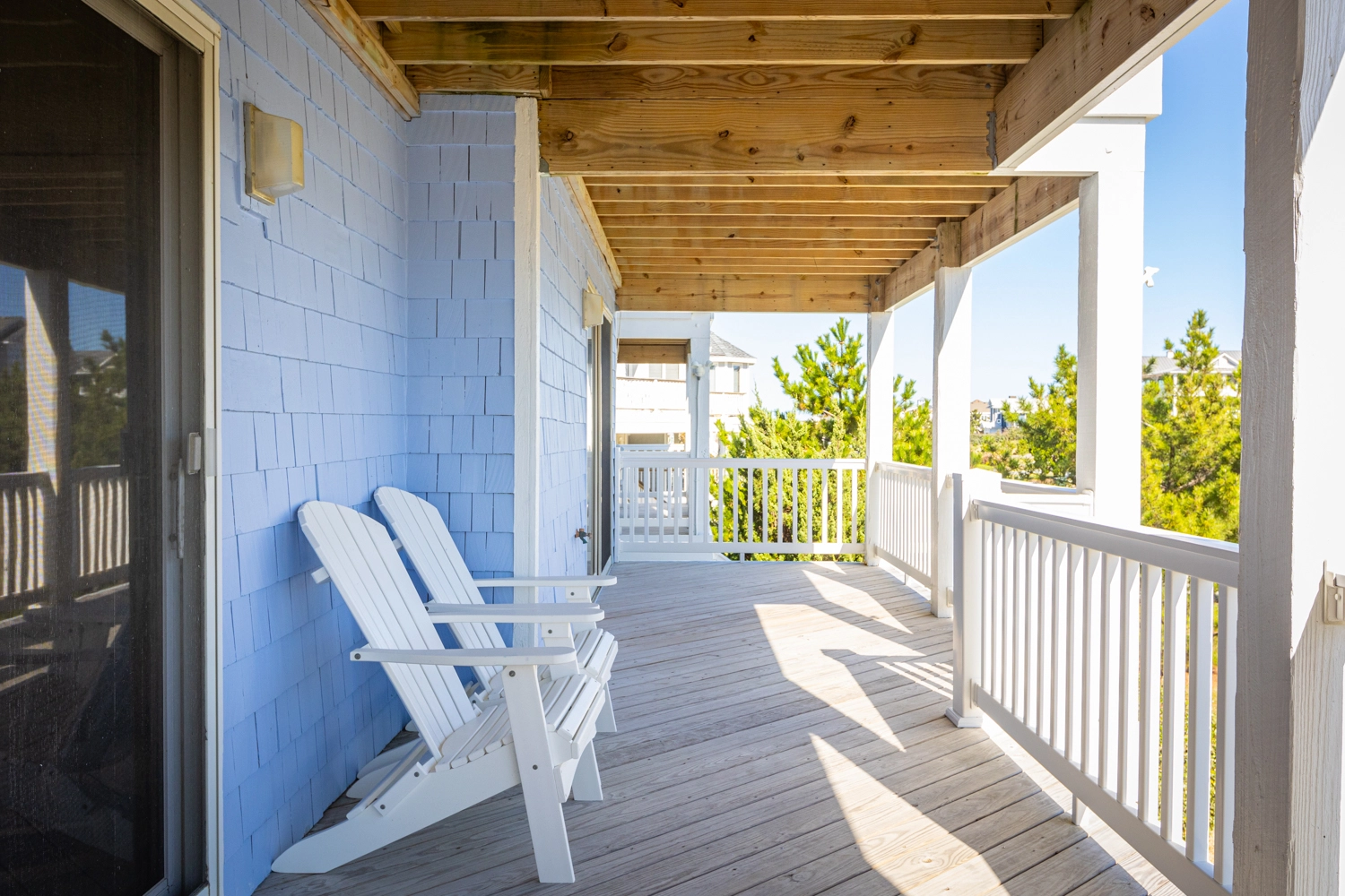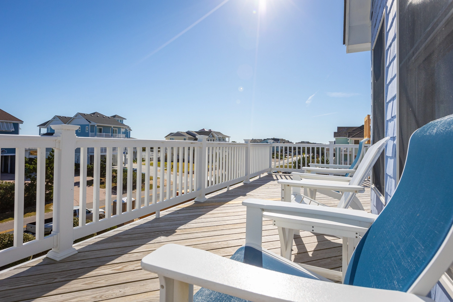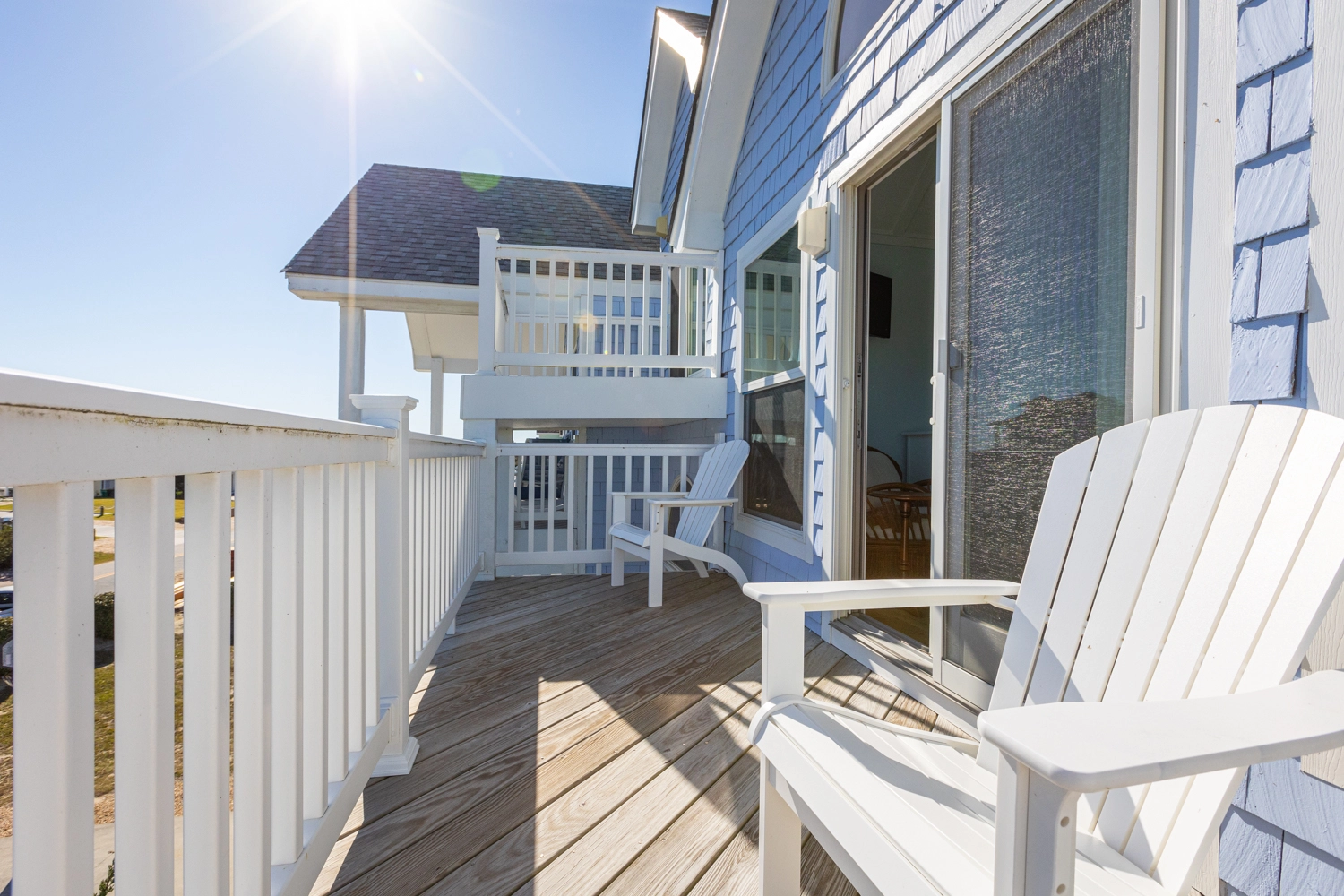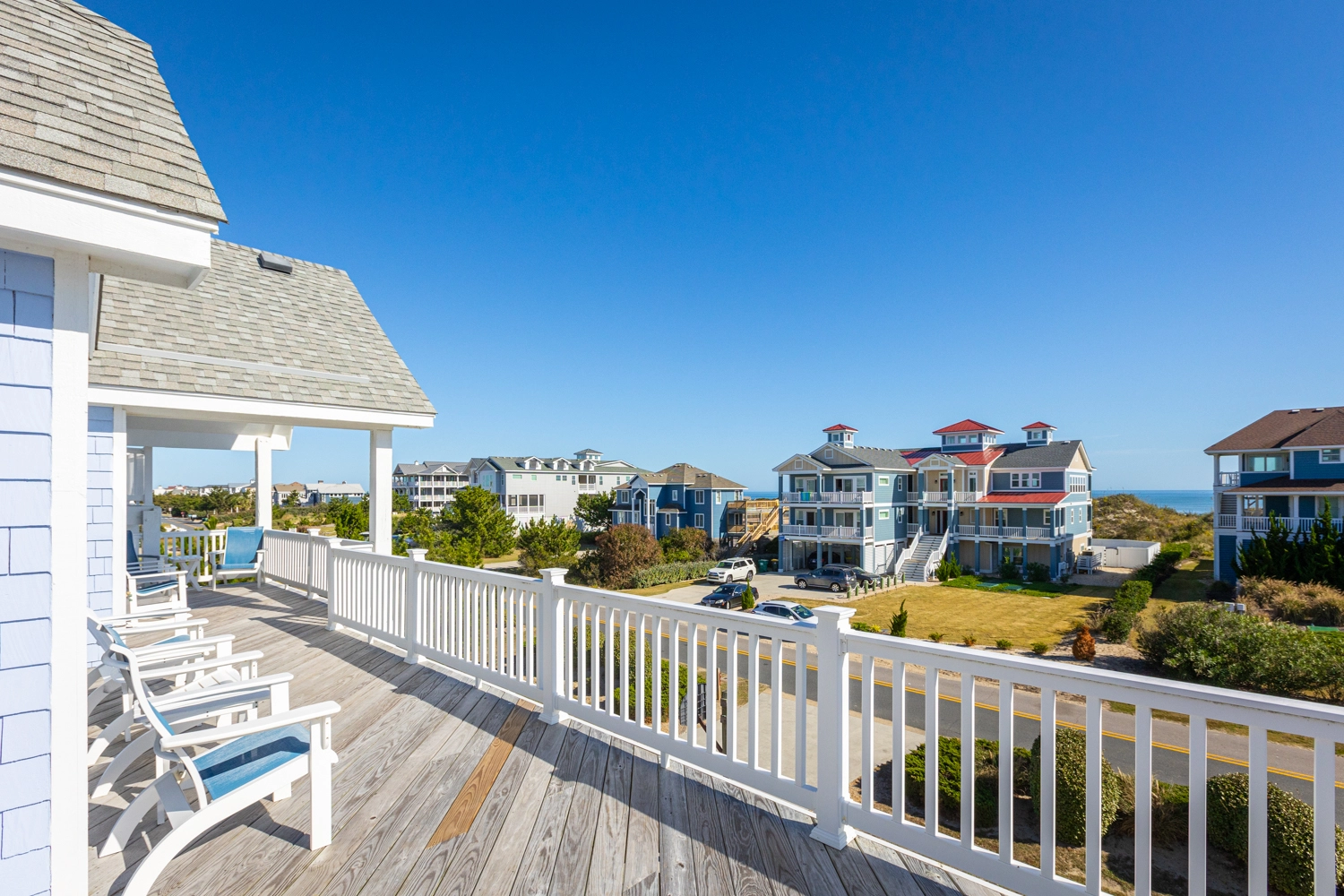 "We enjoyed our week at Mother Mother Ocean. The views from the front porch were very good of the sea and the sunrise with comfortable and clean deck chairs both Adirondack and Rocking chair style. Convenient location to beach access that took us 3 minutes to reach. Interior of house was very clean upon arrival. Kitchen had new countertops and cabinets as well as flooring. Lots of work space. Back upper porch was nice to sit out on when the sun went down. Furniture in living area was comfortable. Room for improvements include updating the master bath on the main floor. Shortest toilet I have ever experienced , bed was very hard. Half bath on main level did have an upgraded toilet height👍.Multiple screens throughout the house had holes in them which allowed bugs to come in if opened. All screens and windows needed to be power washed along with the screened in porches on both floors which were filled with dead bugs in order to fully enjoy the view. Dead bugs galore in a pile outside the main door to the upper front deck(due to outdoor light being on).Again needed to be power washed every few weeks. Beach chairs are old and rusty except for one. Geared more for children than adults. Glad we brought our own. Had one issue and it was taken care of promptly that day.Overall nice house in great location with further updates could be excellent."