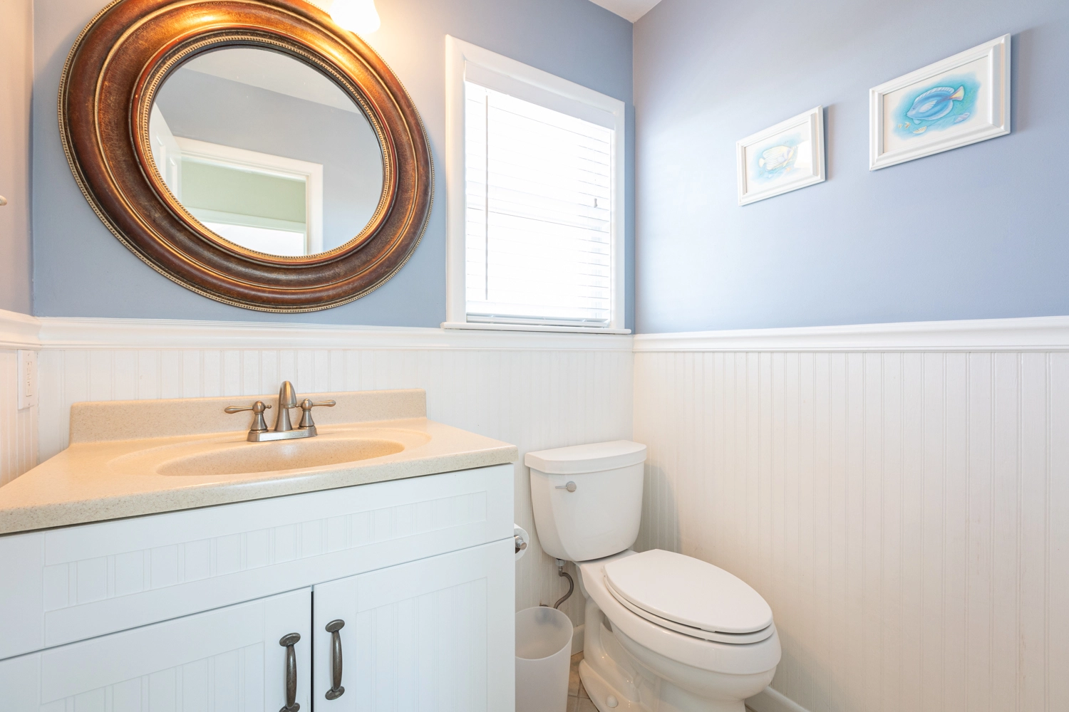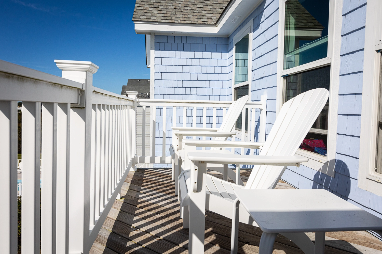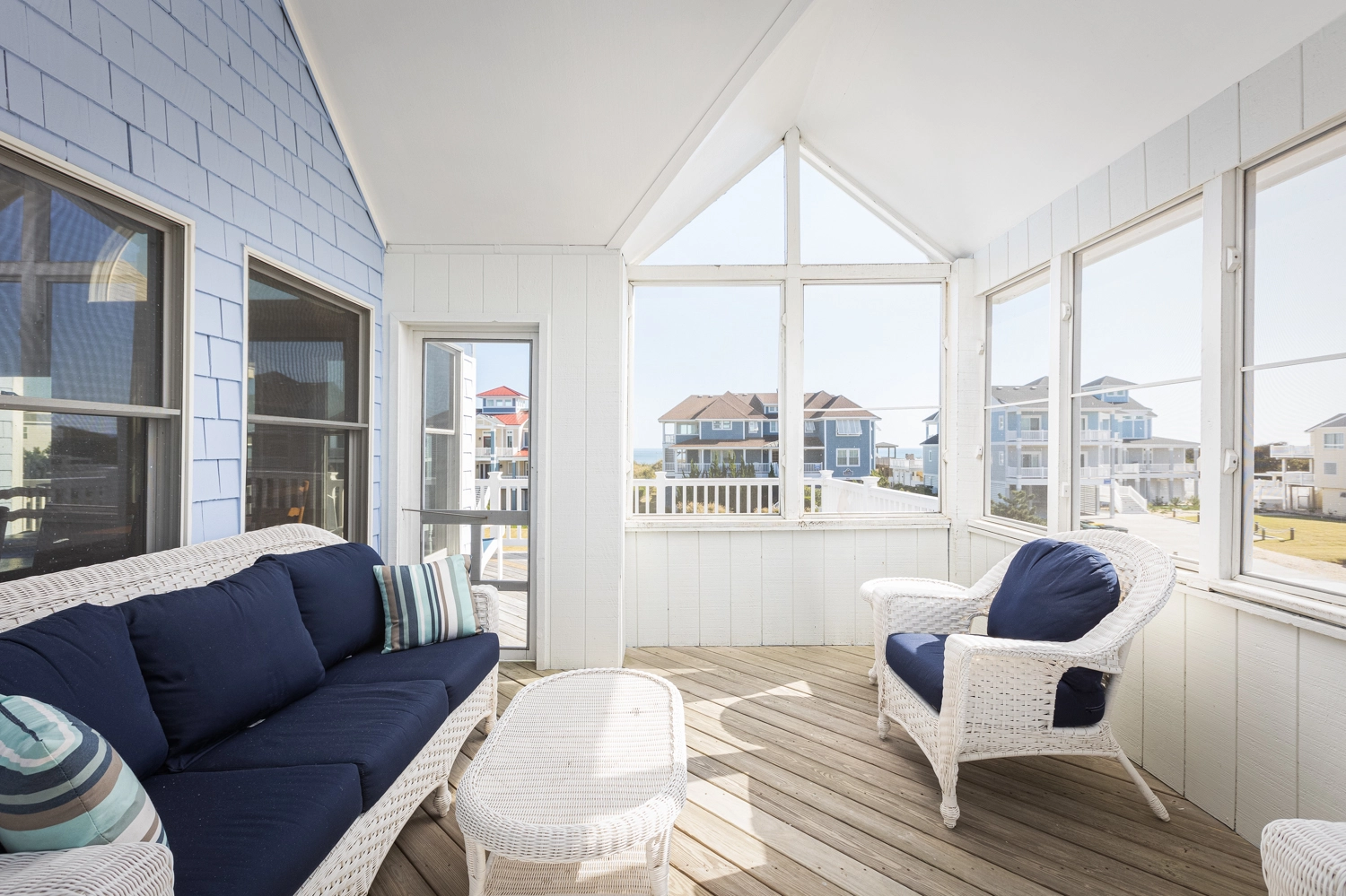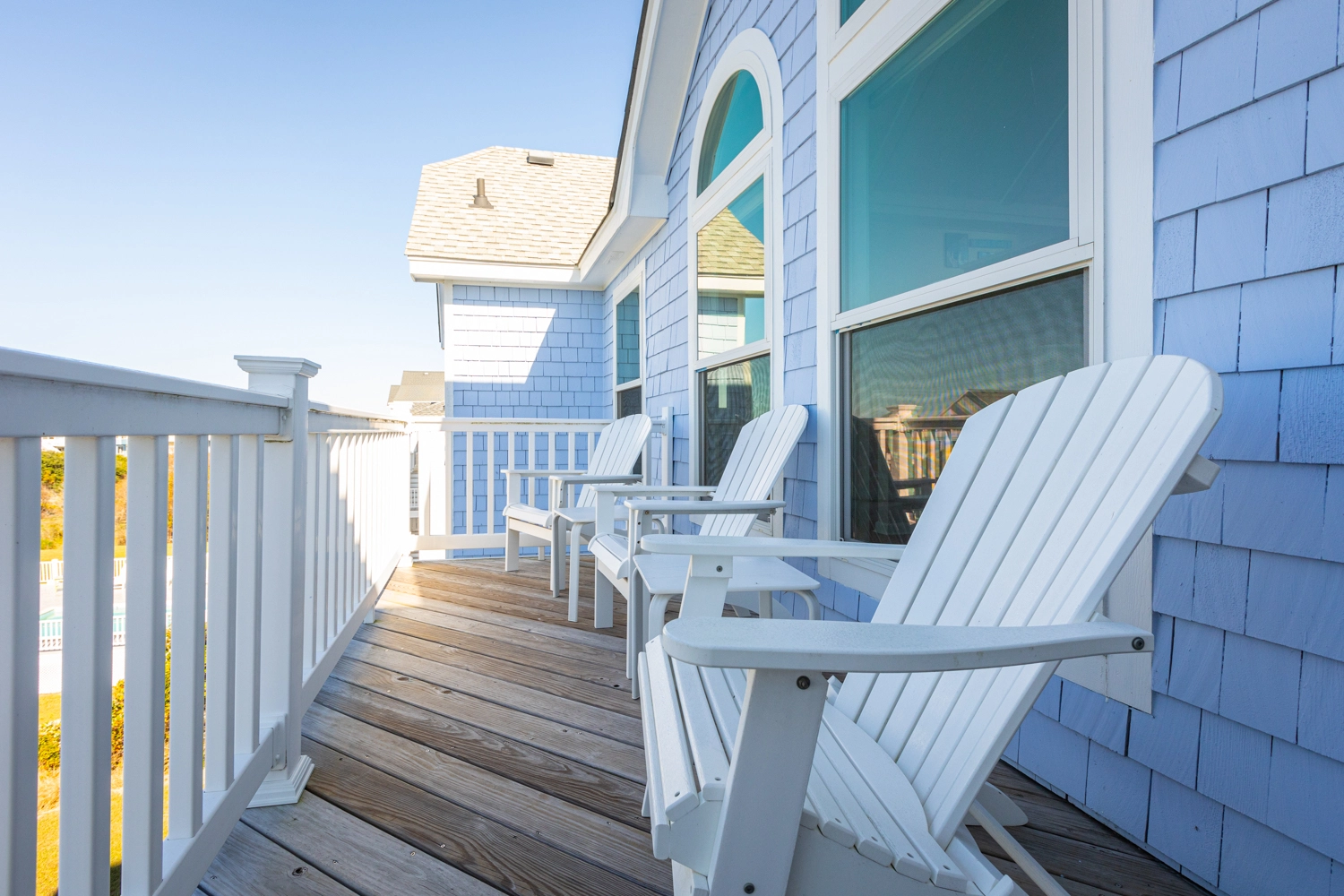 "We enjoyed our week at Mother Mother Ocean. The views from the front porch were very good of the sea and the sunrise with comfortable and clean deck chairs both Adirondack and Rocking chair style. Convenient location to beach access that took us 3 minutes to reach. Interior of house was very clean upon arrival. Kitchen had new countertops and cabinets as well as flooring. Lots of work space. Back upper porch was nice to sit out on when the sun went down. Furniture in living area was comfortable. Room for improvements include updating the master bath on the main floor. Shortest toilet I have ever experienced , bed was very hard. Half bath on main level did have an upgraded toilet height👍.Multiple screens throughout the house had holes in them which allowed bugs to come in if opened. All screens and windows needed to be power washed along with the screened in porches on both floors which were filled with dead bugs in order to fully enjoy the view. Dead bugs galore in a pile outside the main door to the upper front deck(due to outdoor light being on).Again needed to be power washed every few weeks. Beach chairs are old and rusty except for one. Geared more for children than adults. Glad we brought our own. Had one issue and it was taken care of promptly that day.Overall nice house in great location with further updates could be excellent."