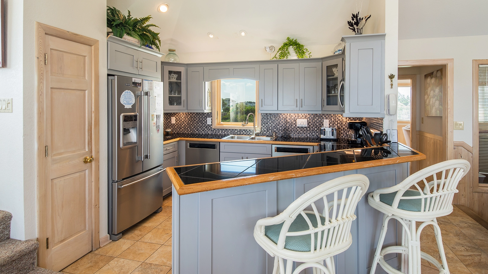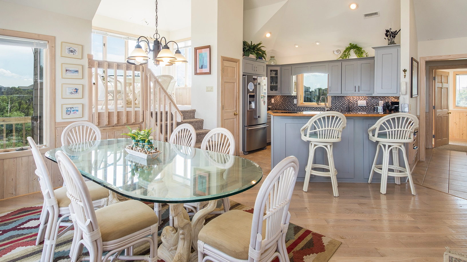 "We loved all the personal details in the lovely beach house. We loved the artwork and the carpet on the steps."