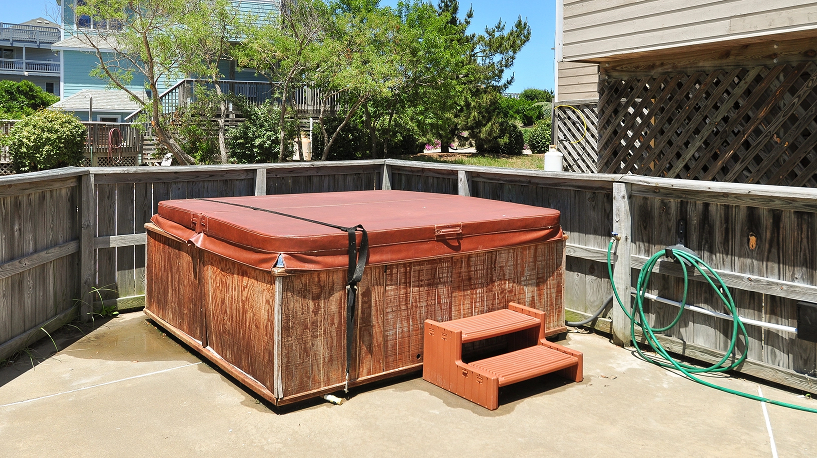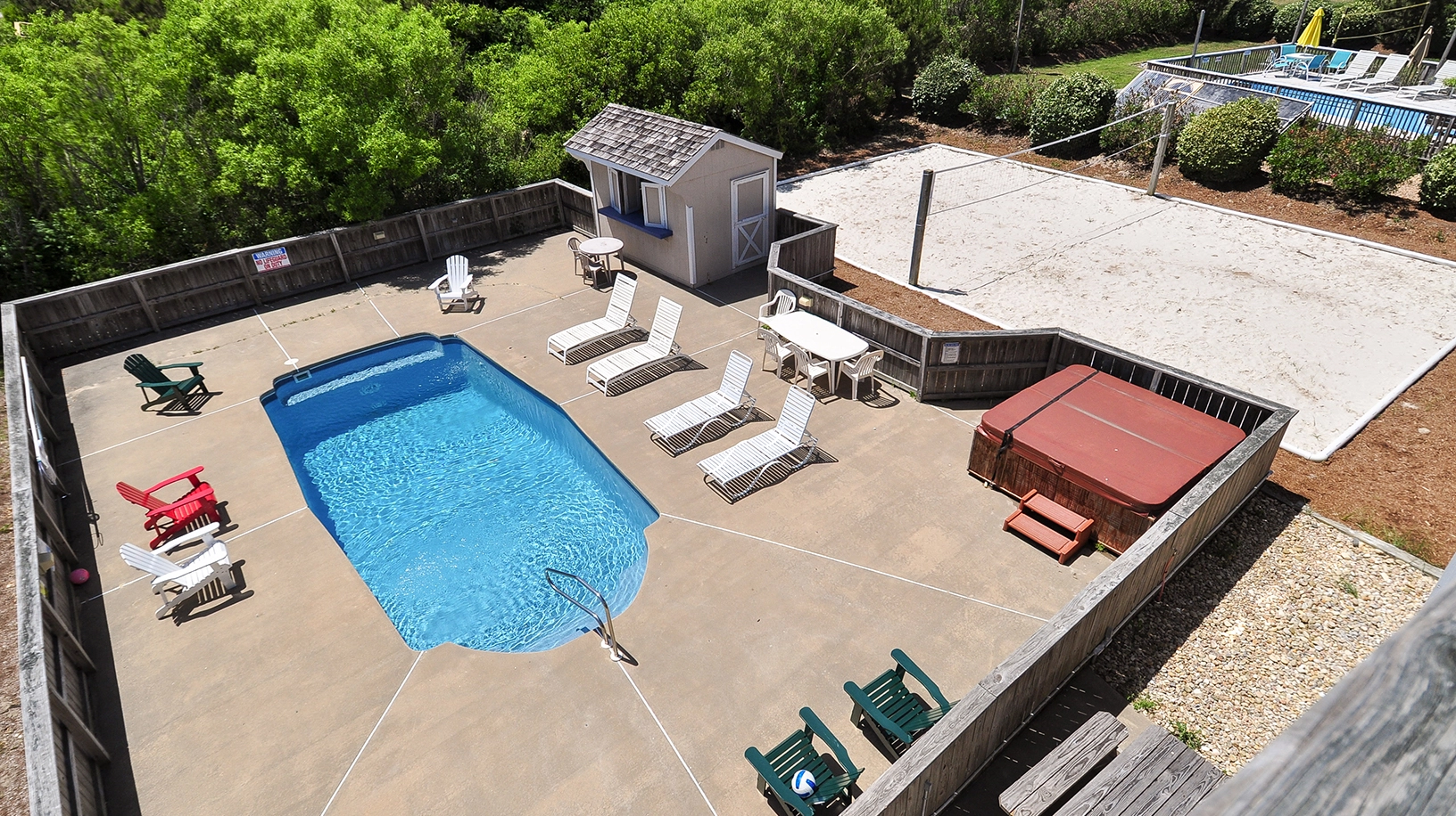 "Great location. Pool and pool house (with nearby fridge) were great. New deck furniture very nice. Hot tub nice."