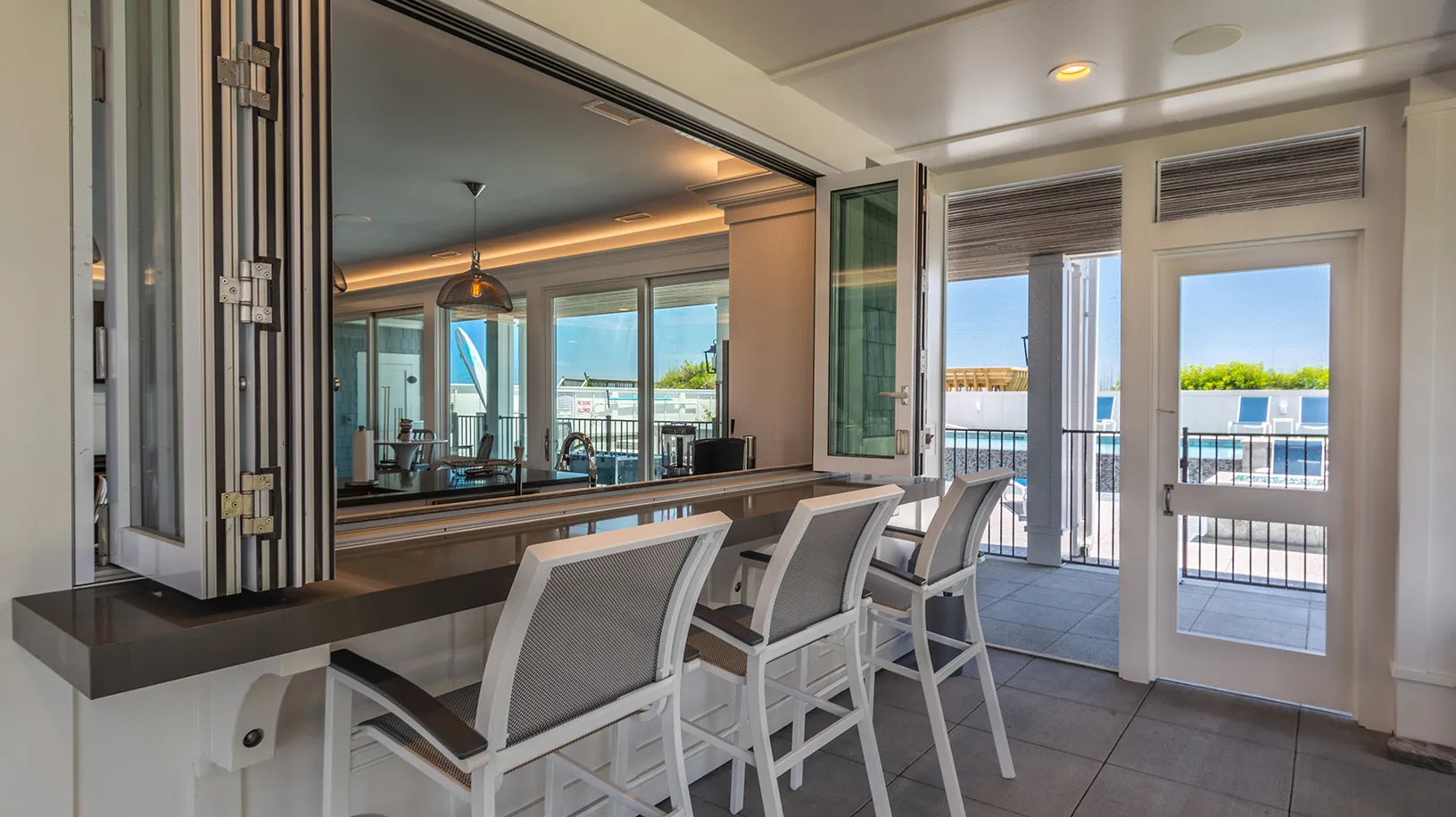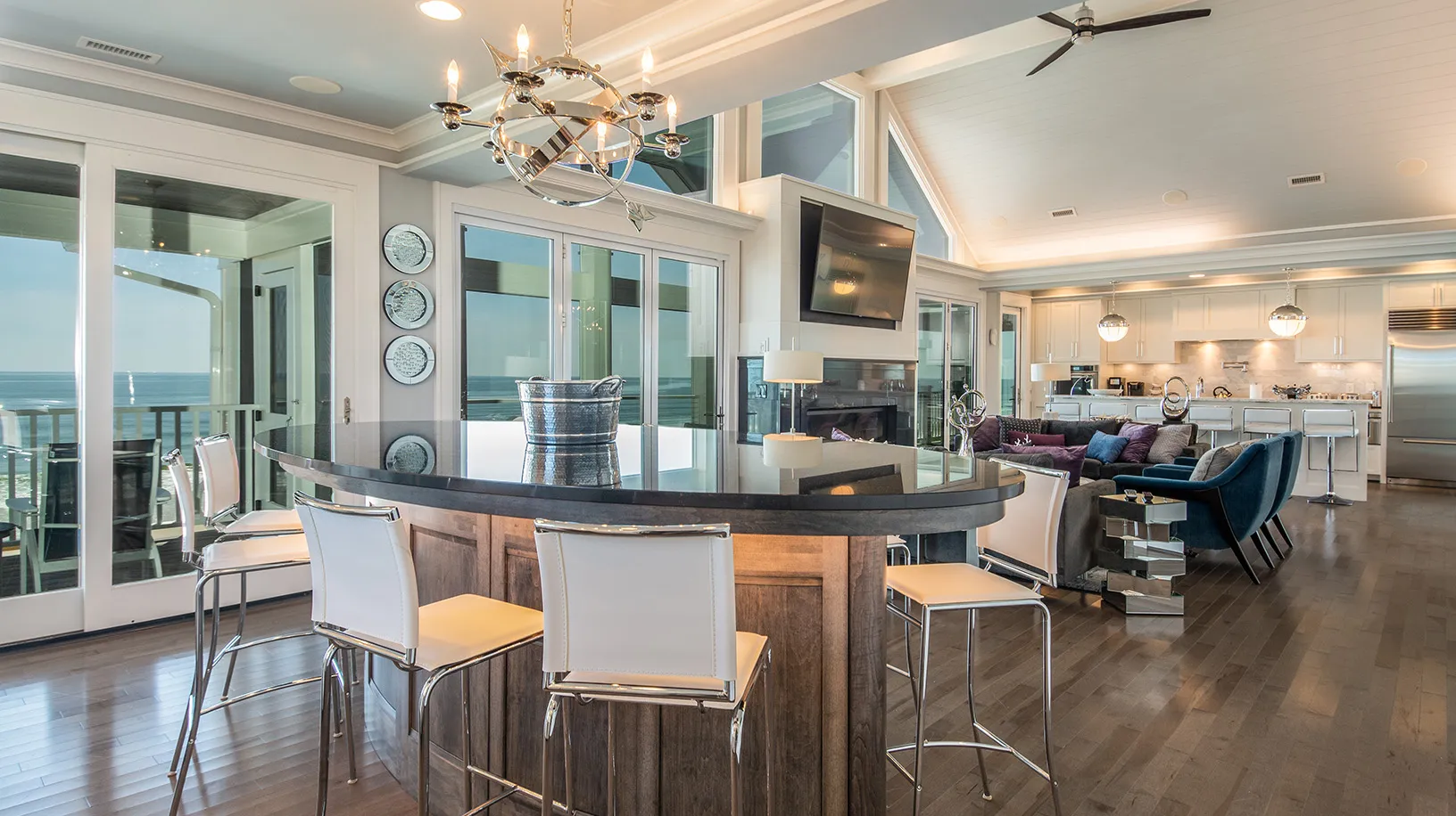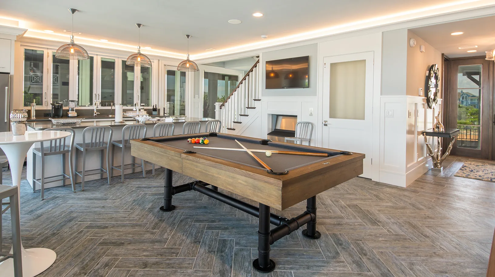 "View and having the accordion doors opening to the screened in porch was great. Loved the outside stairs allowing access to all floors from the outside. Movie room was great!"