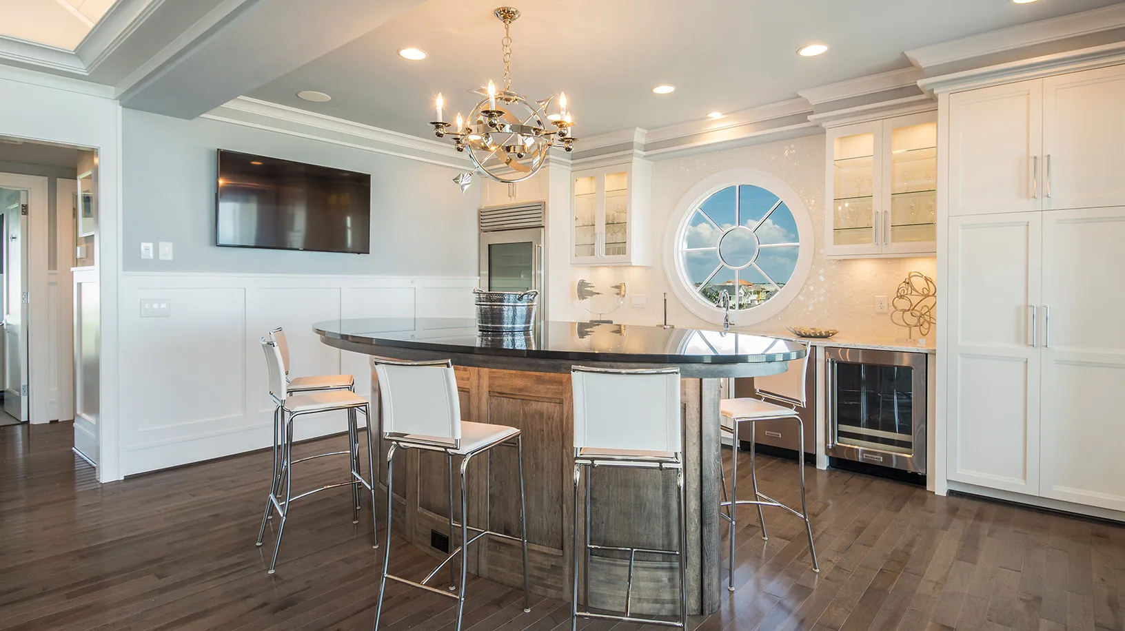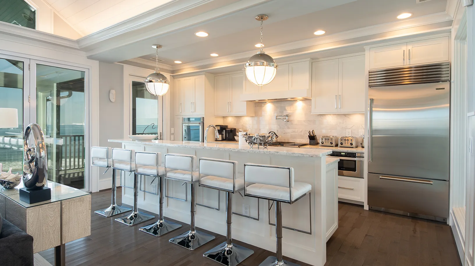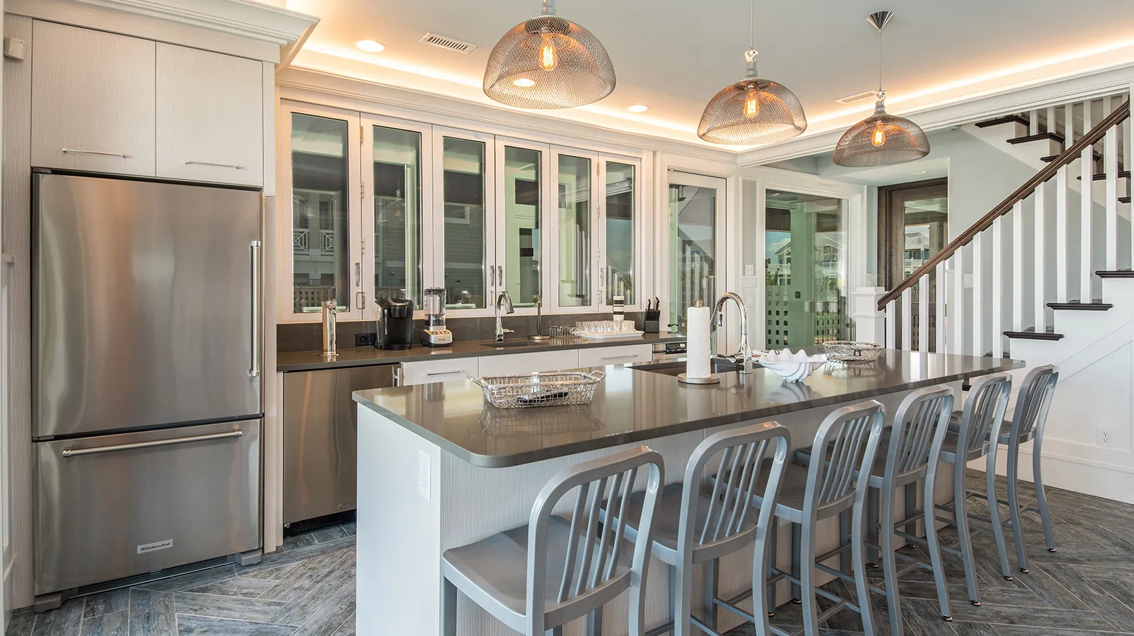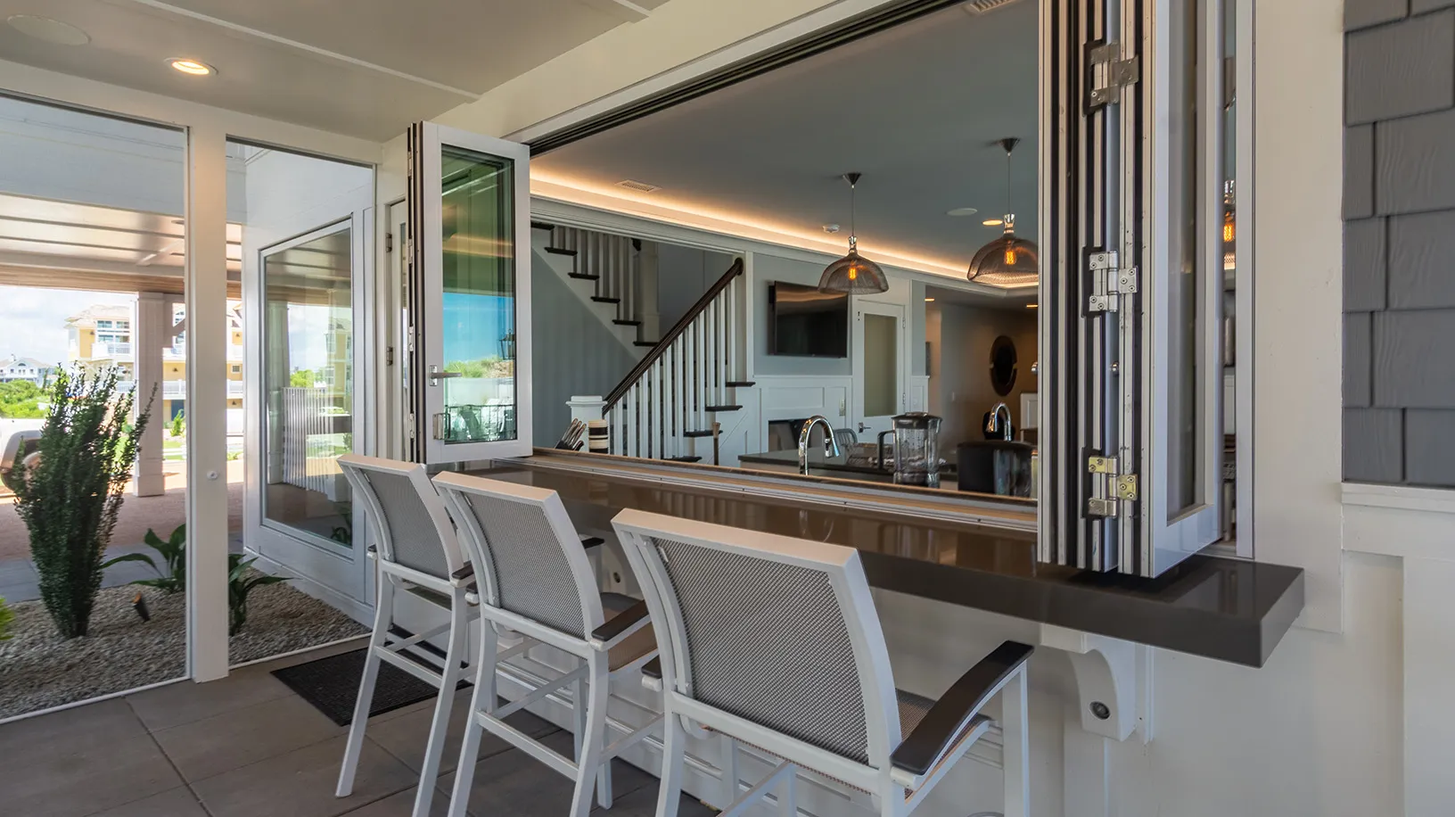 "View and having the accordion doors opening to the screened in porch was great. Loved the outside stairs allowing access to all floors from the outside. Movie room was great!"