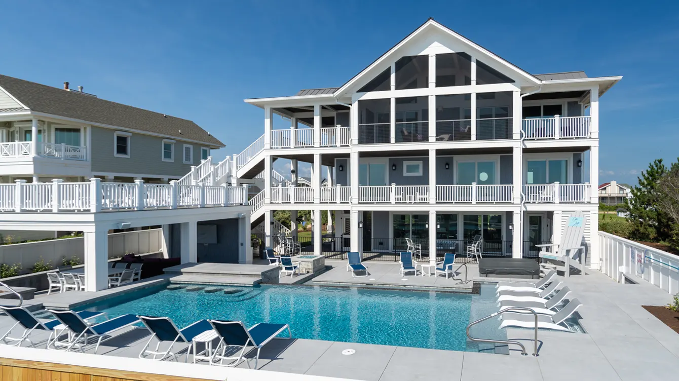 "Our recent stay at this house was Incredible. While it was off-season, I have to just imagine how much fun my grandchildren would have had in that huge pool! The backyard pool area has so much room and the covered area next to the pool is perfect for those of us that want to stay out of the sun. All of the outdoor furniture is top-notch - and there is a lot of it! The house itself is so comfortable. The bunk bedroom was a favorite for the kids, the movie theater room was a family favorite. We loved how all of the bedrooms were located on the first and second floors so no one had to be “in the basement” like other houses we’ve stayed in. The bottom floor was solely dedicated to fun stuff - pool, bar, theater, games. The kitchen is extremely well stocked - and the gas grills outside were so nice! The upper deck is amazing and the view of the ocean and the beach are breathtaking! A section of it is screen-enclosed which provides a bug free area which I loved!!! We watched every sunrise from there and it’s a perfect spot to read a good book! It was nice to actually see people on the beach - a lot of homes have dunes in the way. We’ve been staying in beach homes at OBX for 30 some years - this one really made us feel we were “on” the beach! We loved every moment of our vacation in this house!"