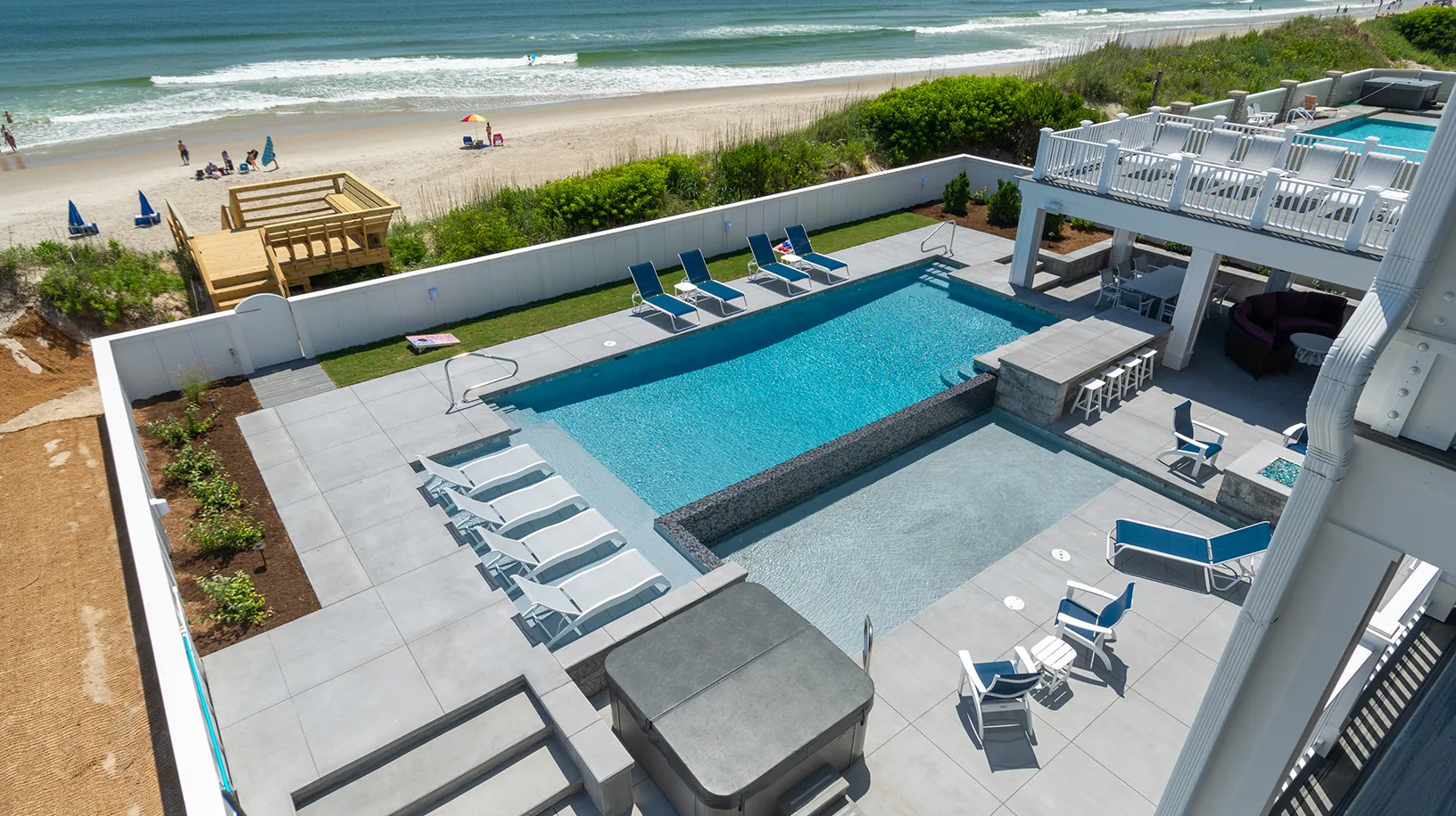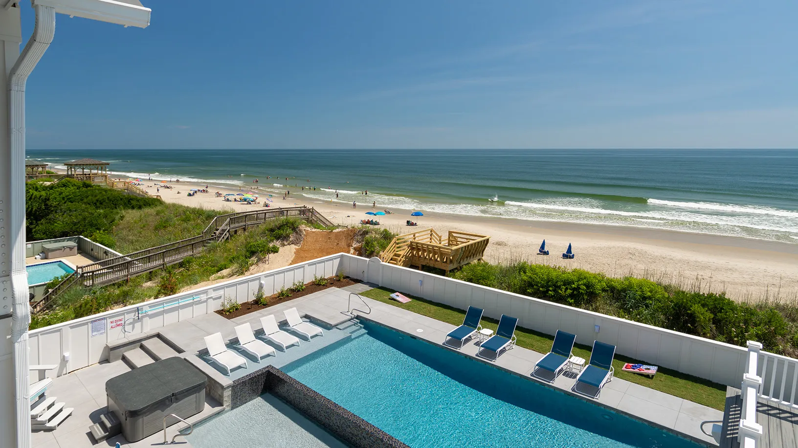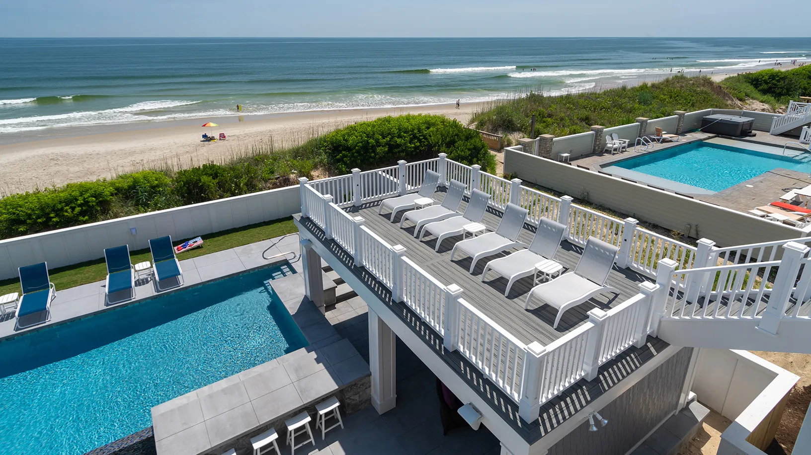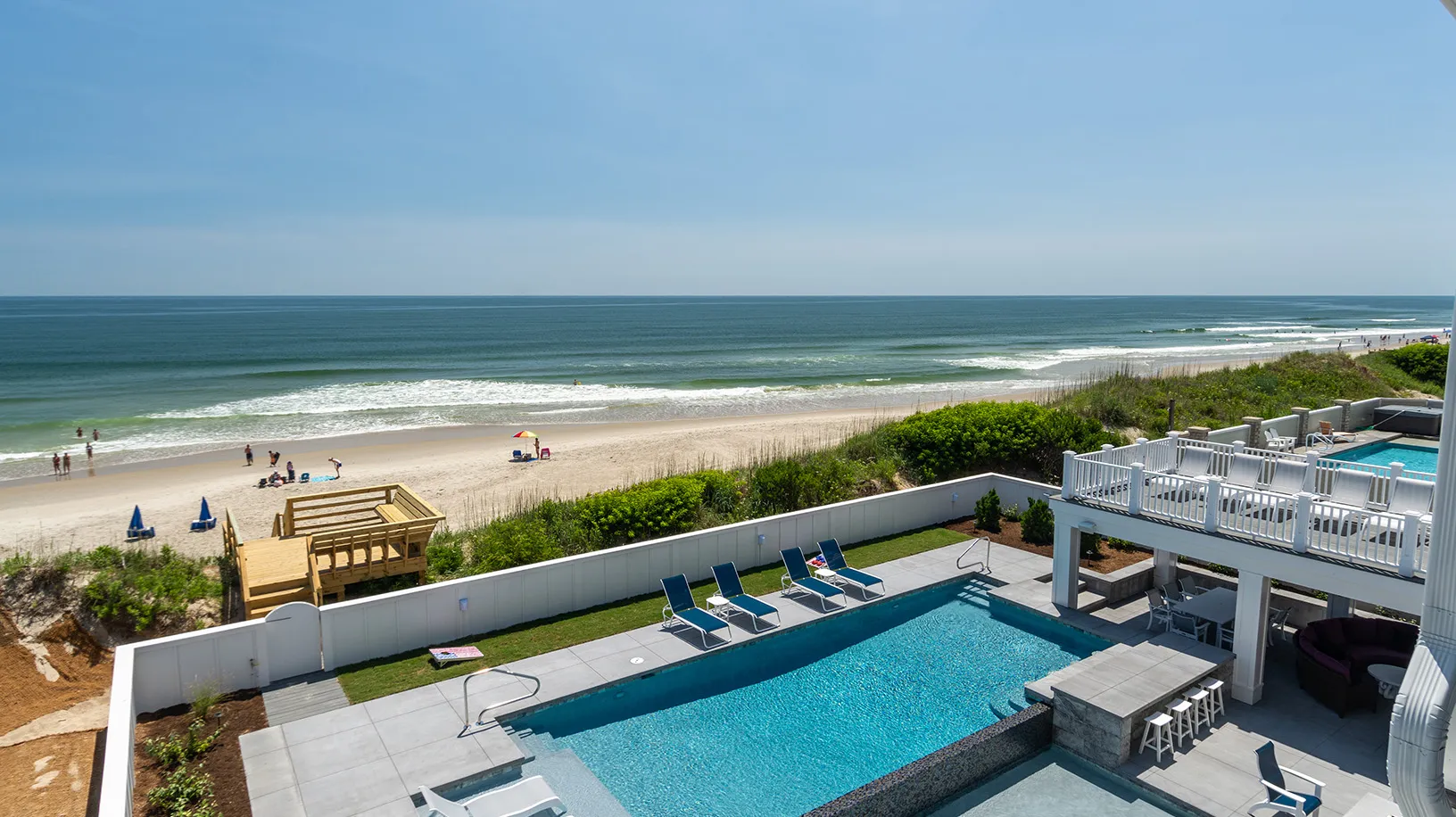 "Amazing Pool area, oceanfront, home layout, 7 equal king suites, great working AC, ice makers, multiple refrigerators, outside wrap around decks, outside stairs to all floors, well equipped kitchen, great appliances"