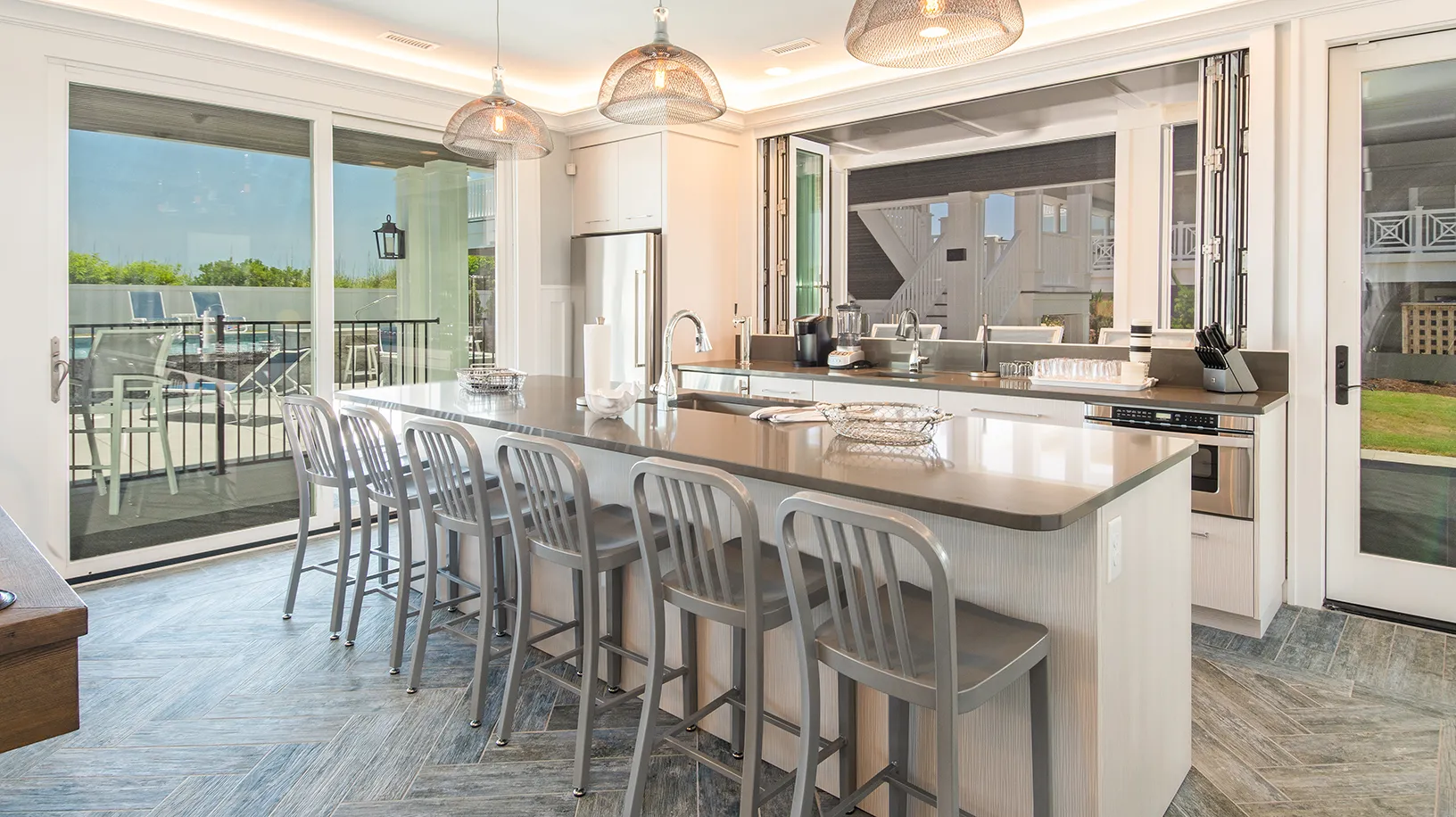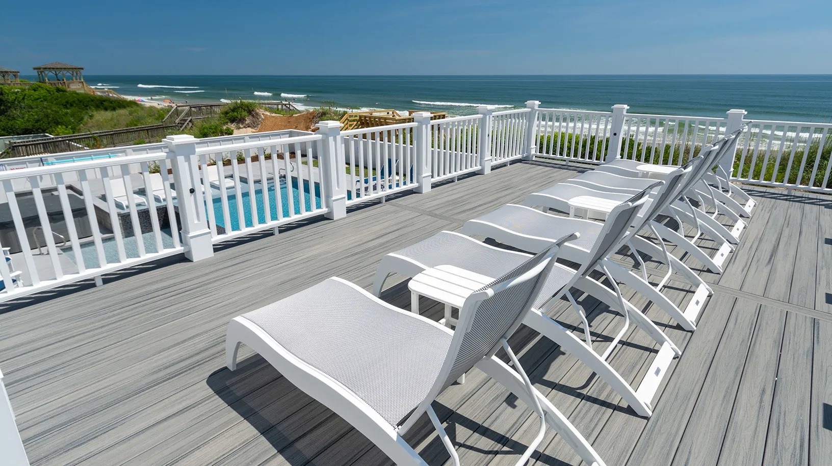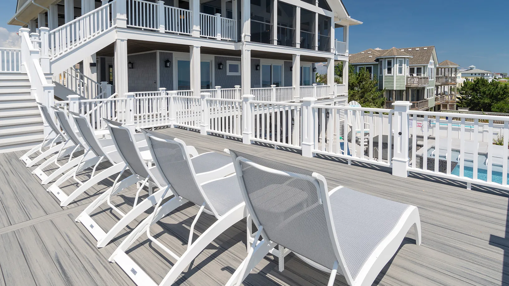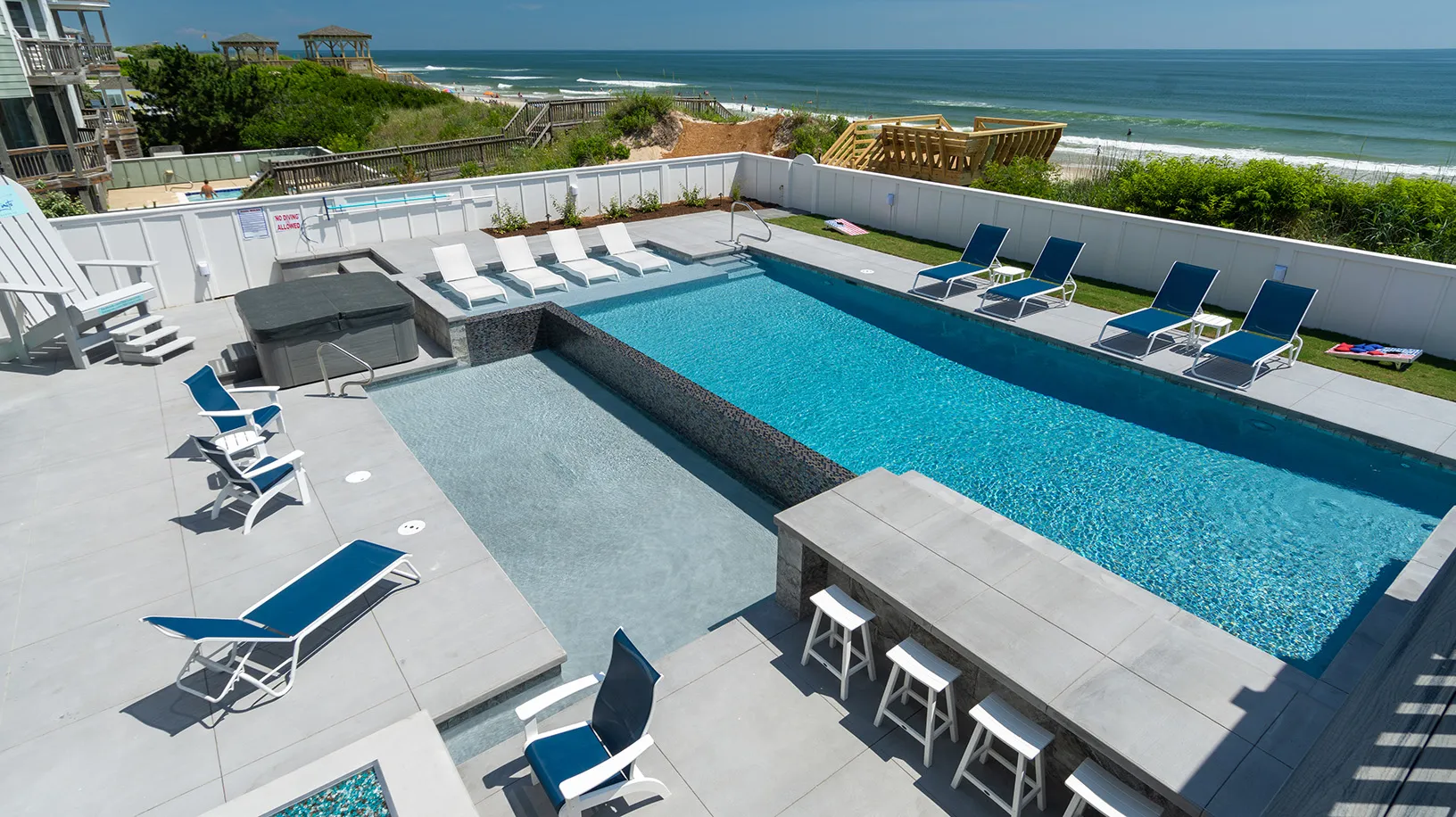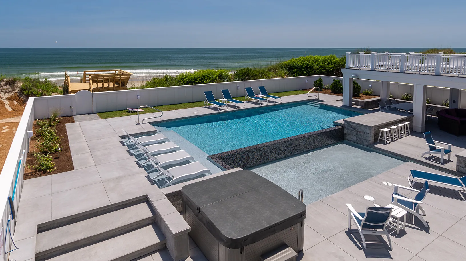 "Amazing Pool area, oceanfront, home layout, 7 equal king suites, great working AC, ice makers, multiple refrigerators, outside wrap around decks, outside stairs to all floors, well equipped kitchen, great appliances"