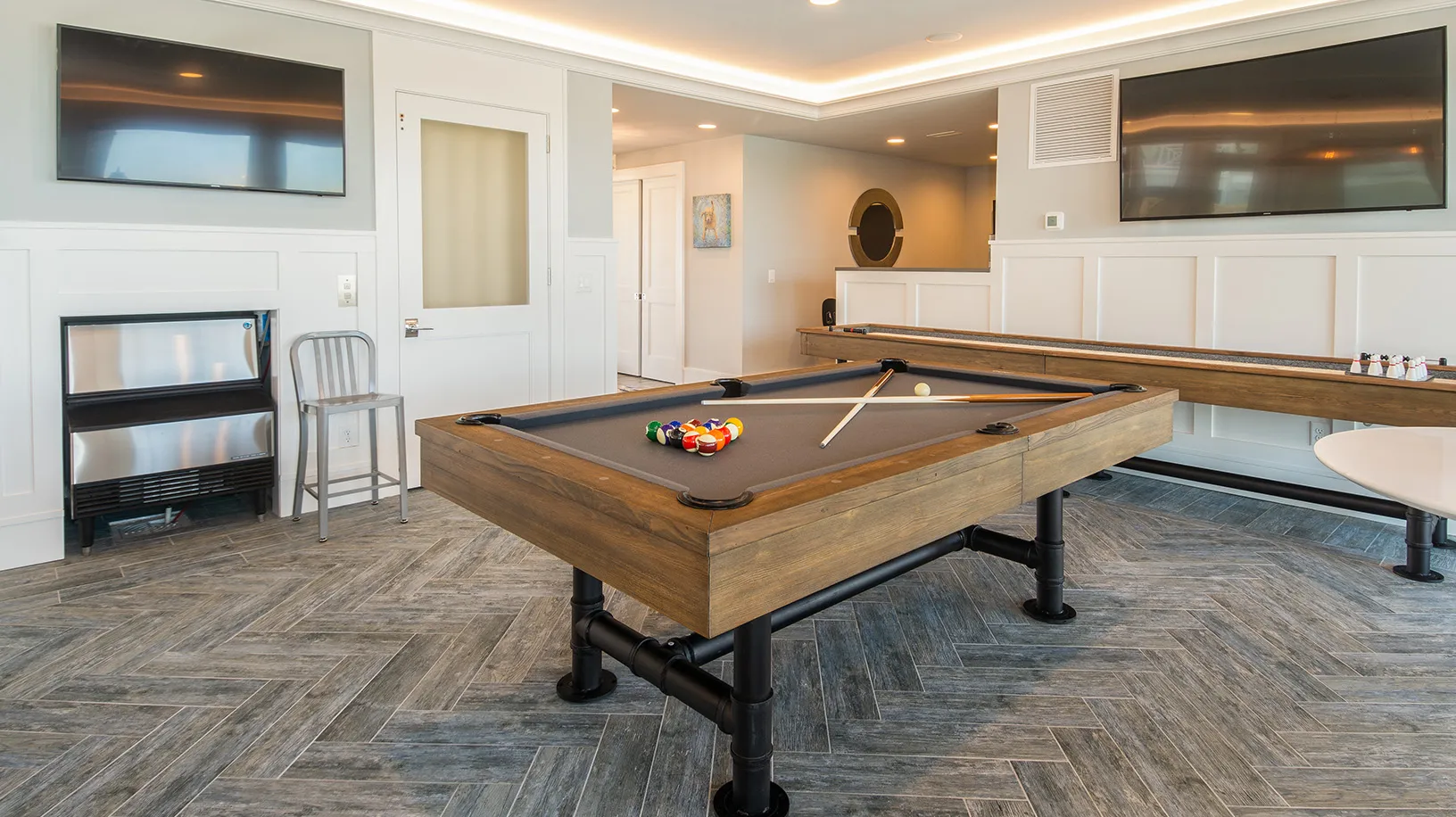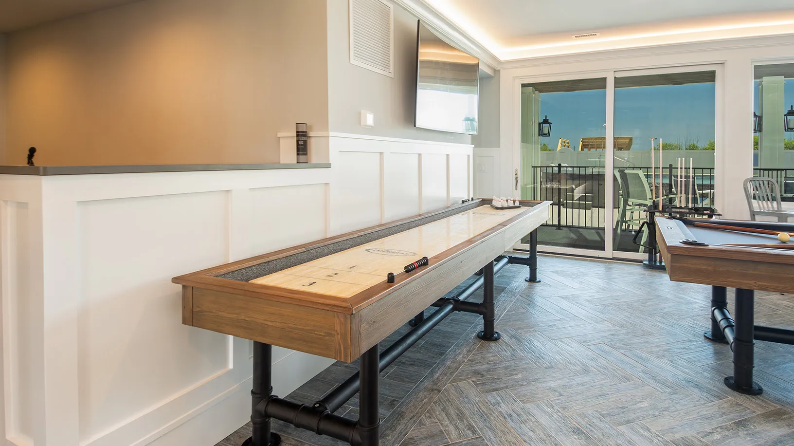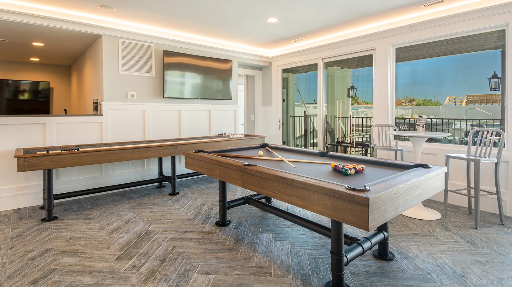 "Pool and theater room"