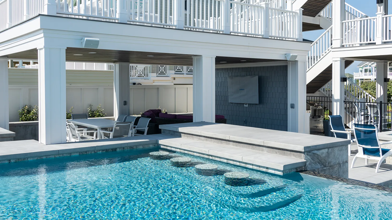 The poolside cabana TV is not available.