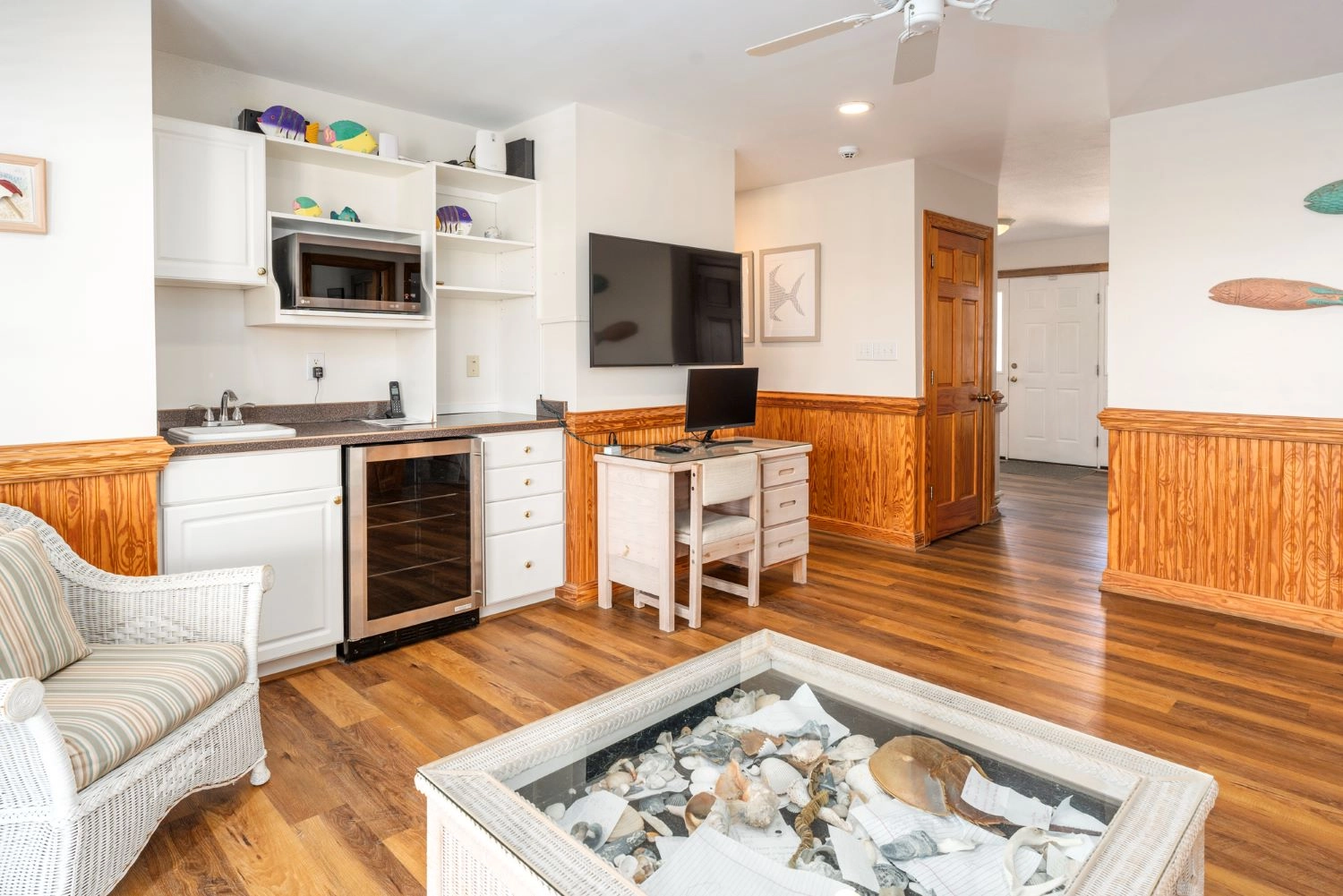 2026 Beach cabana service from May 25 - September 12 only (provides morning set-up and afternoon take-down of two umbrellas and six beach chairs on the beach), poolside lighted shuffleboard, multiple TVs with streaming capabilities, fish-cleaning table, elevator, picnic table, reduced greens fees at the Kilmarlic Golf Club.