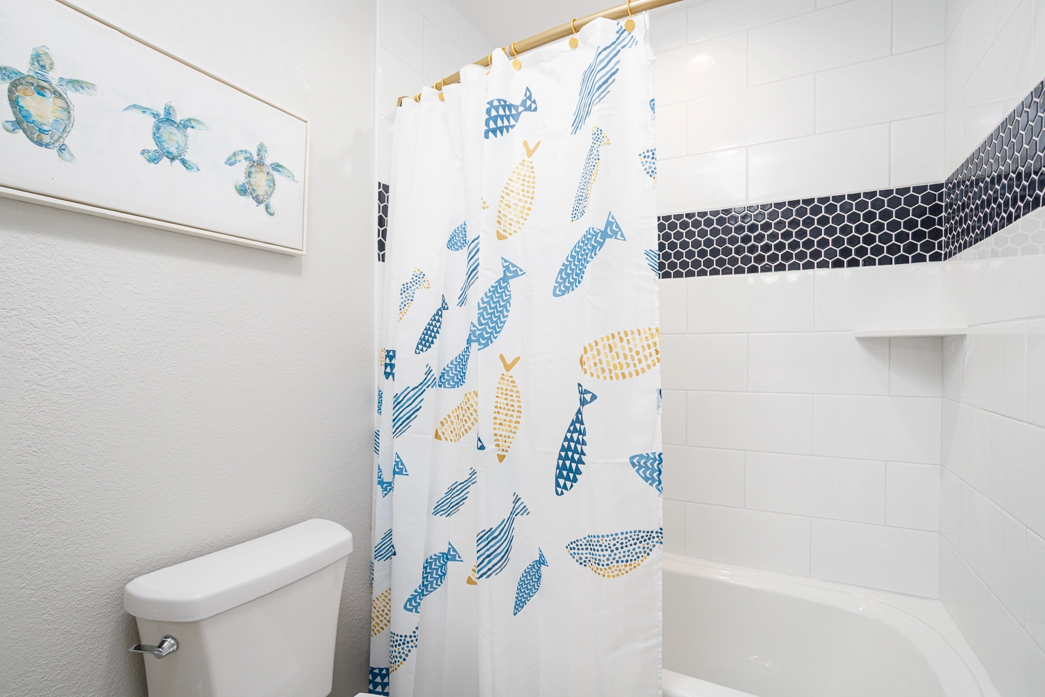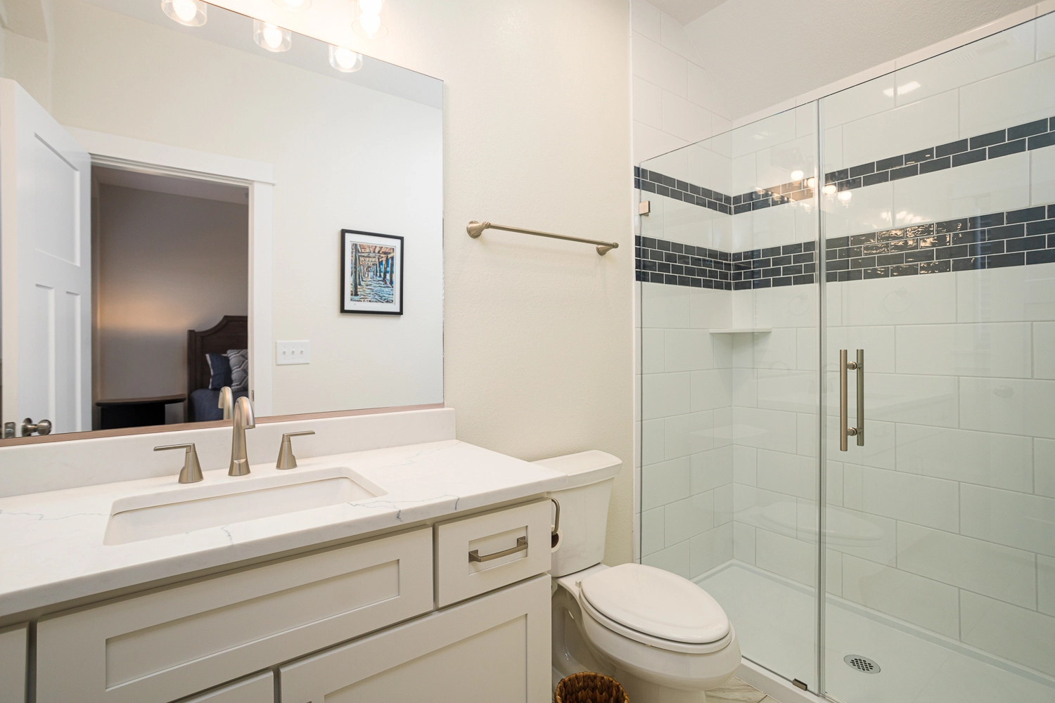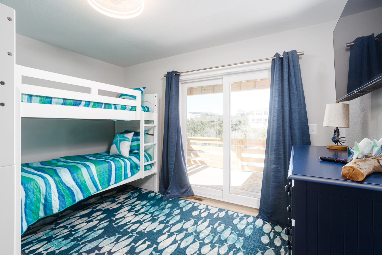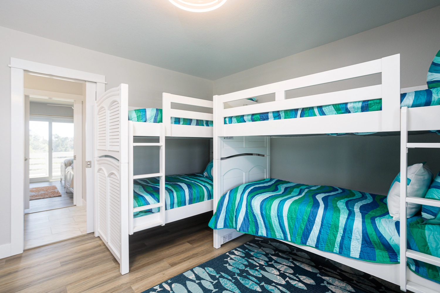 2 Bunk Sets, Shared bath with Room 2, Shower/tub combo, Deck access