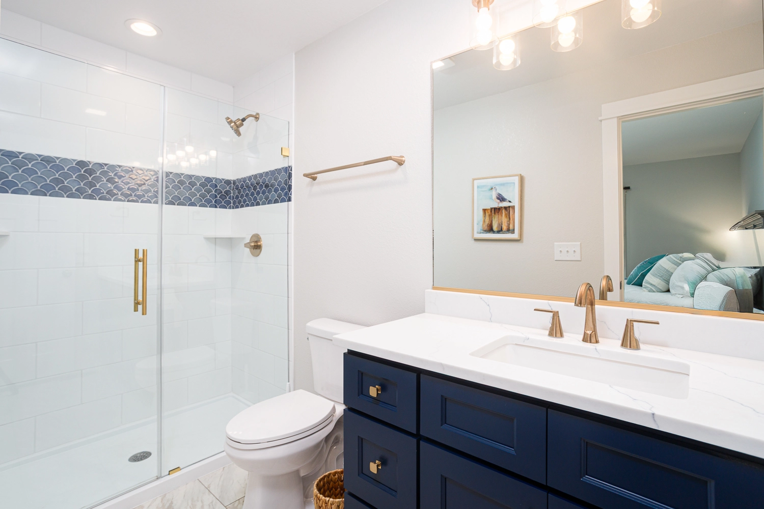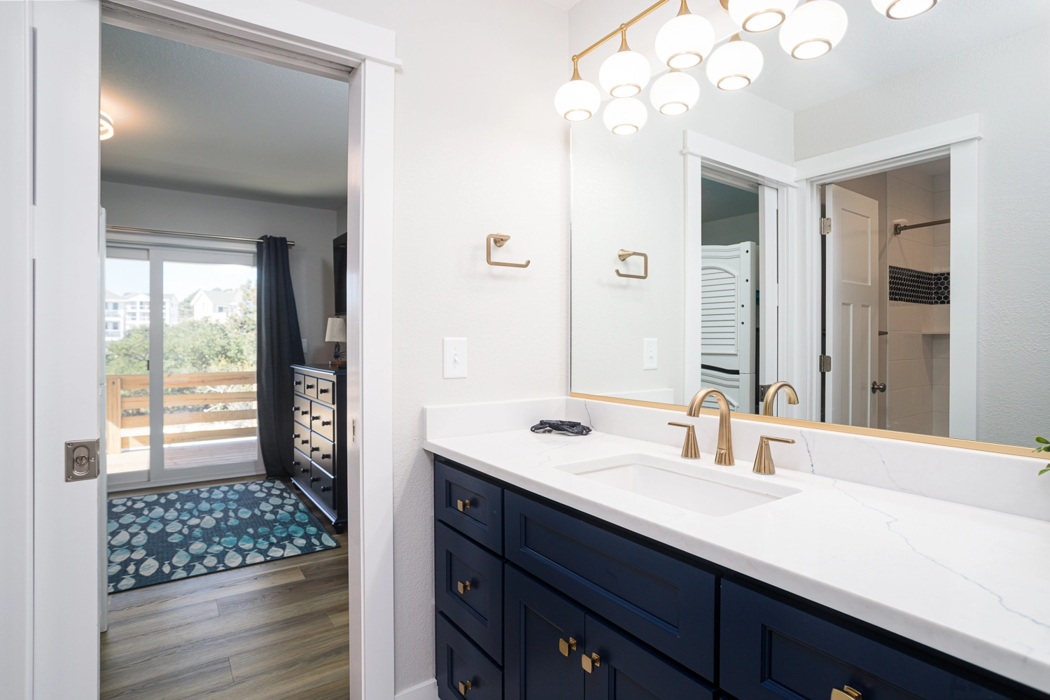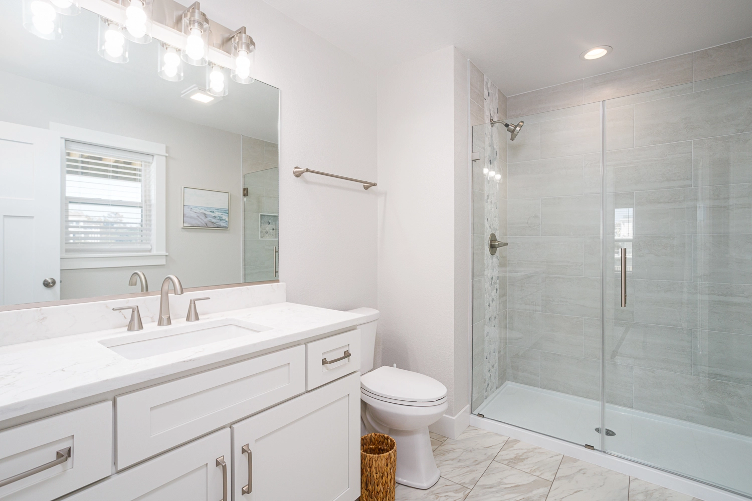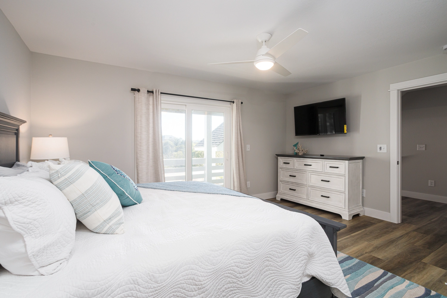 2 Bunk Sets, Shared bath with Room 2, Shower/tub combo, Deck access