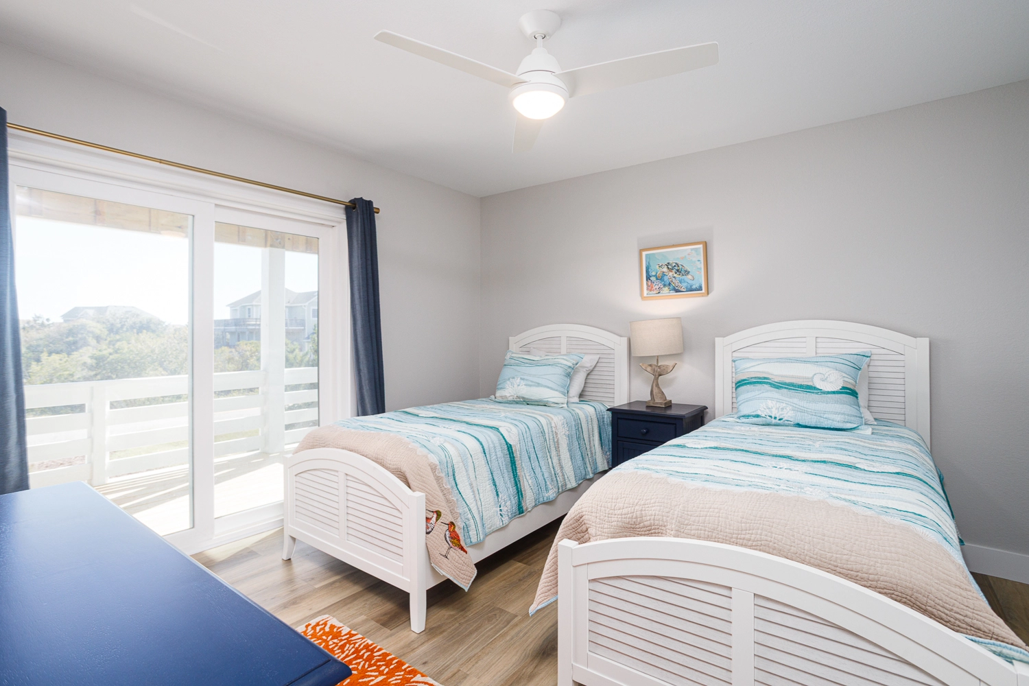 2 Twins, Shared bath with Room 1, Shower/tub combo, Deck access