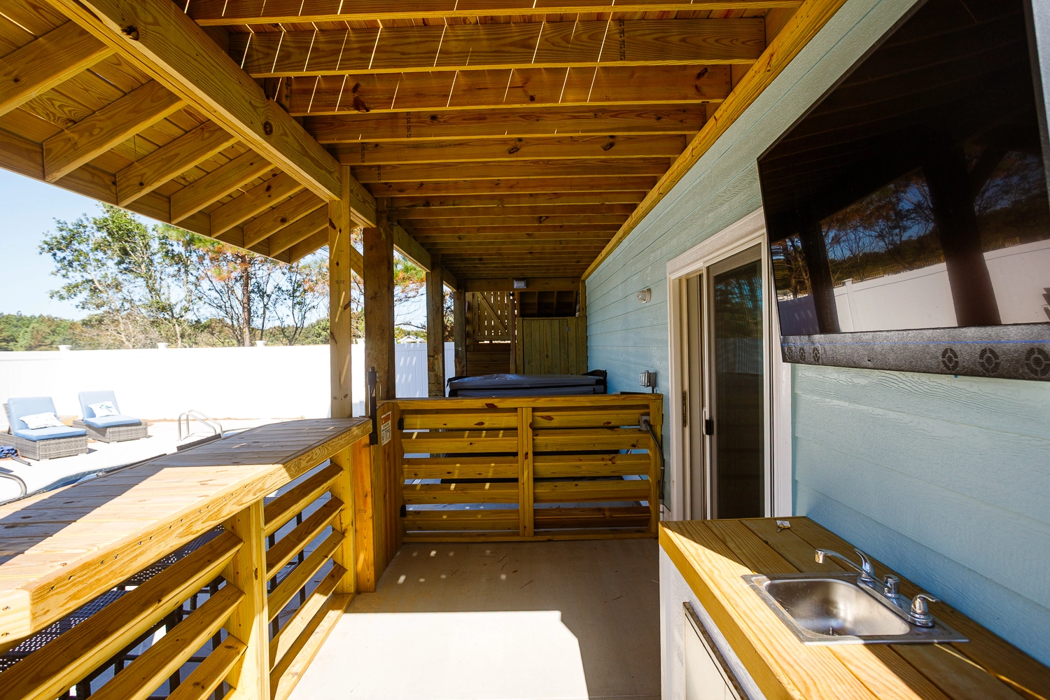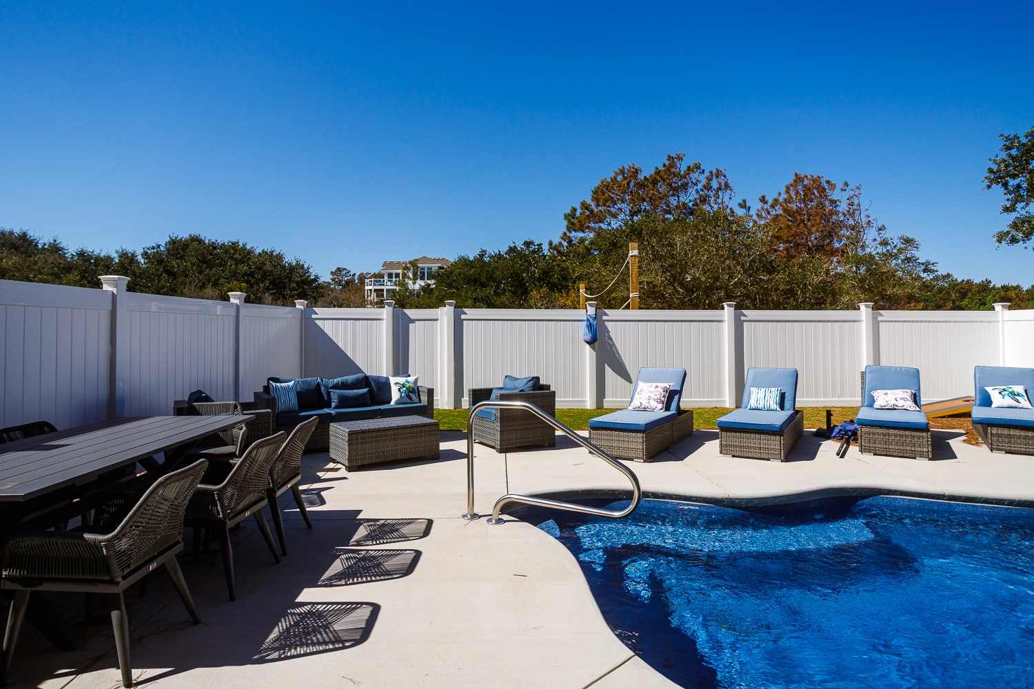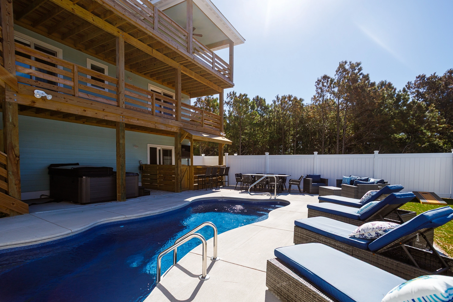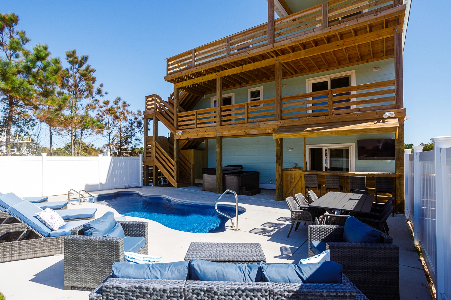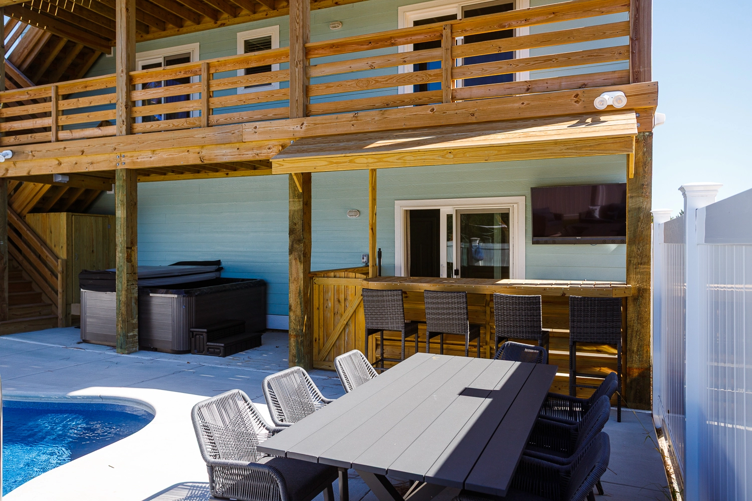 Elevator, gated private pool, hot tub, tiki bar, gas grill, volleyball set.