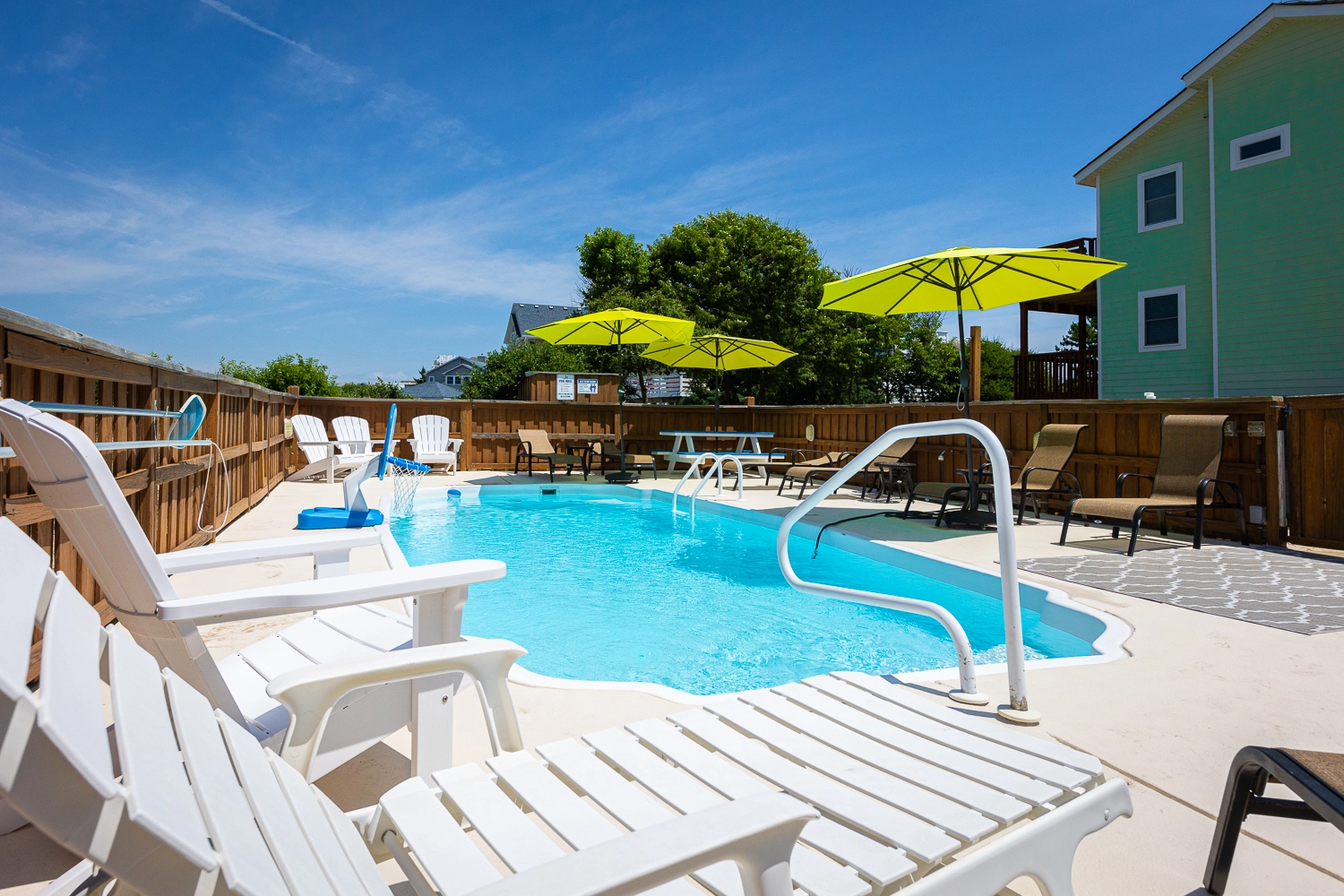 Fun in the sun will be on your vacation agenda, both at the home and at the soft-sand beach nearby. The community beach walkway is located two lots to the left of the house for convenient trips to and from the home for cooler refills or mid-day breaks from the sun. At the home, take a refreshing dip in the private pool or simply lay in the sunshine poolside. The hot tub is steps away when you’re ready for a relaxing soak. Expansive decks are located on the second and third levels of the home and offer various seating options, including porch swings, Adirondack chairs, and picnic tables. The screened porch on the second level has a picnic table, making it a great place to enjoy lunch outdoors. Out front, cook dinner on the Weber gas grill while the ballers in your group play basketball in the large driveway nearby.