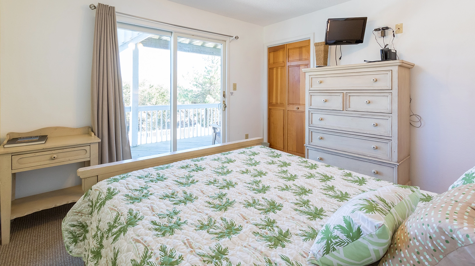 Queen, Shower/tub combo, Deck access
