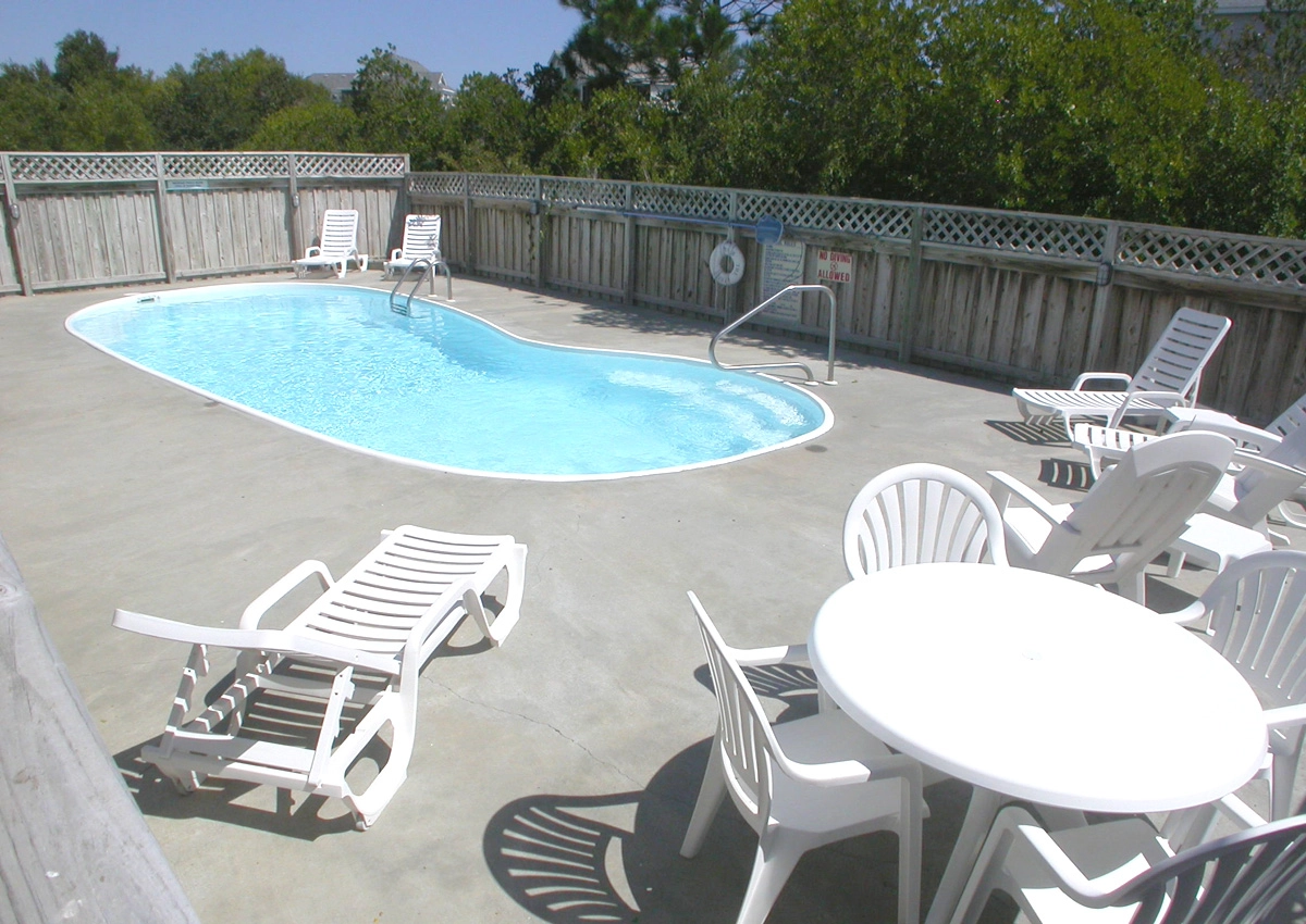 "Beach charm, nice pool, close to beach"