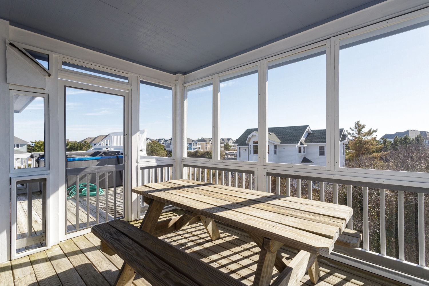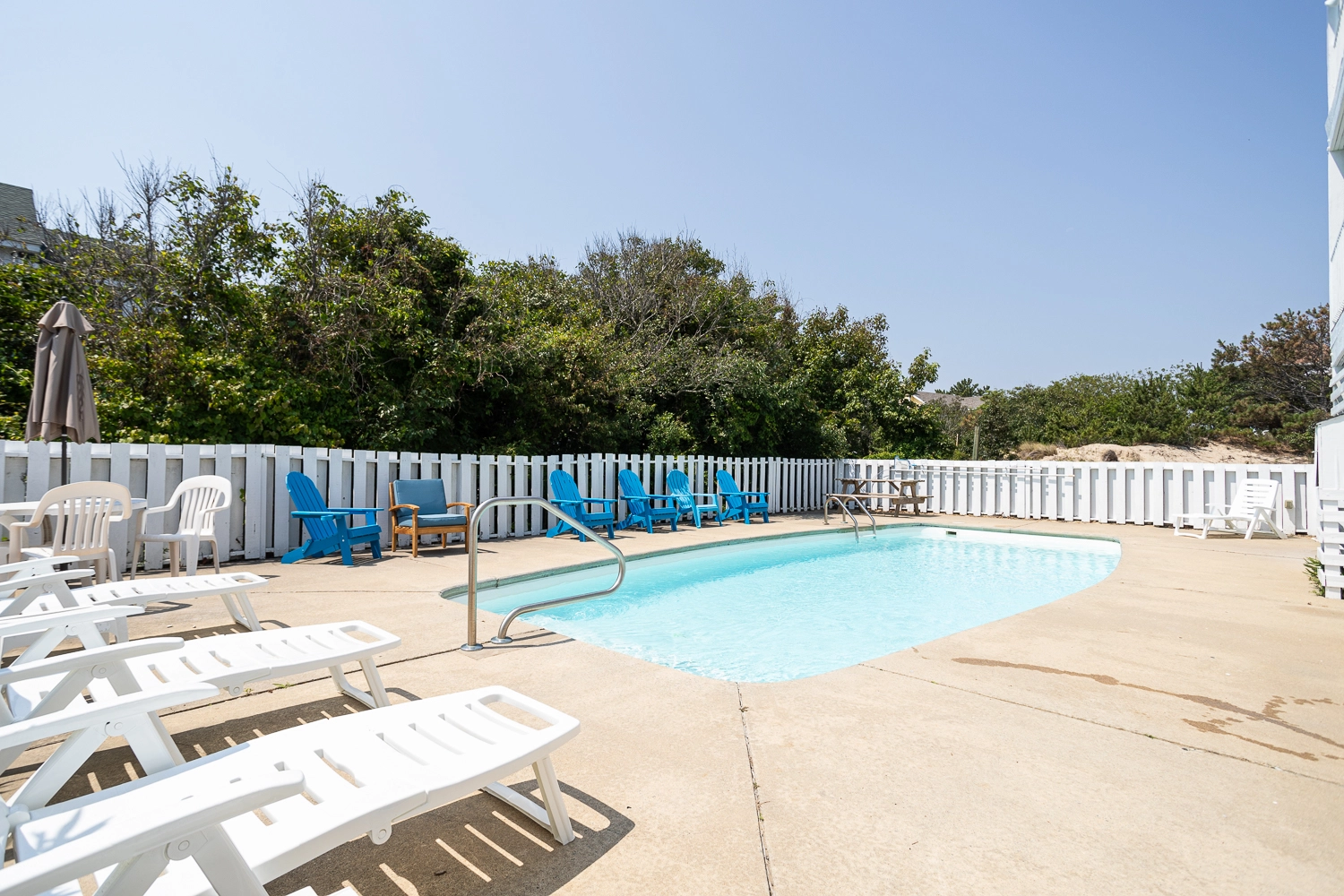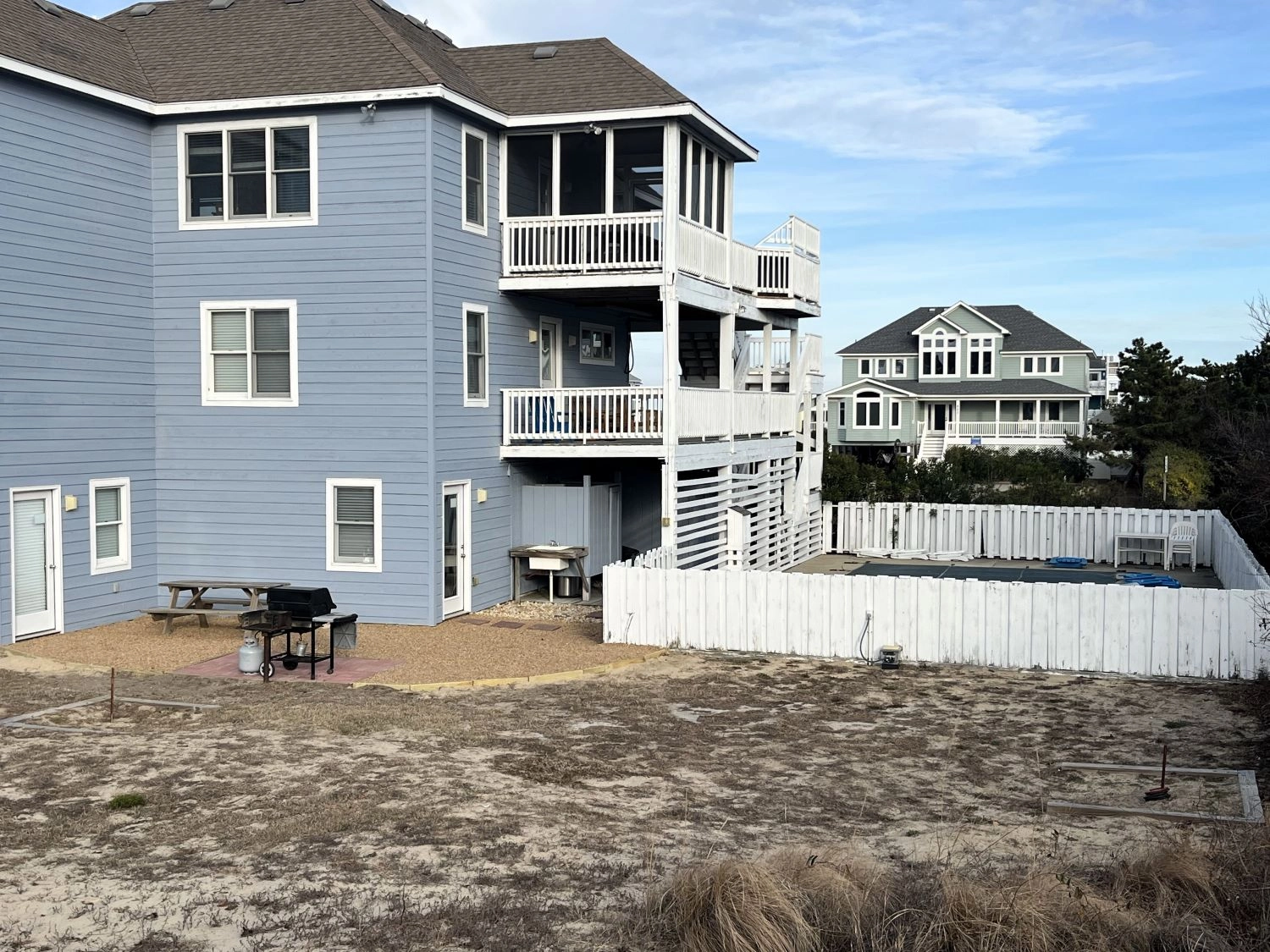 "large private pool with tall bushes surrounding it creating real privacy comfortable beds good sized kitchen with all the amenities brand new stove and refrigerator (loved the pantry to hold all our food) even though we were 1 street back from the beach we could still see and hear the ocean. We loved the 3rd floor deck hot tub on the 3rd floor deck was so much better than on a lower floor plenty of beach chairs for everyone!"